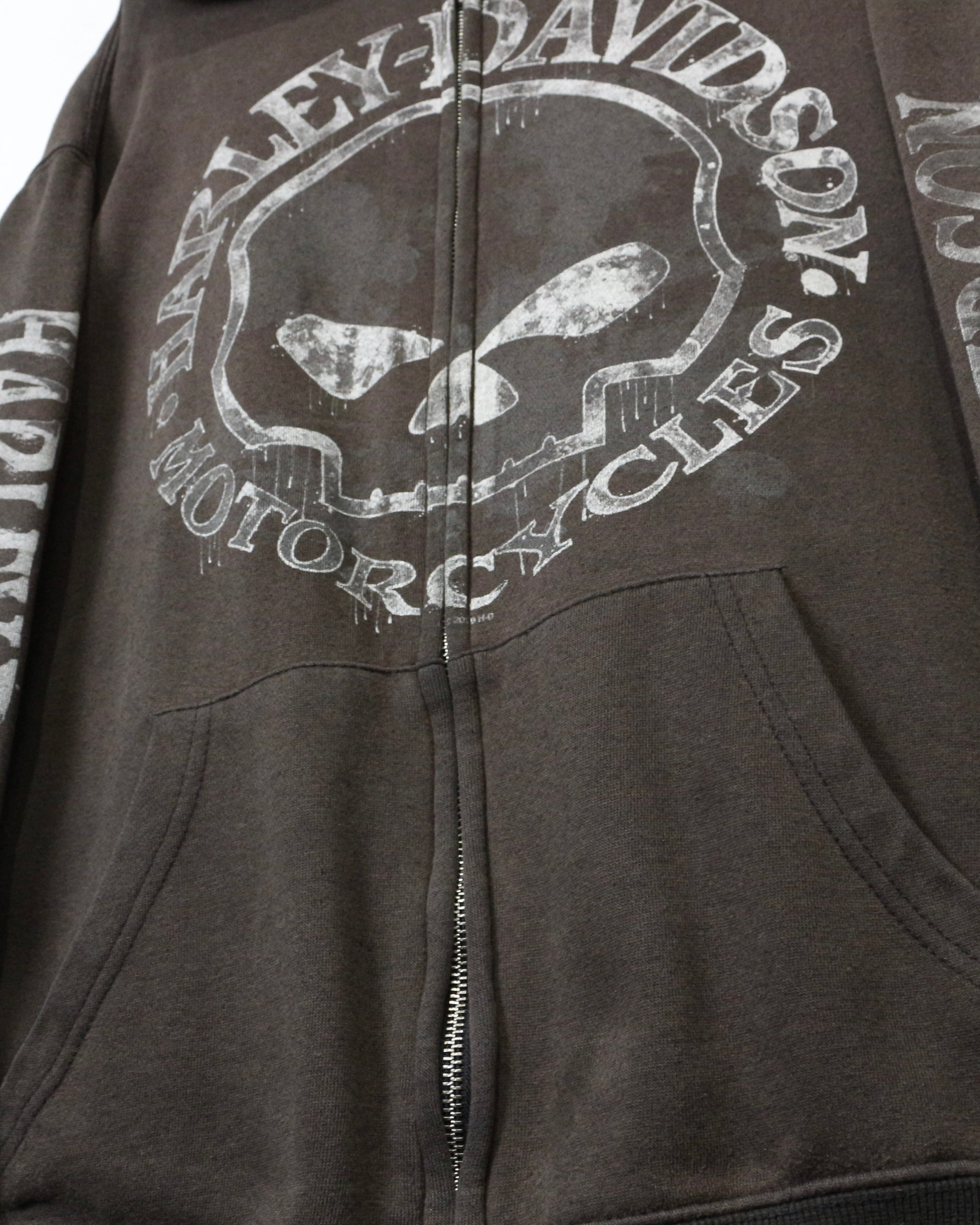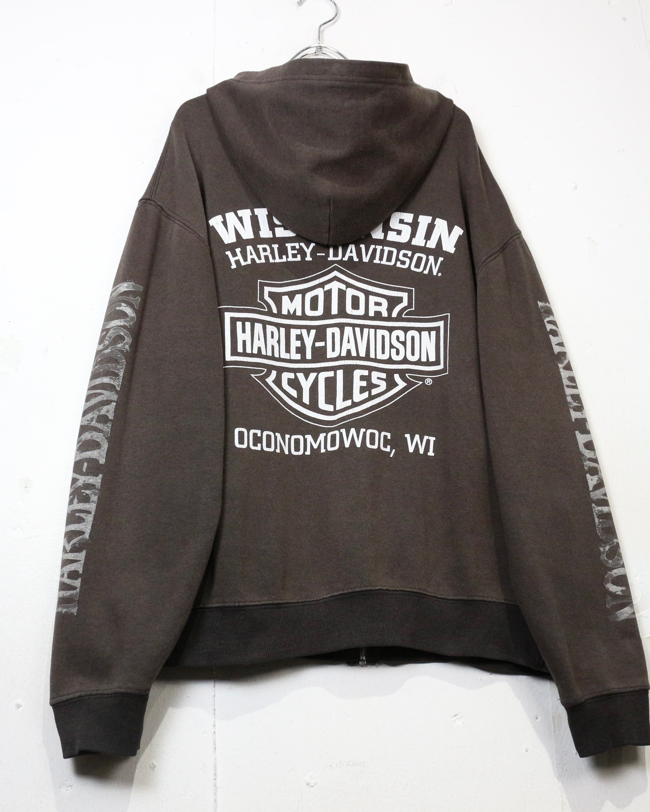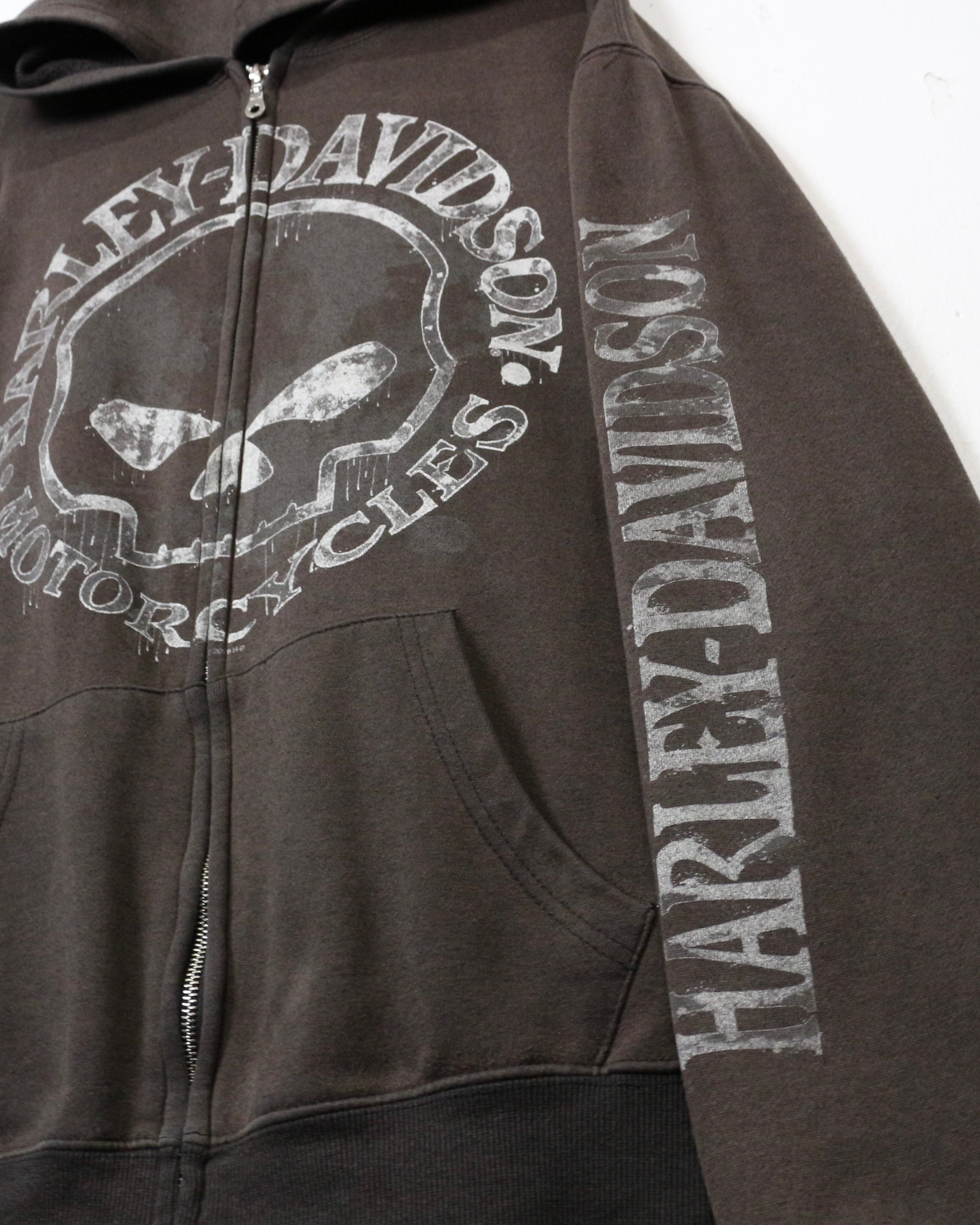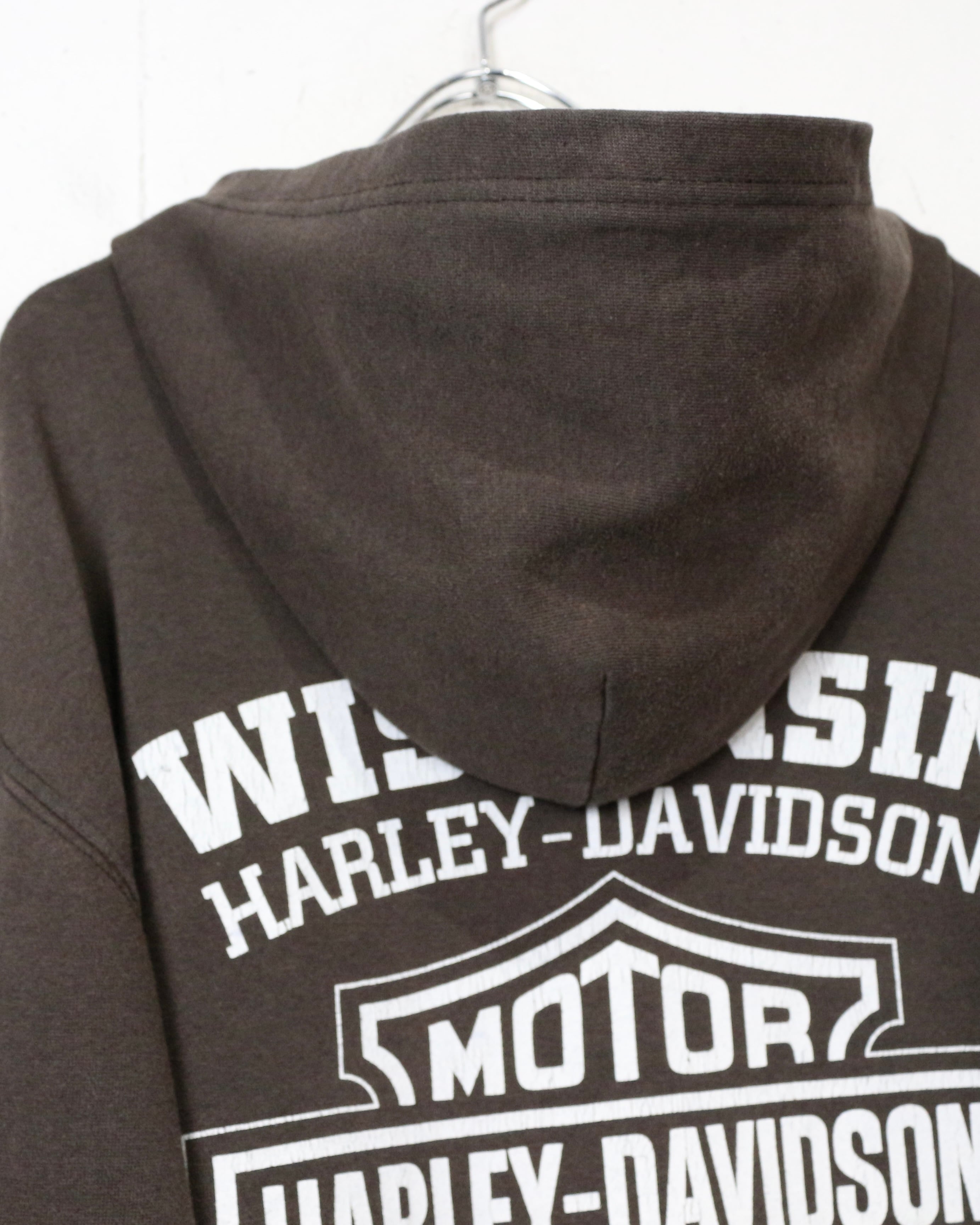 ブランド力、グラフィック、そしてヴィンテージ特有のフェード感が三拍子揃った“HARLEY DAVIDSON”のジップアップフーディです。