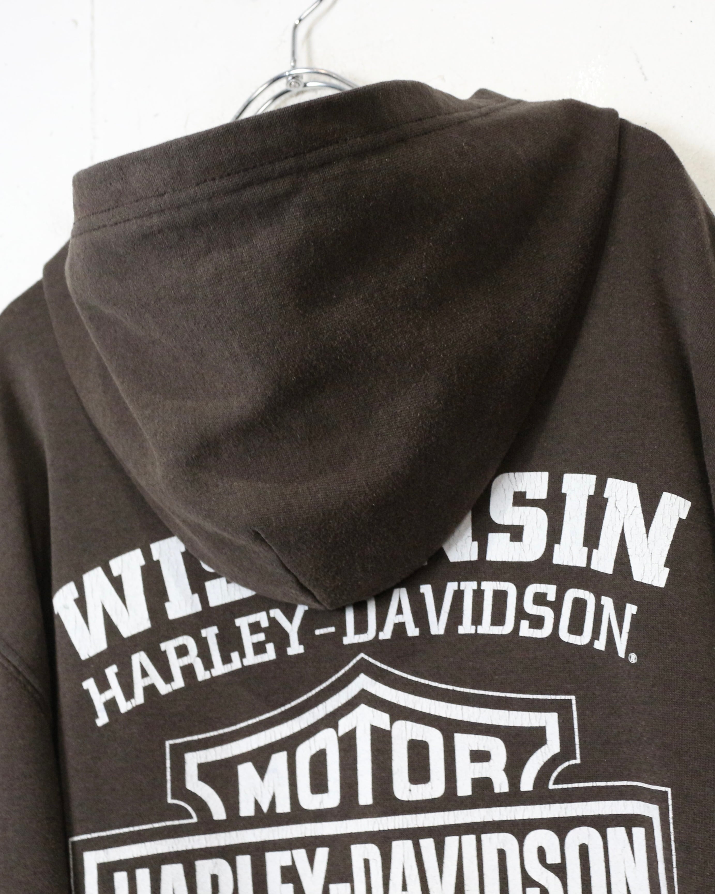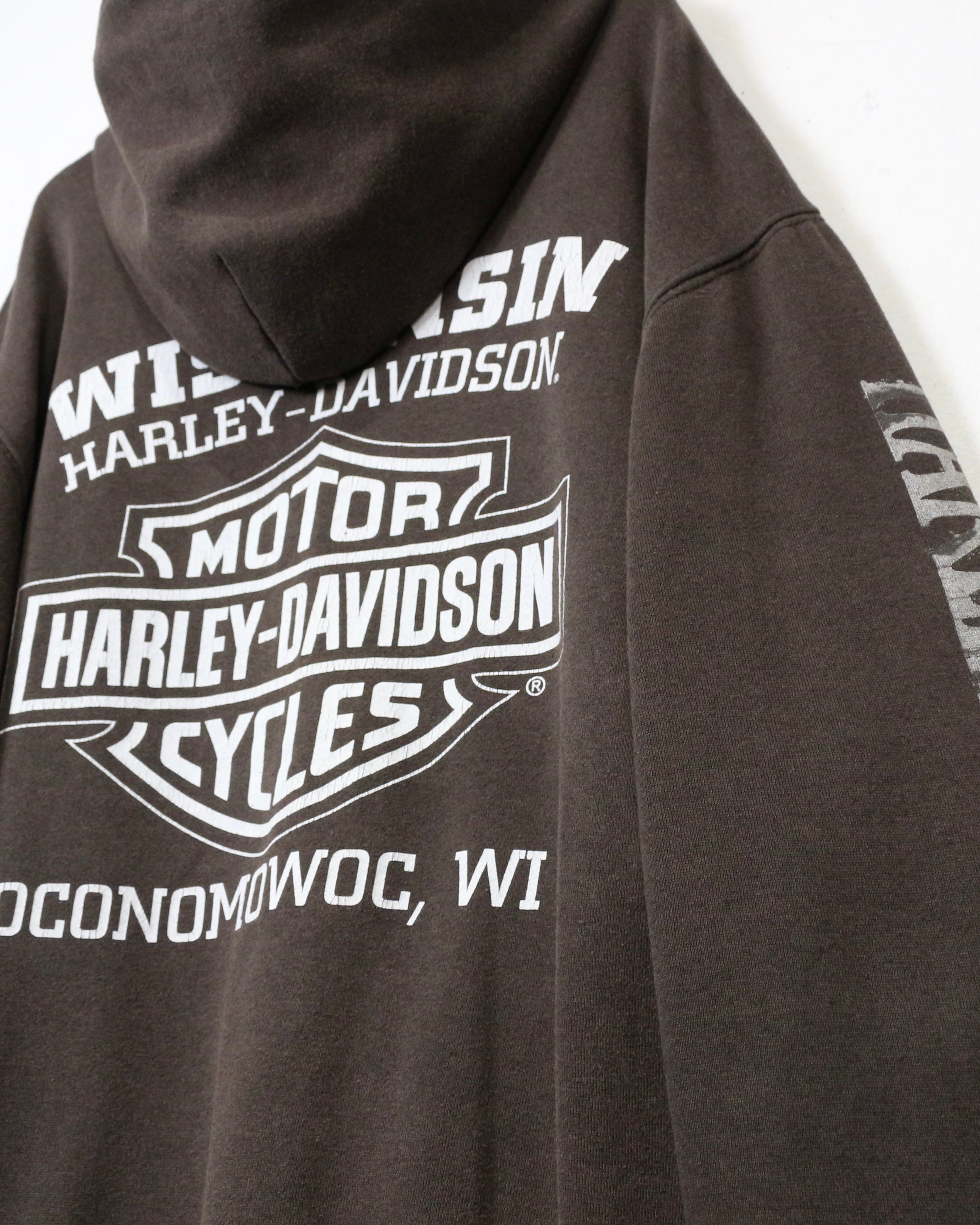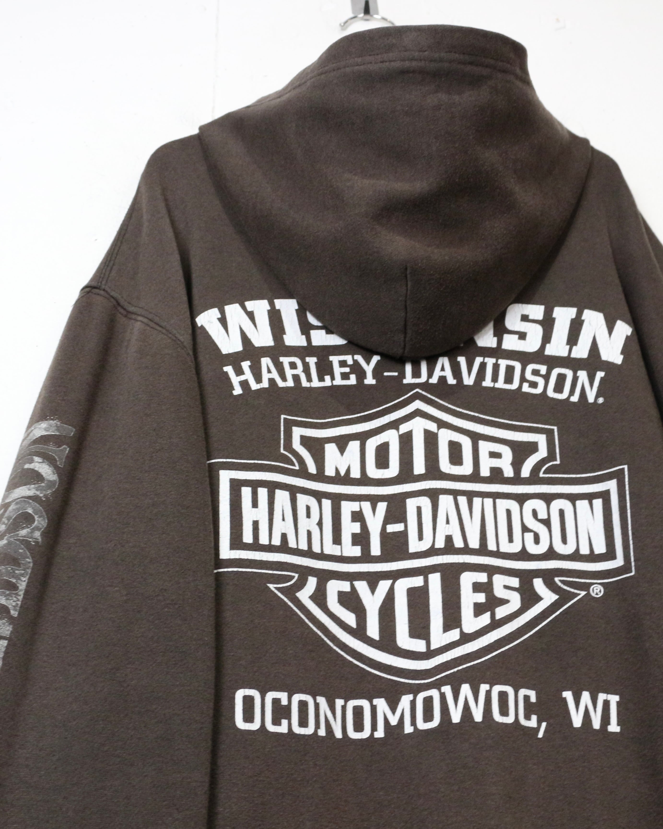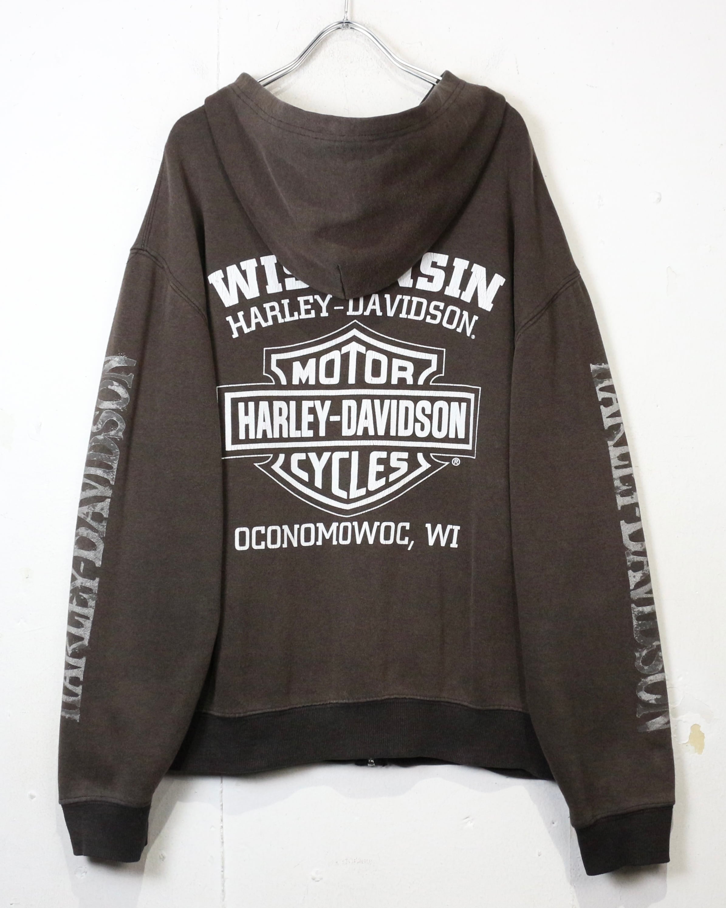 ブランド力、グラフィック、そしてヴィンテージ特有のフェード感が三拍子揃った“HARLEY DAVIDSON”のジップアップフーディです。