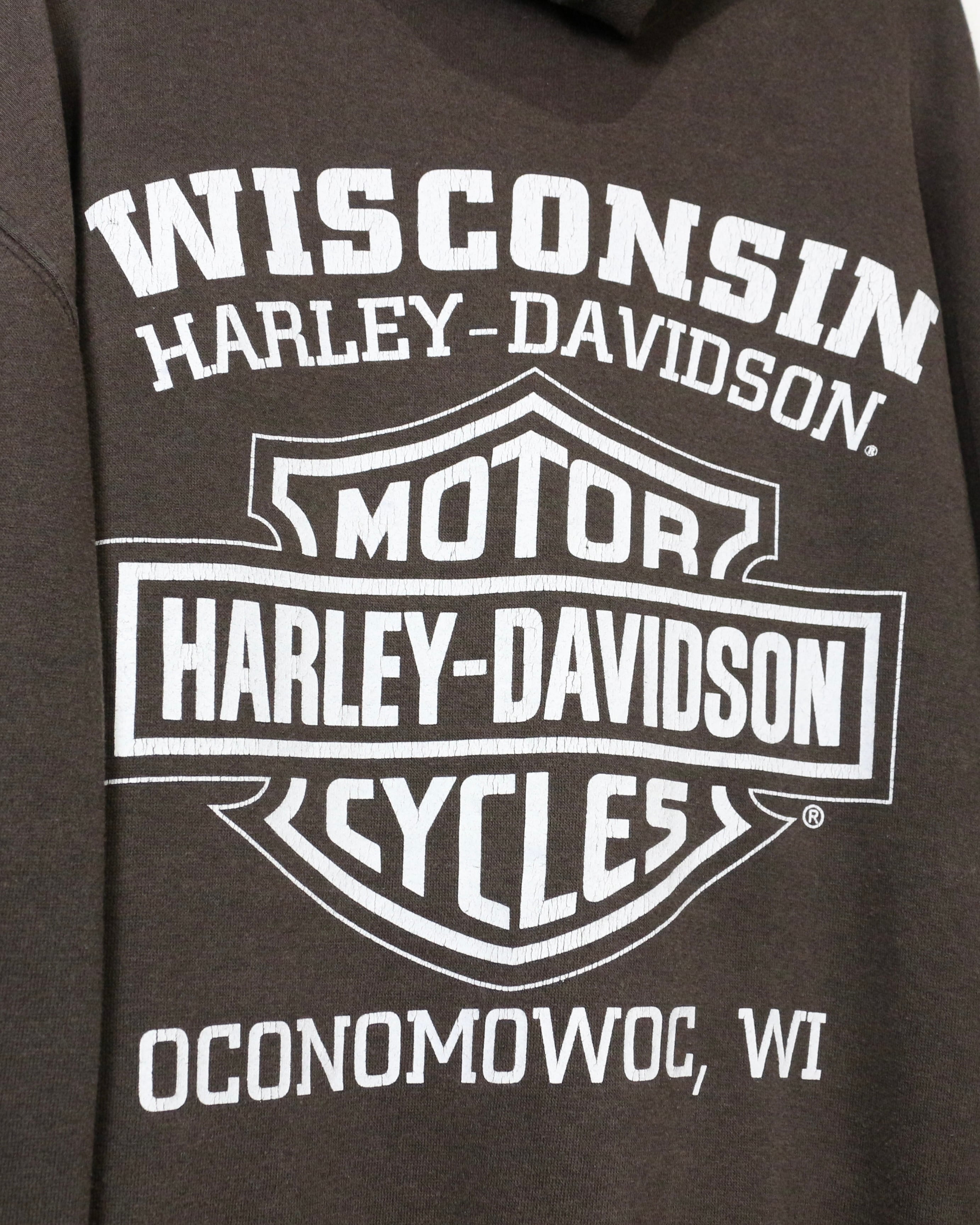 設立から100年以上の歴史を誇り、今なお世界中で圧倒的な支持を集めるアメリカのモーターサイクルメーカー“HARLEY DAVIDSON”より、ブランドらしい無骨さと存在感を兼ね備えたジップアップフーディ。