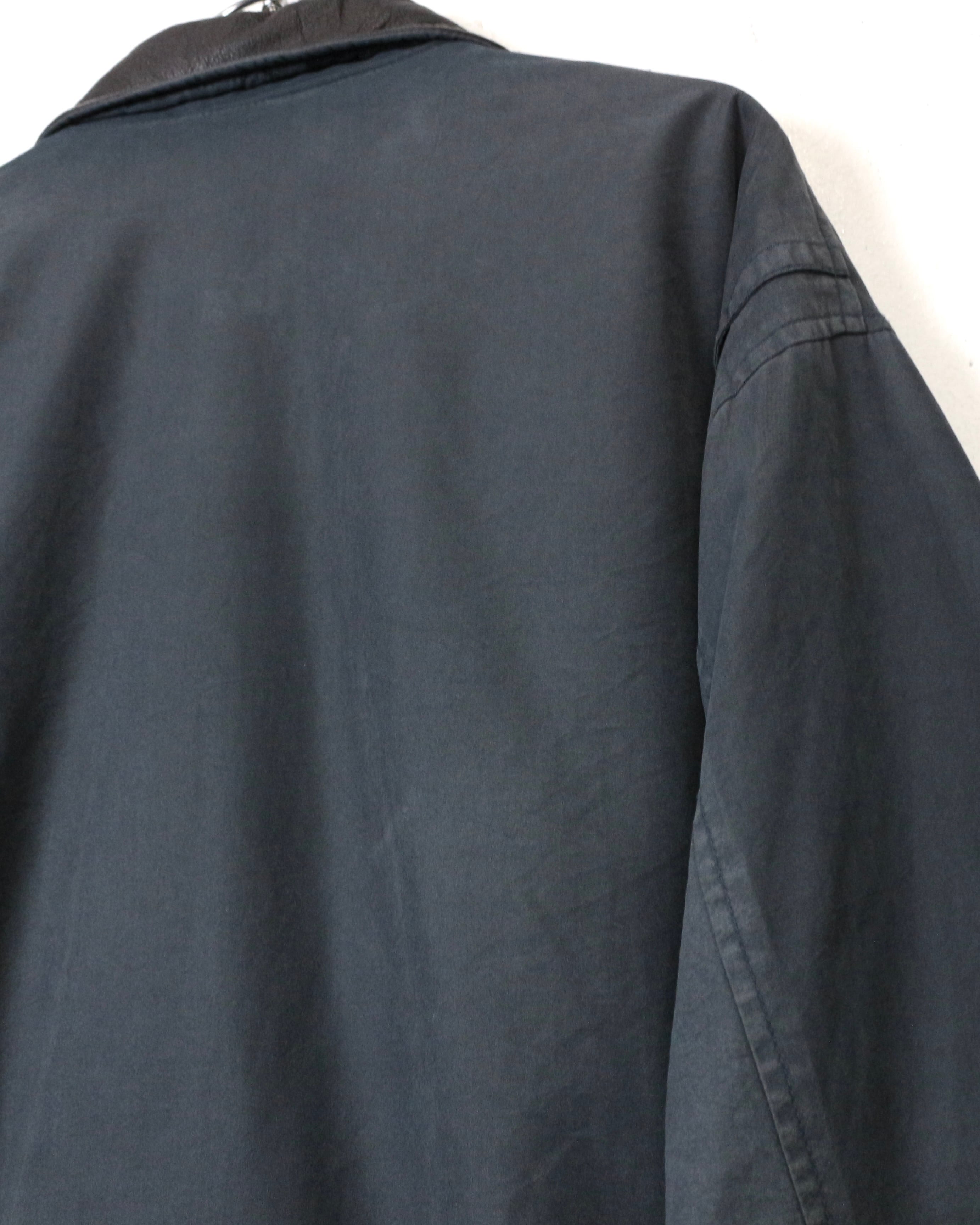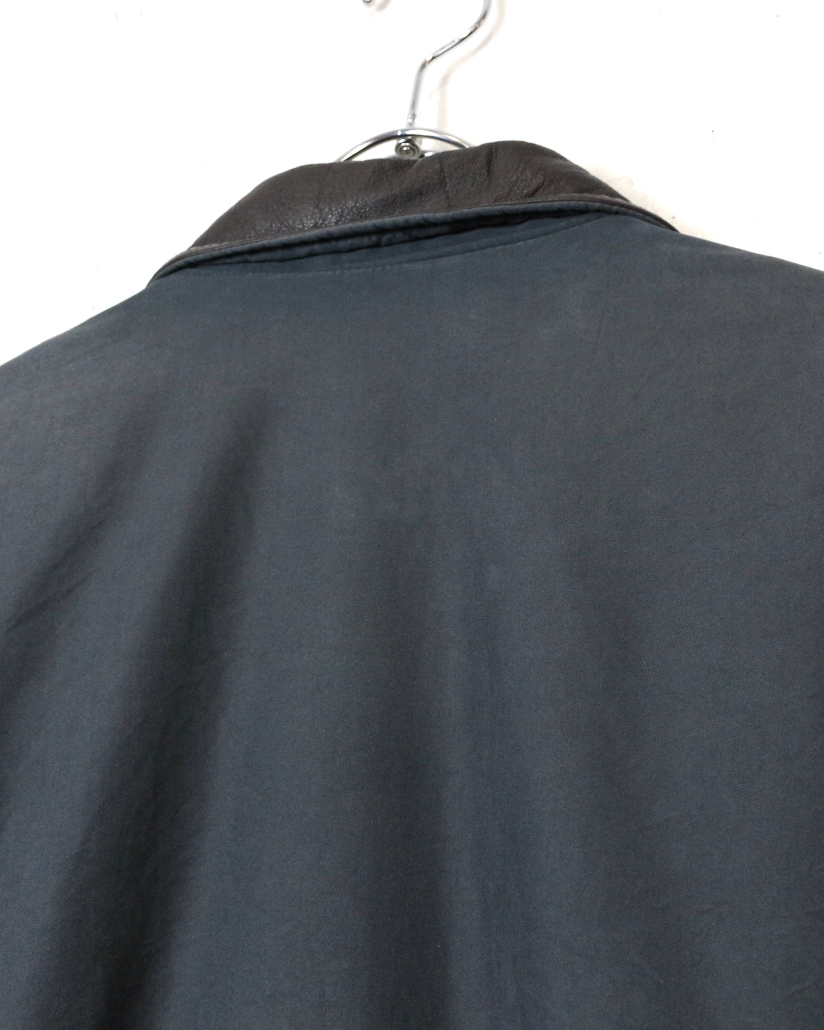 落ち着いたダークトーンのボディには、滑らかなナイロン×ポリエステルのシェルを採用。襟にはリアルレザーを切り替えることで、鈍い艶を帯びたレザーの表情がアクセントとなり、素材のコントラストが際立つデザインに。