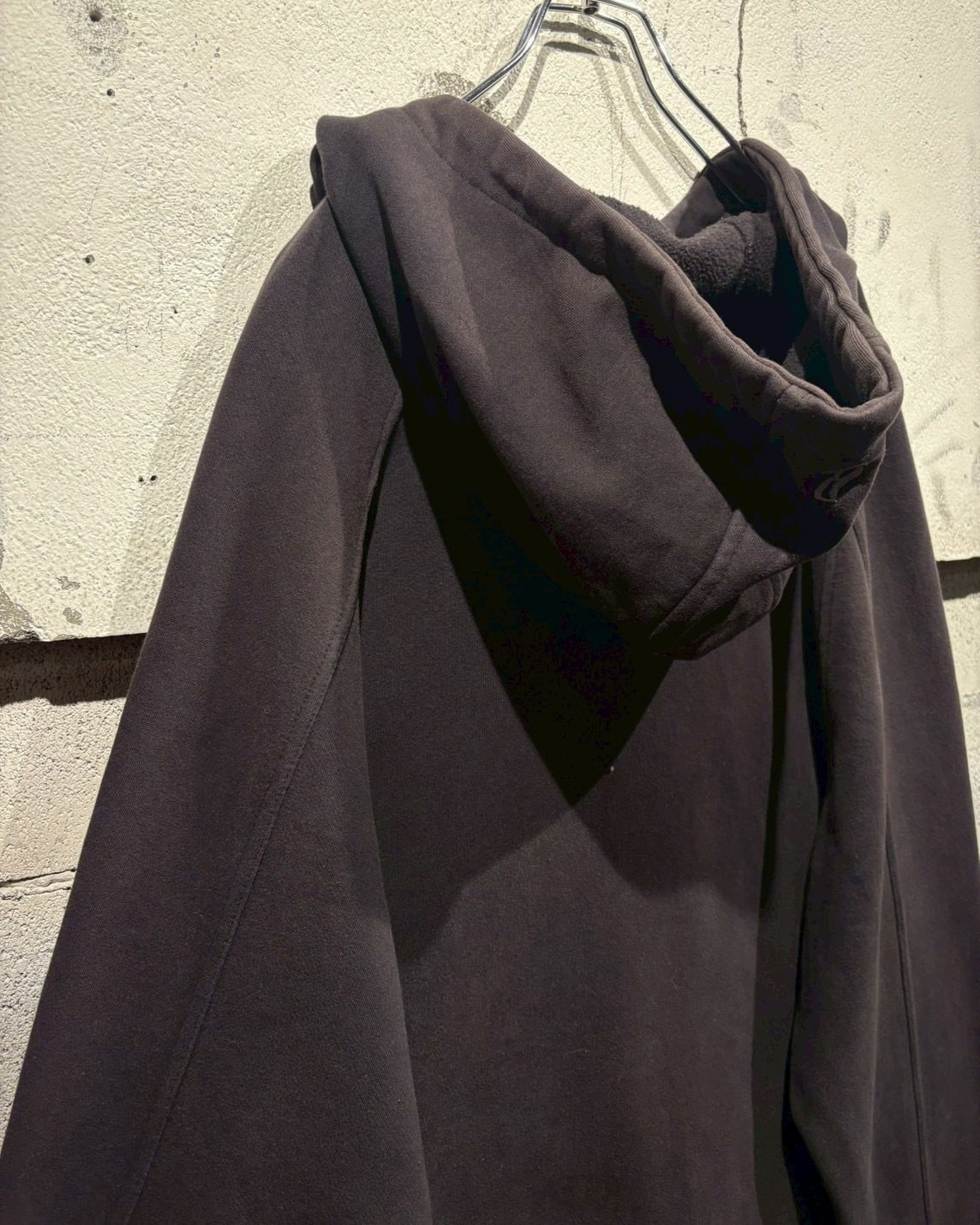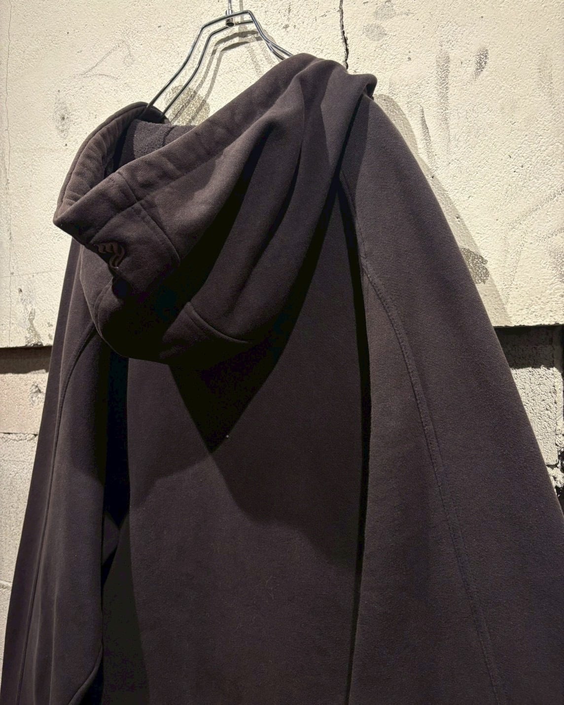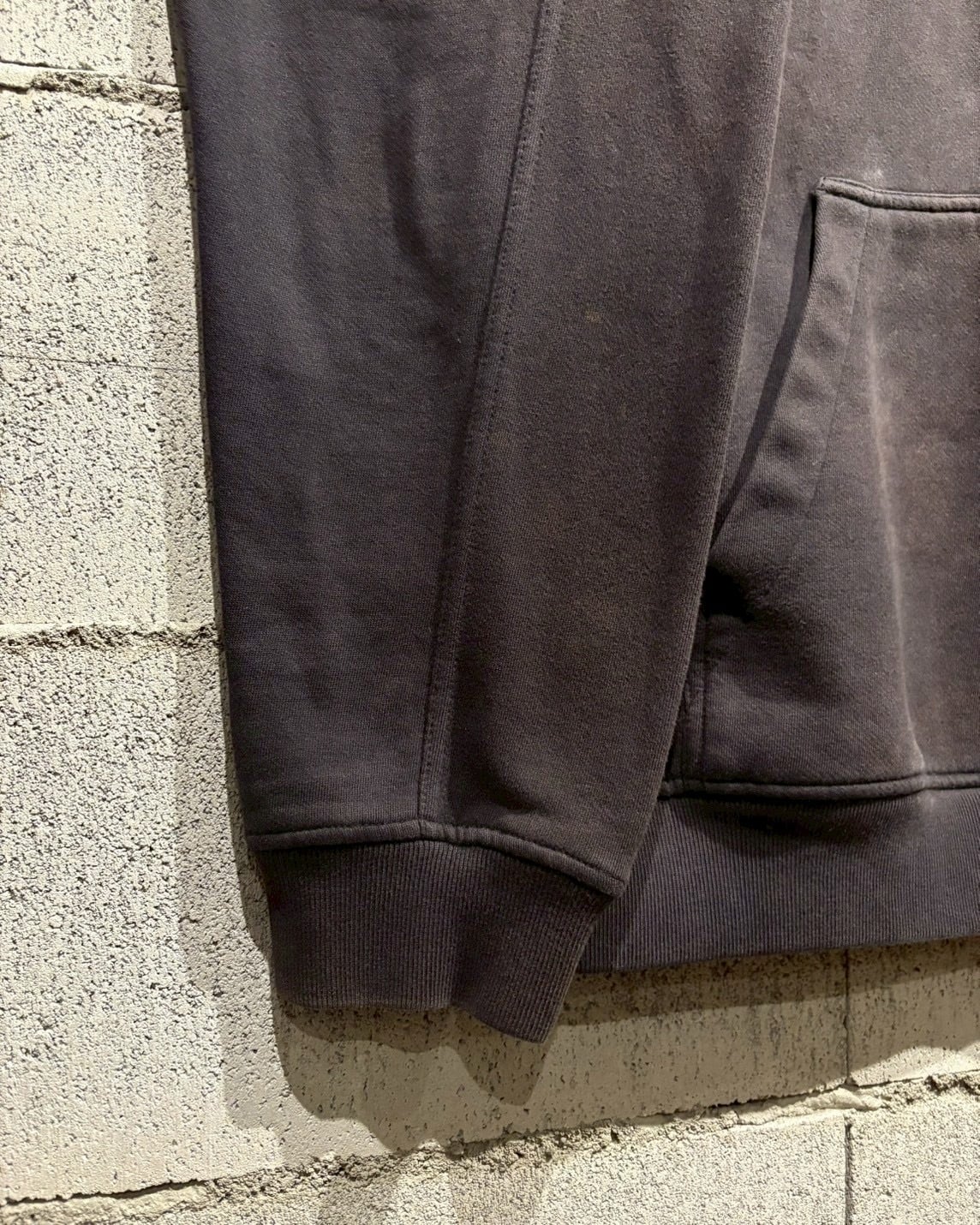 ブラックボディのフーディは経年変化によって全体が美しくフェードし、USEDならではの表情に仕上がった1着。加工では出せないナチュラルな色落ちと、柔らかくクタッとした生地感が相まって、雰囲気をしっかりと感じられる仕上がりとなっています。