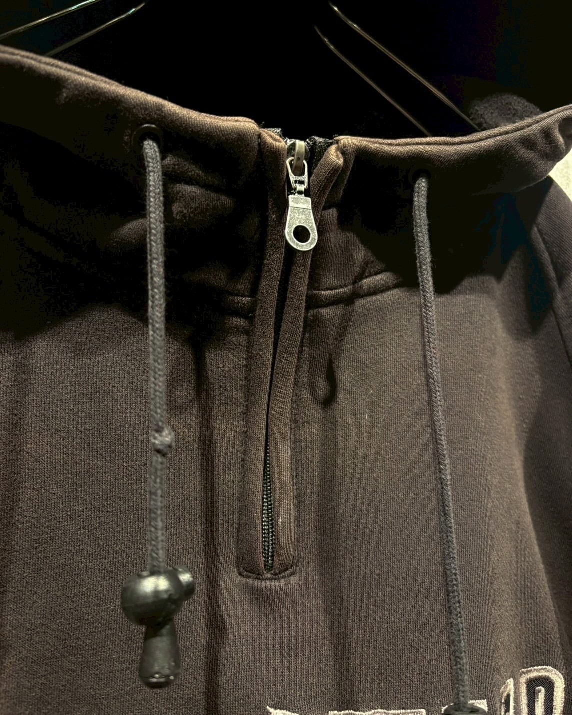 フロントにはブランドネームの刺繍ロゴを配置し、シンプルながら存在感のあるデザインに。首元はハーフジップ仕様に加えてやや高さがあり、着用時のシルエットも◎