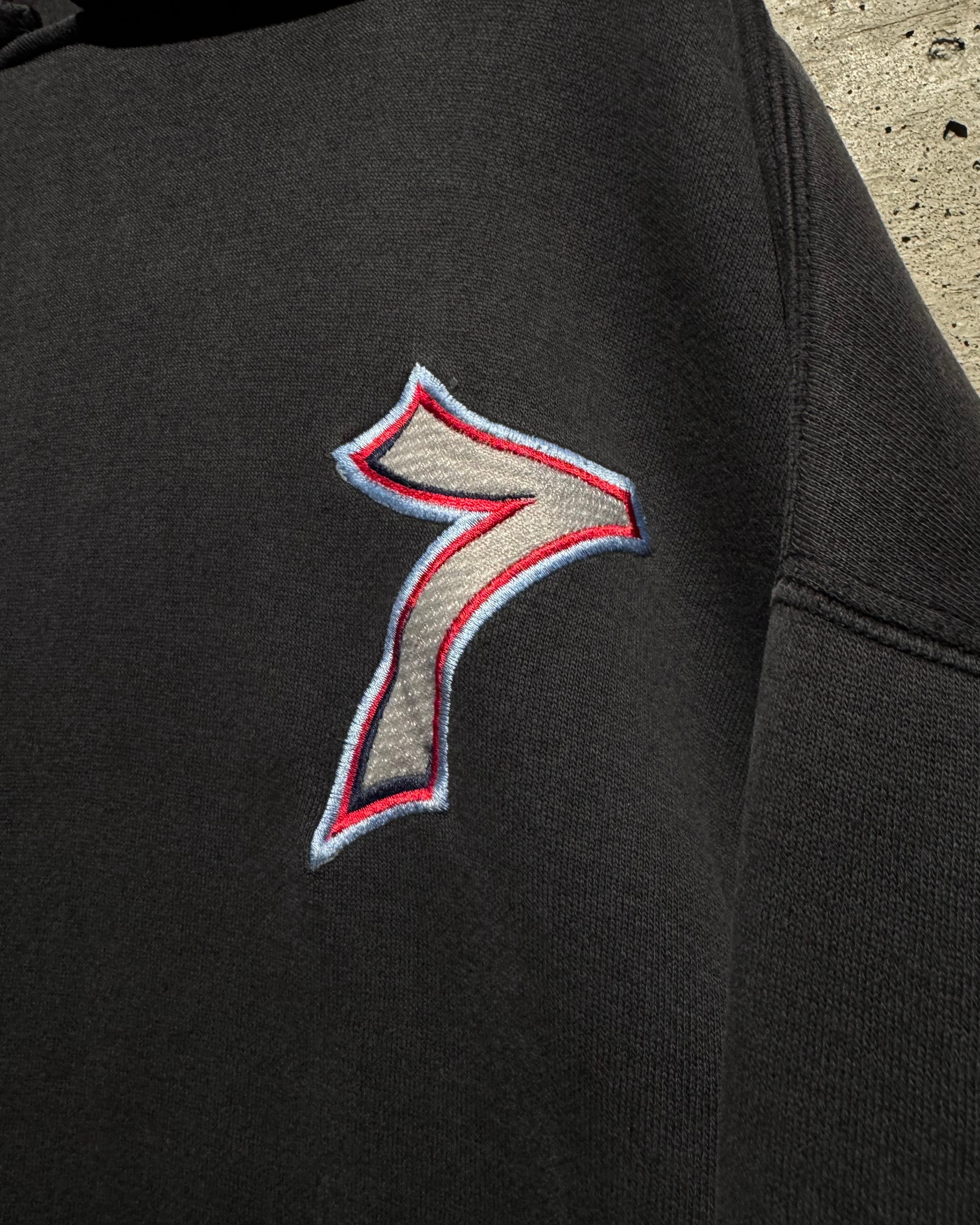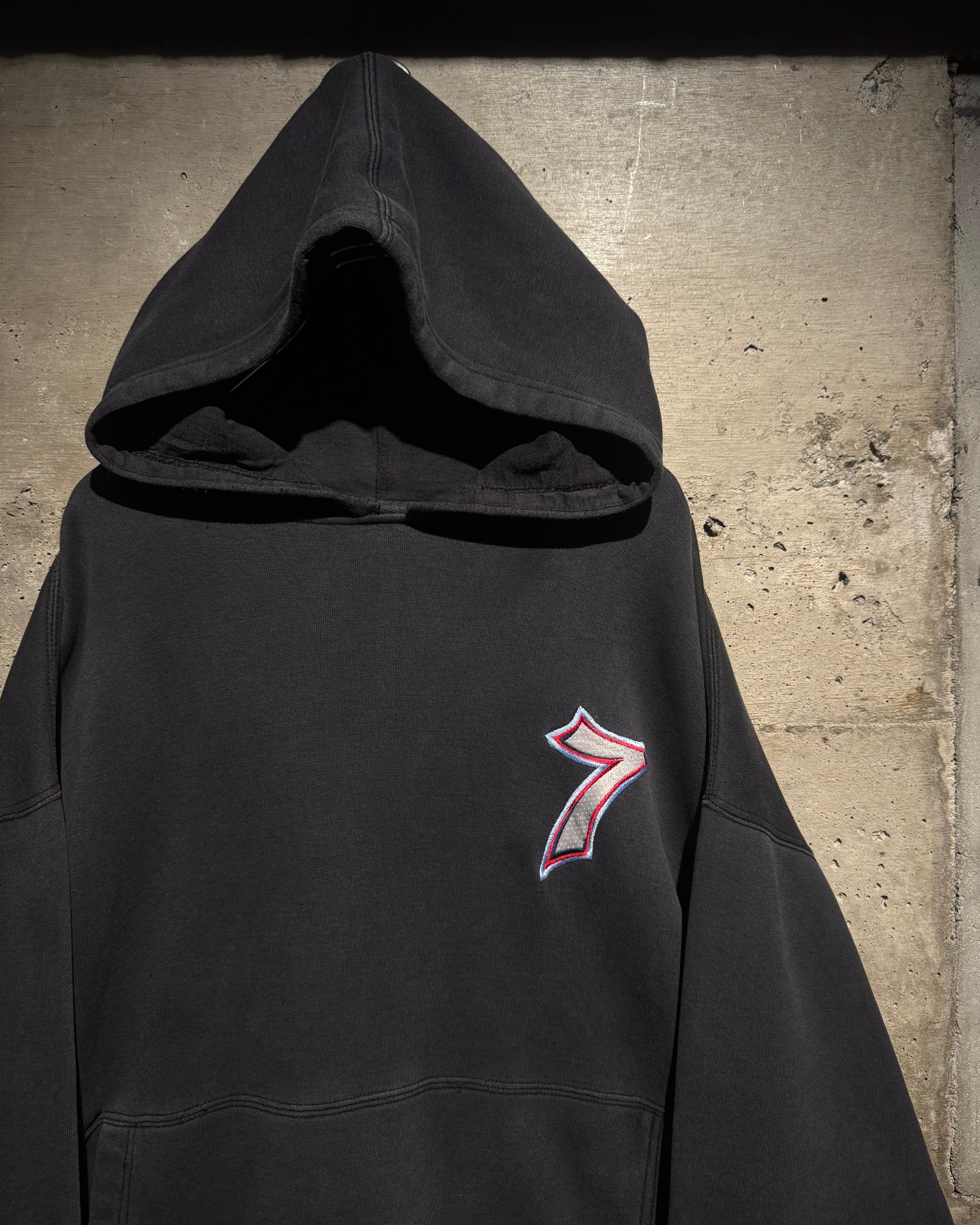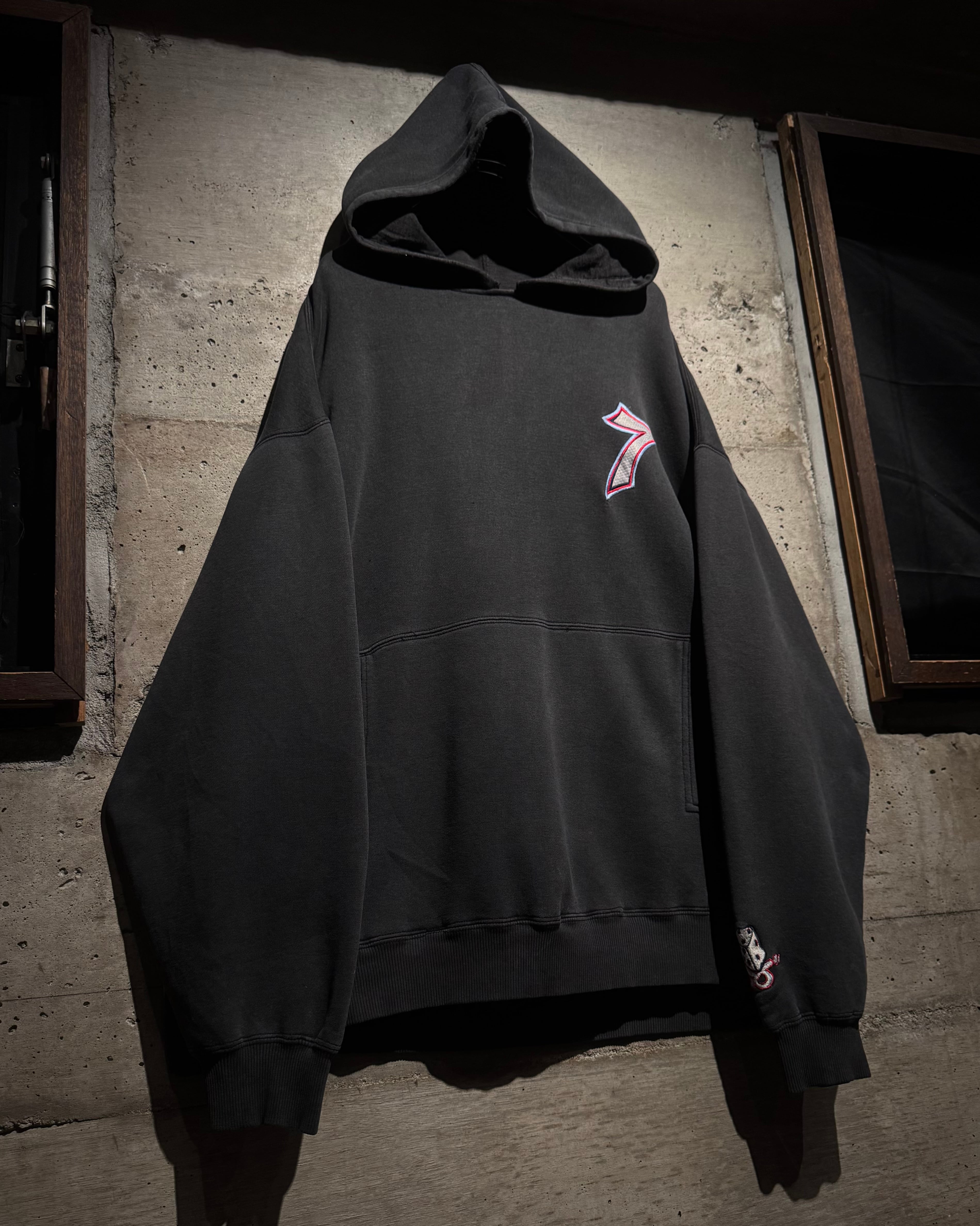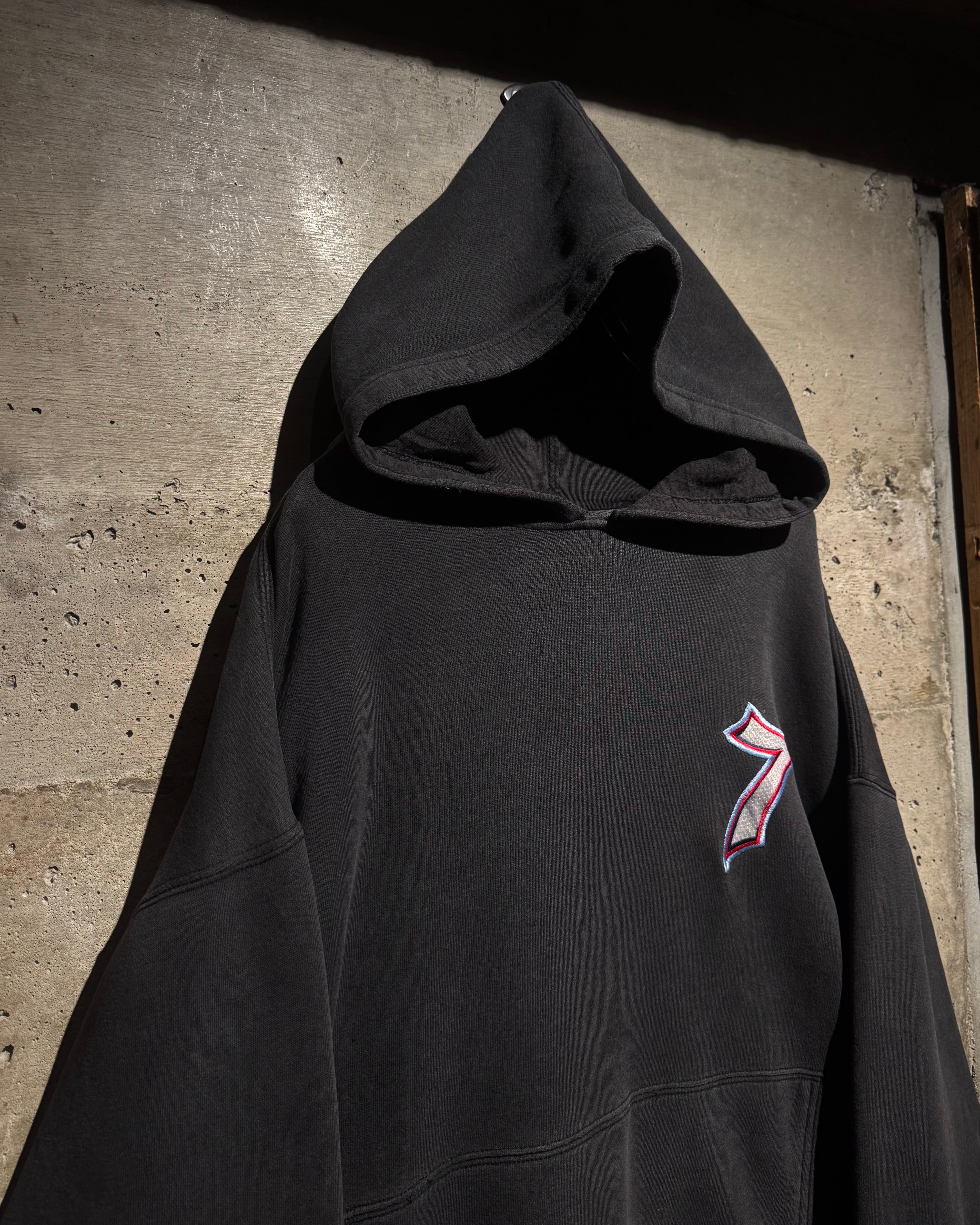 フロントにはナンバリング「7」、バックにはブランドを象徴するサイコロモチーフを大胆に配置。スケートカルチャーやレイヴシーンとリンクした、当時らしいアイコニックなデザイン。
