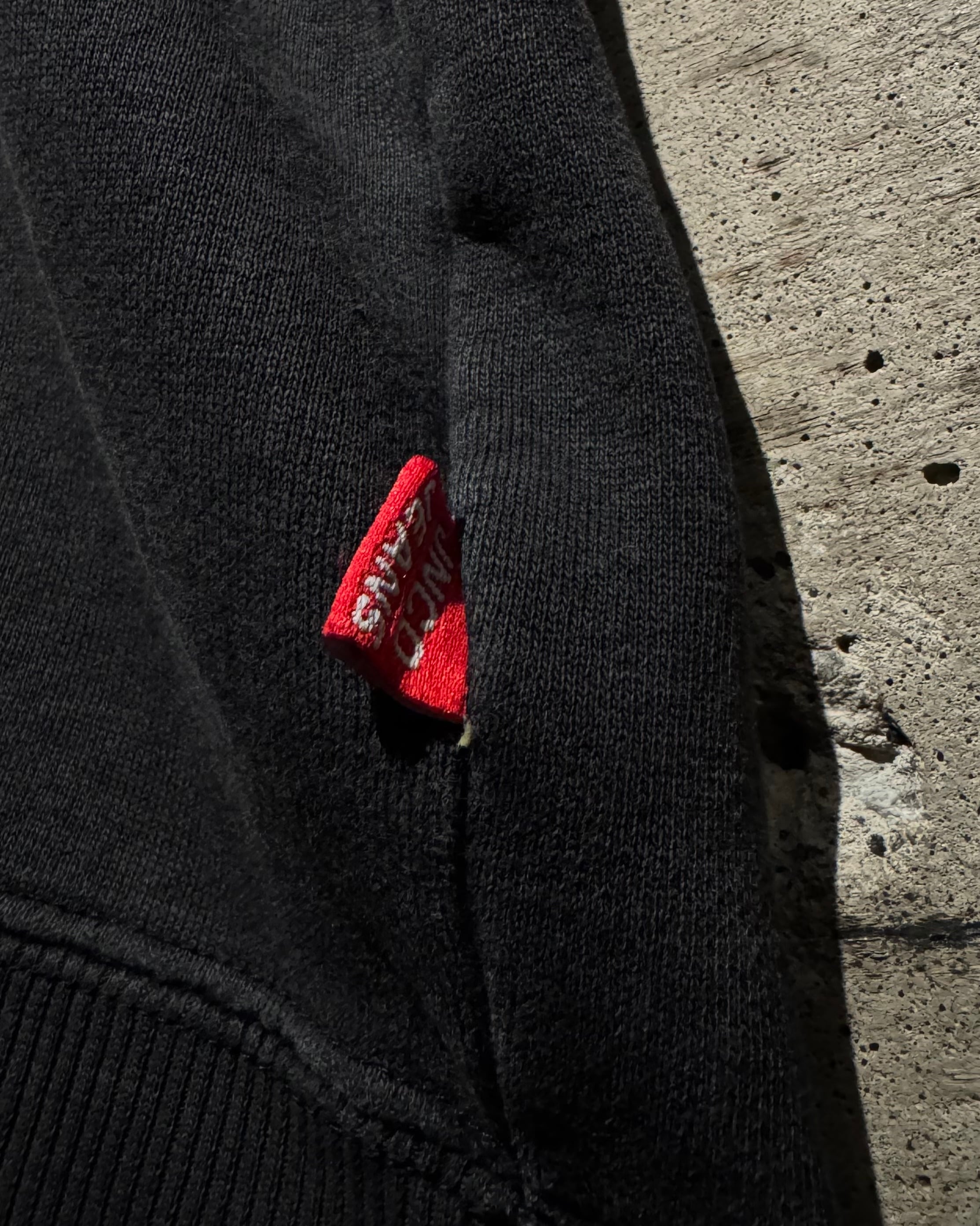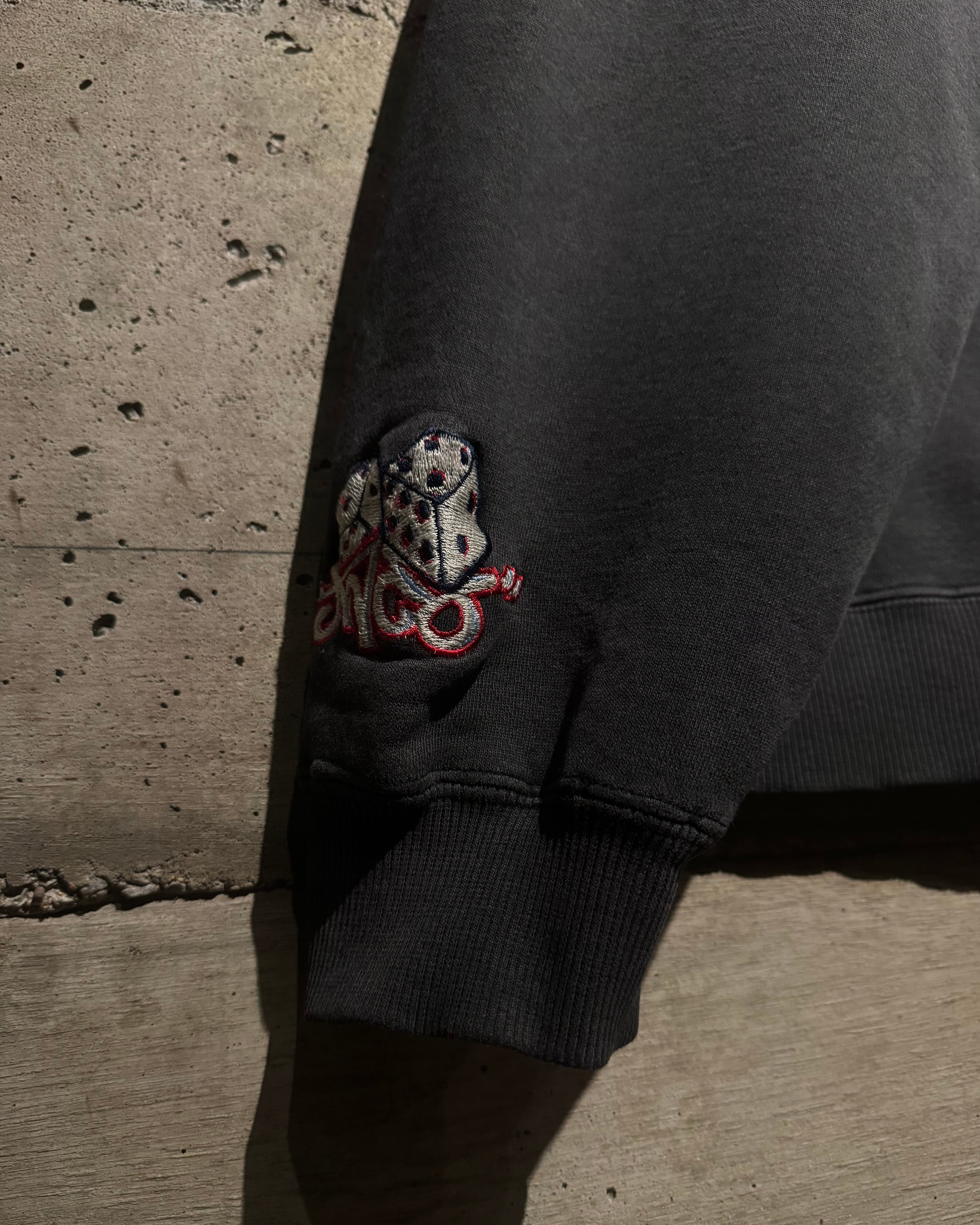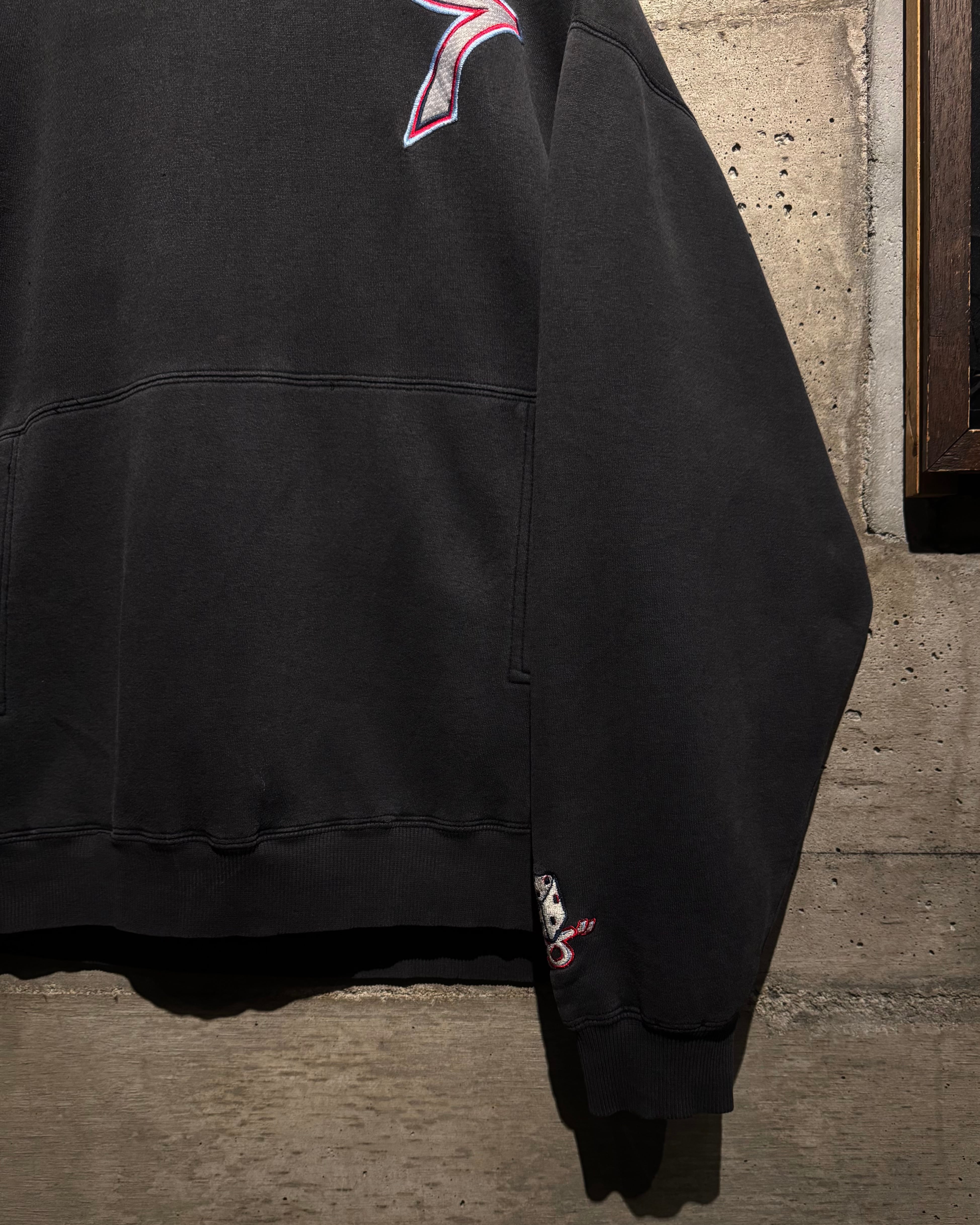 身幅やアームホールにはゆとりを持たせたルーズシルエットで、当時らしいストリートムードを存分に演出。ラフに被るだけでスタイリングの主役として存在感を放つ一着。