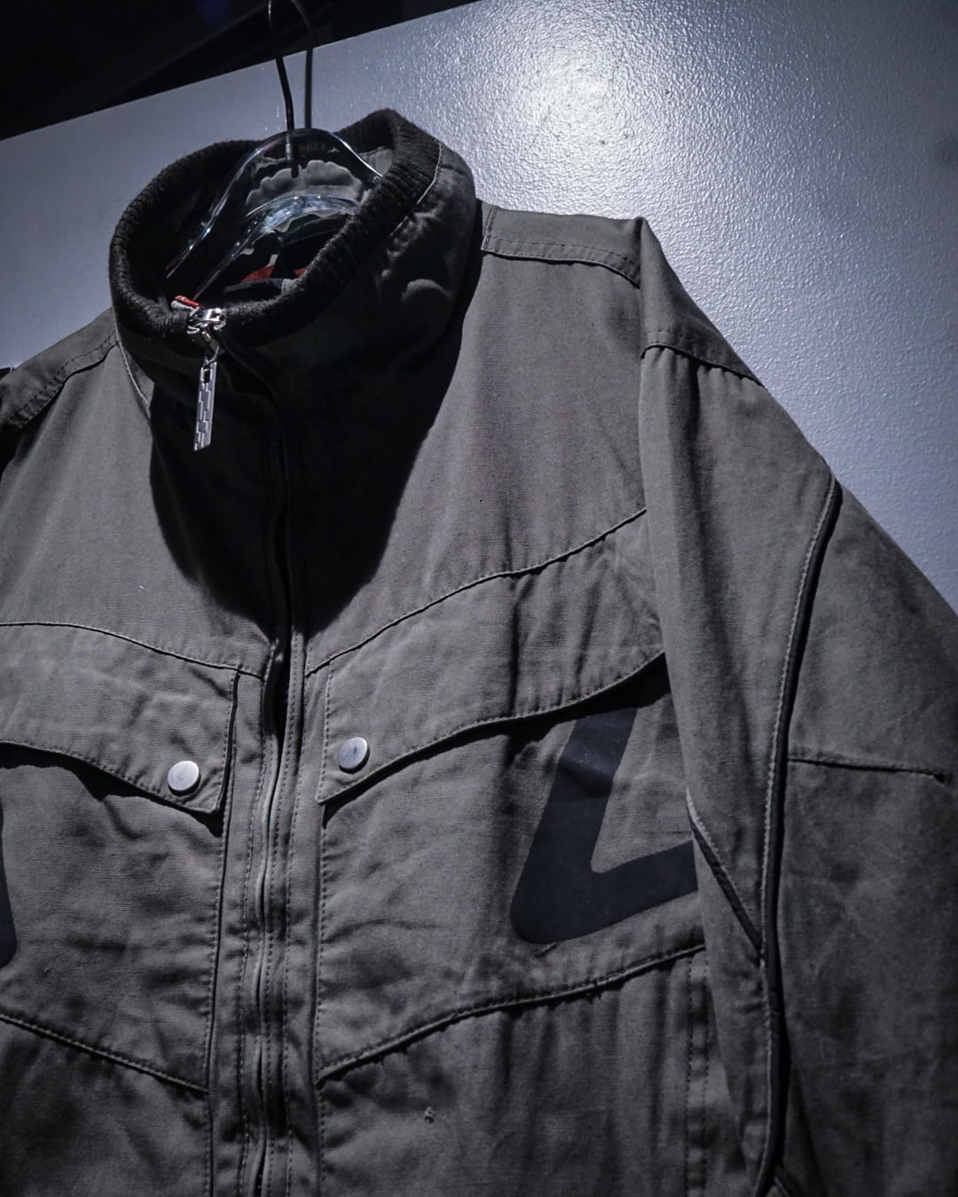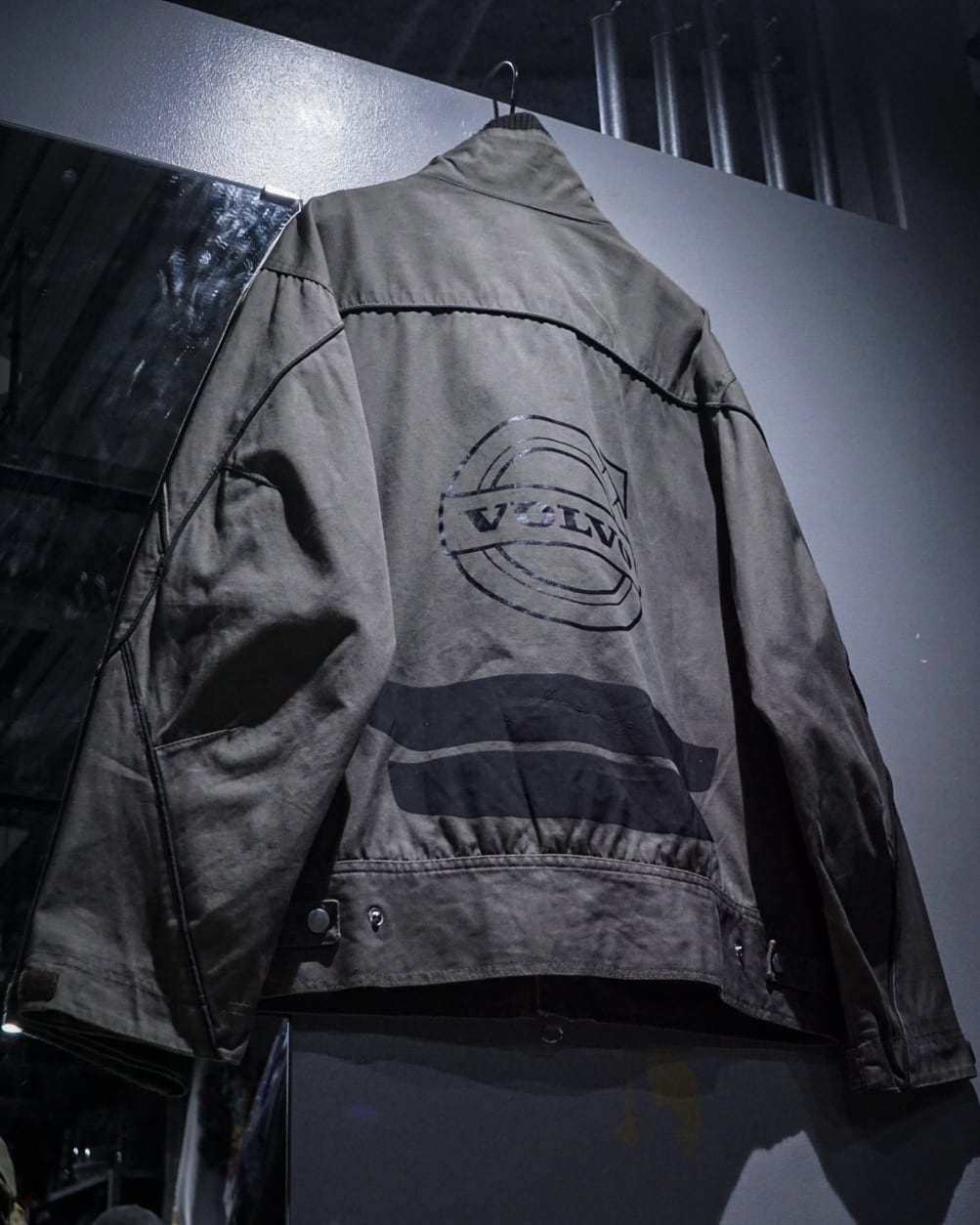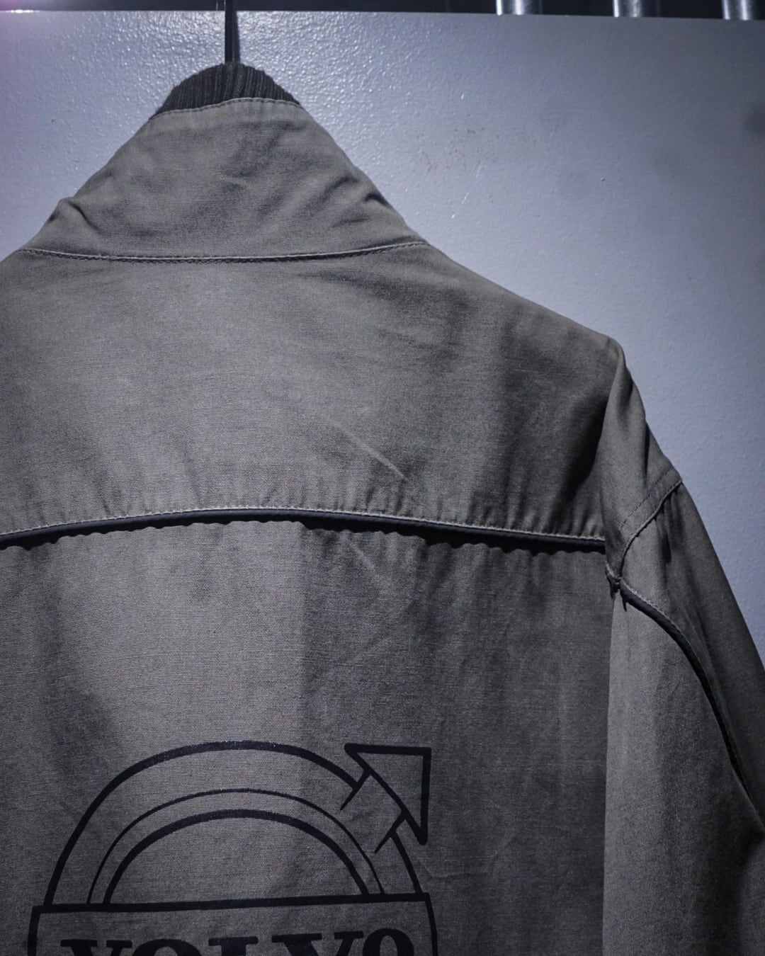 背面にはお馴染みの“VOLVO”ロゴを大胆にプリントし、存在感を放つ仕上がりに。首元はスタンドカラー仕様で、都会的かつクリーンな印象を演出します。