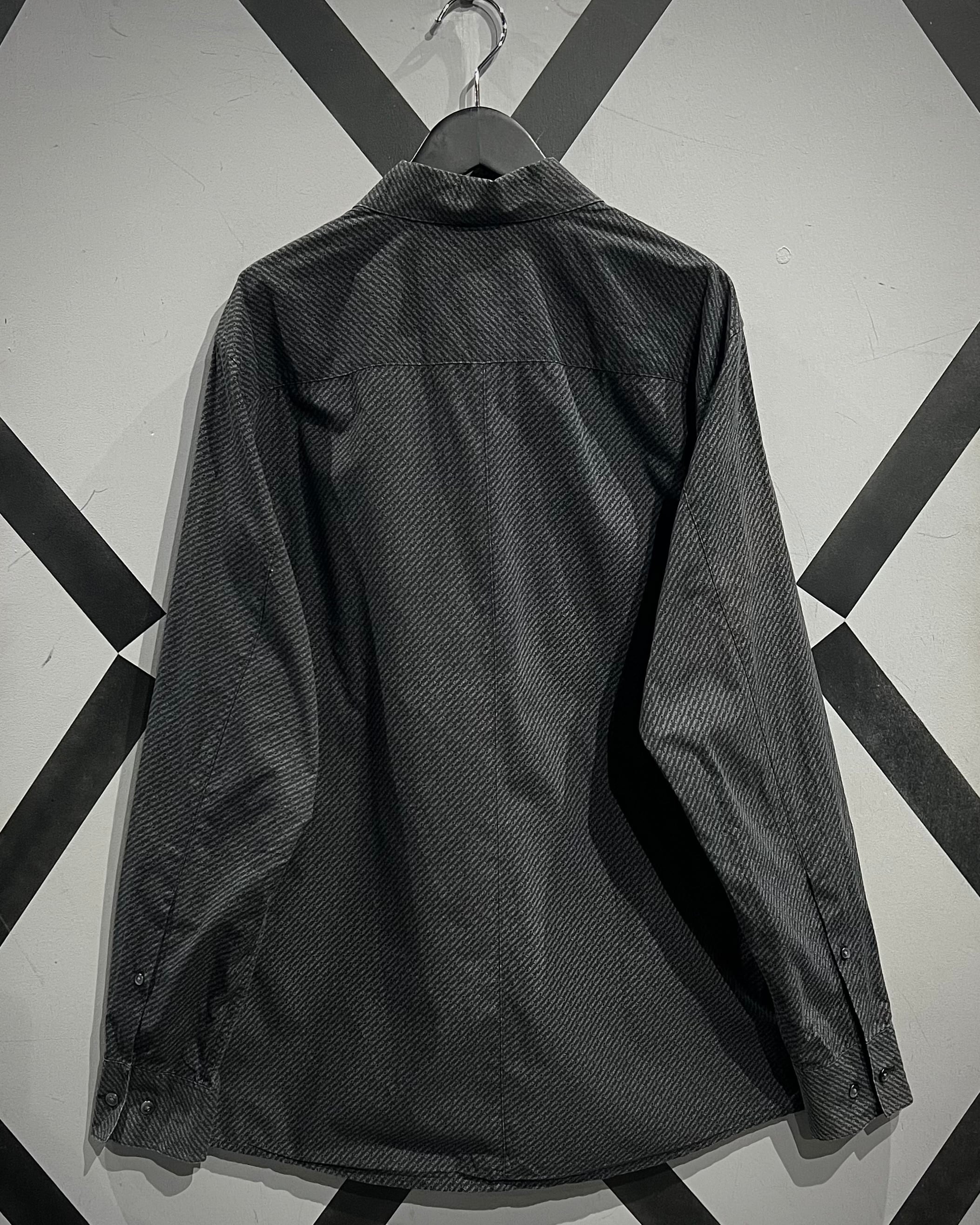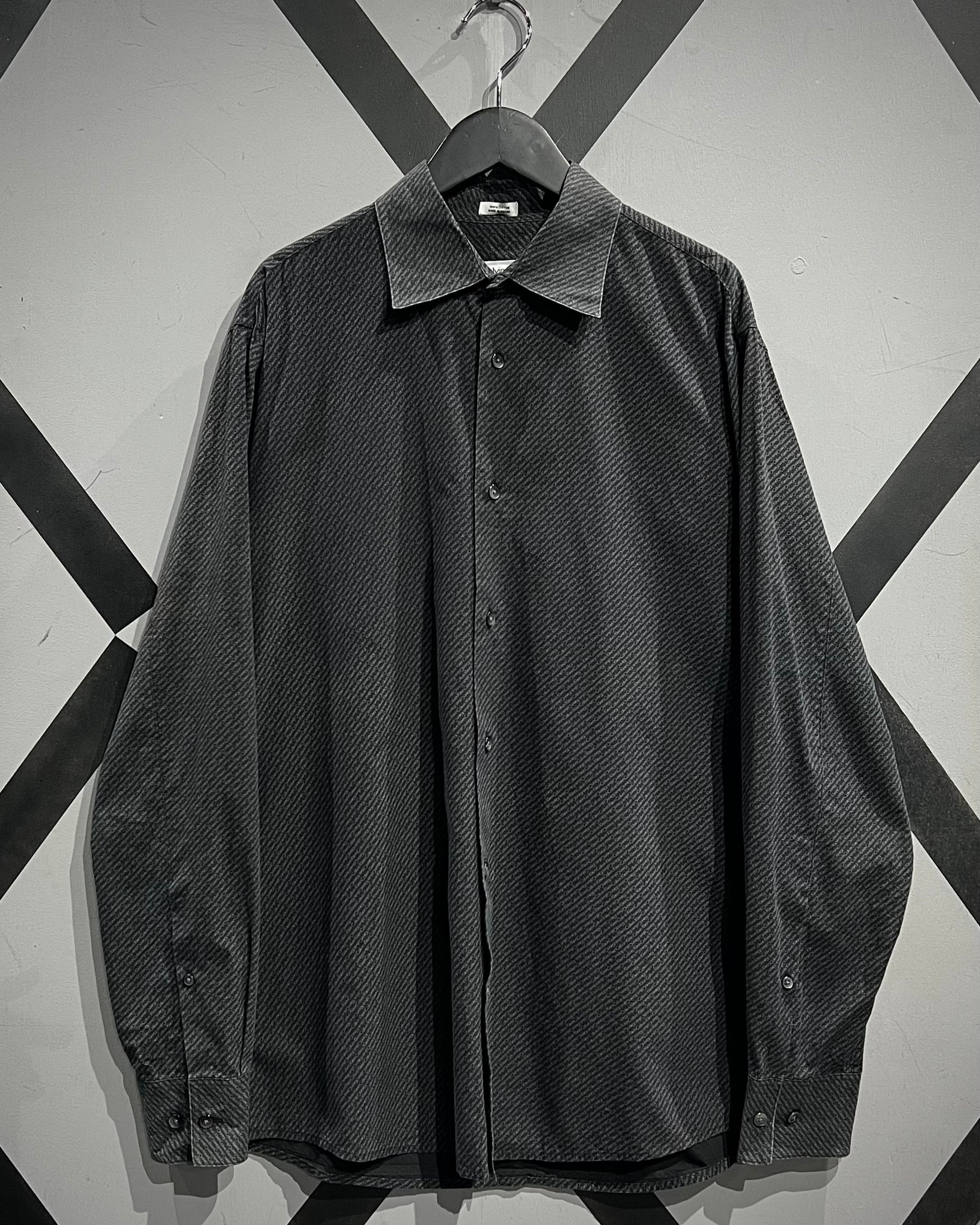 ブラックベースの生地全面にブランドネームをバイアス状に落とし込んだ1着。