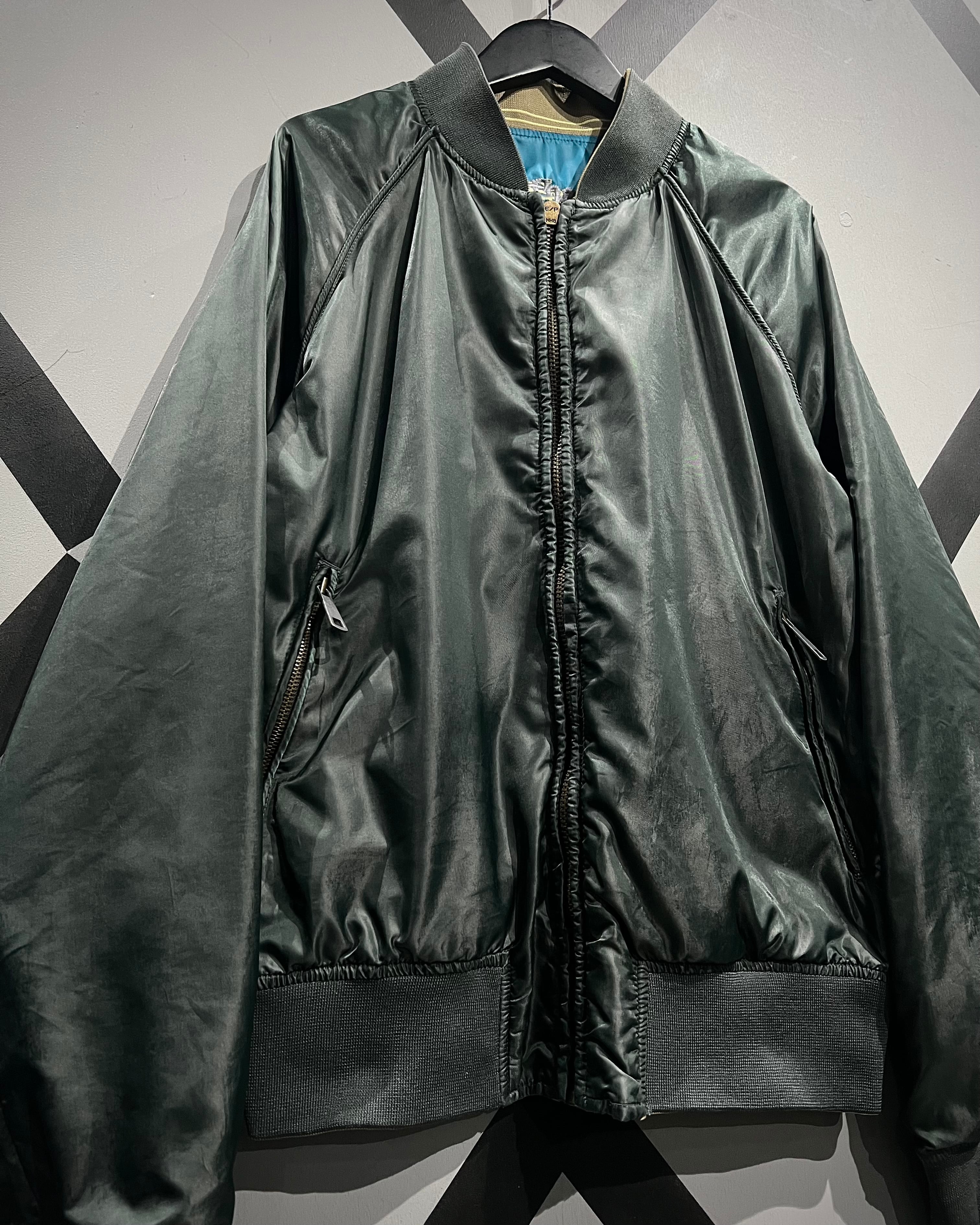 そして最大の特徴はリバーシブル仕様。裏返すとミニマルなカーキのブルゾンへと変化し、光沢感のあるナイロンが洗練された印象に。ジップはRalph Lauren製のジップへ交換されたカスタム仕様。刺繍の効いたスカジャン面と、ソリッドなミリタリーブルゾン面の2つの表情を楽しめる仕様が◎