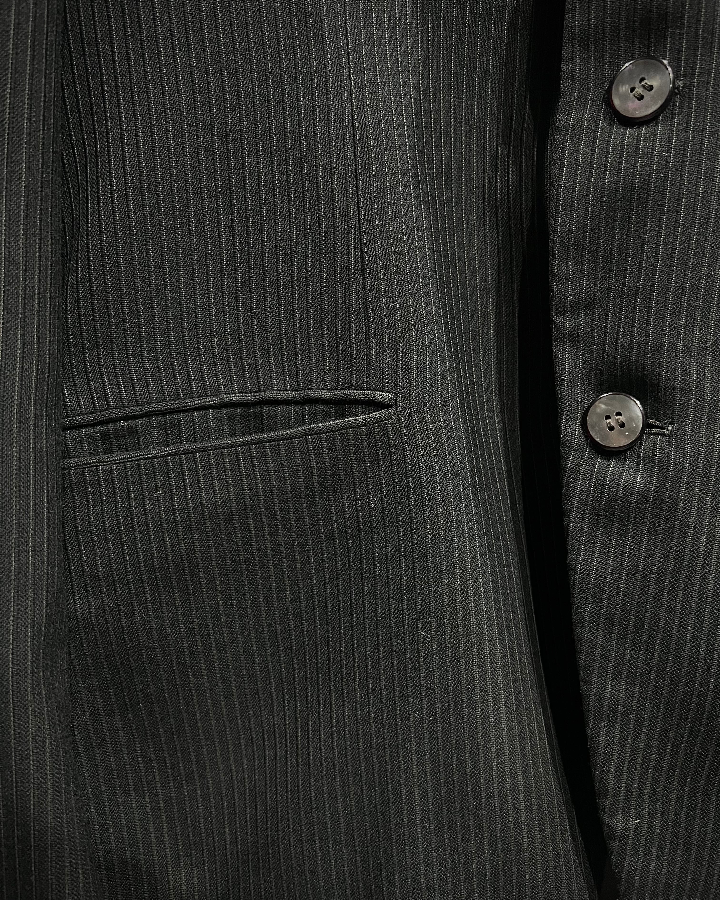フロントはシングル3ボタン仕様、ノッチドラペルに胸ポケットと腰ポケットを備えた王道のデザイン。クラシックなディテールを丁寧に踏襲しながら、全体のバランスは非常にスマートで洗練された印象に。