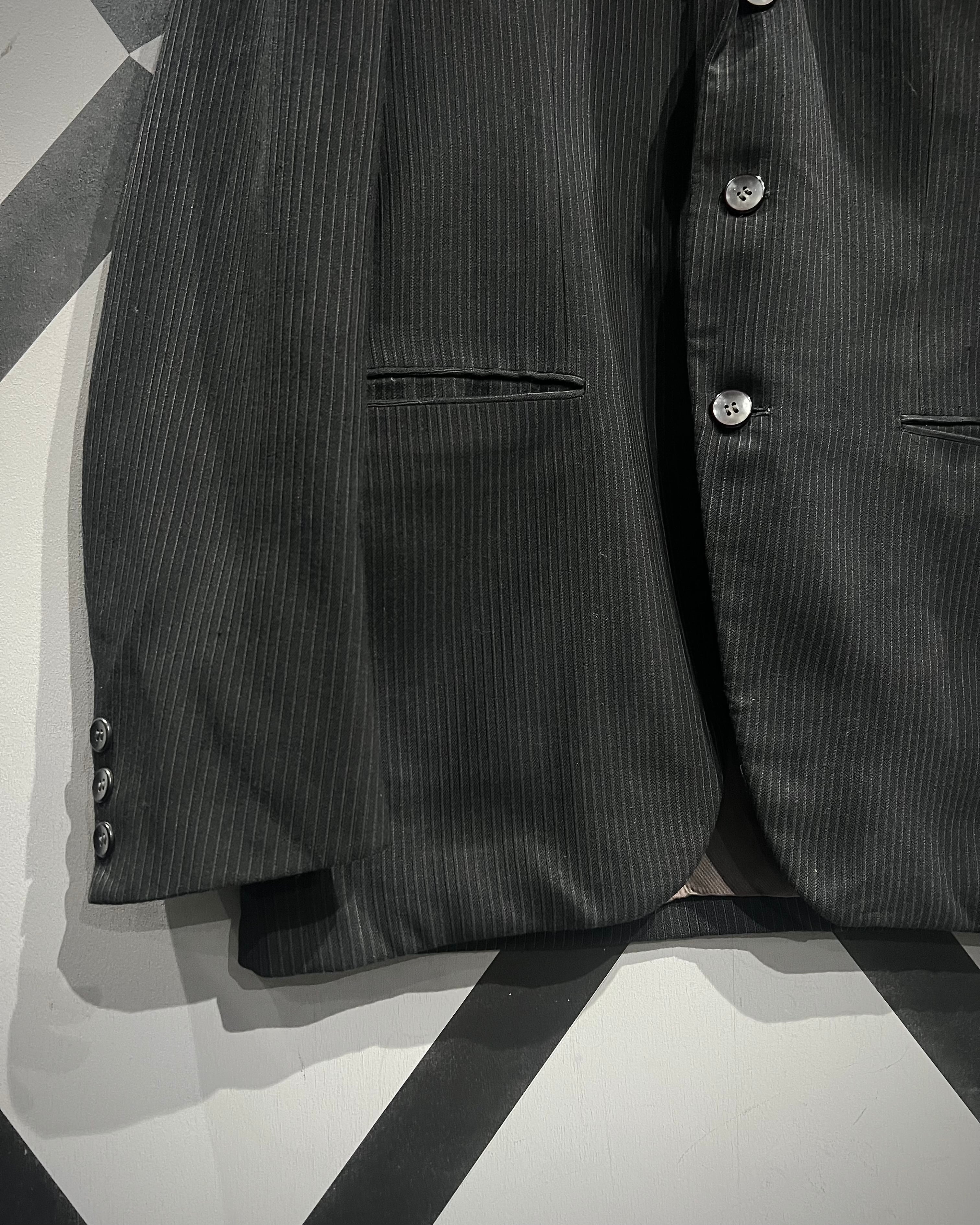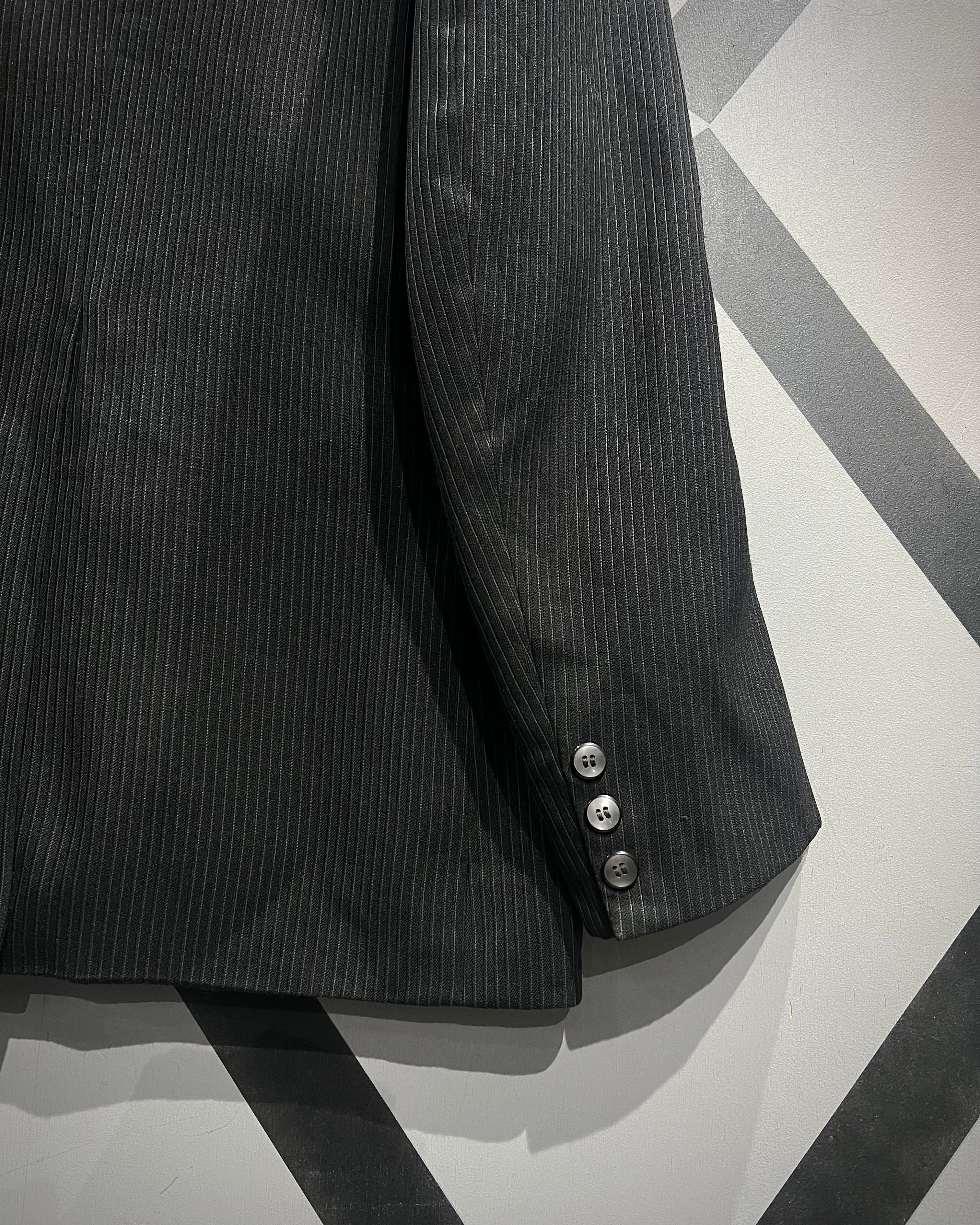 裏地を備えた仕立てにより袖通しも滑らかで、ジャケットとしての完成度も申し分なし。ストライプ柄の縦のラインがシルエットをすっきりと見せてくれるため、着用時のスマートな雰囲気も◎