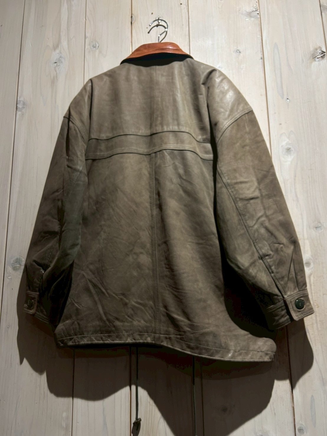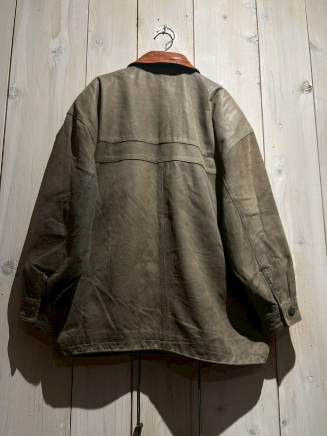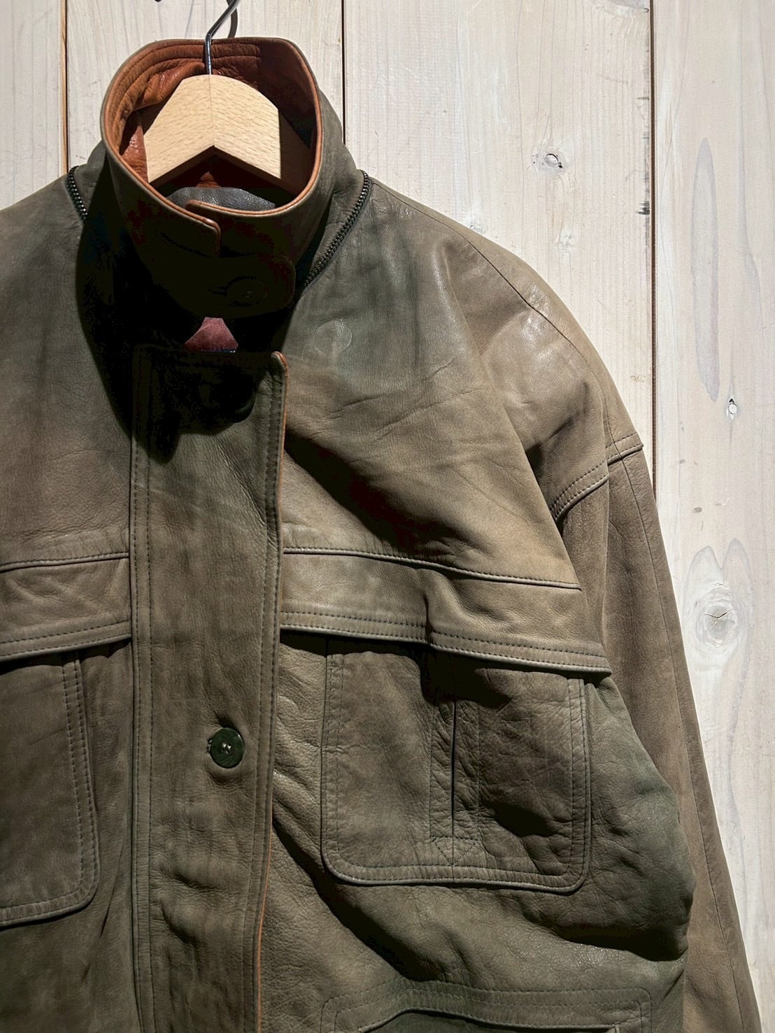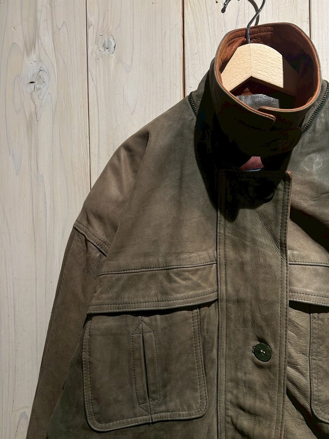 ボディ全体には程よくゆとりを持たせたシルエットを採用しており、厚手のインナーの上からでも羽織りやすいバランス。レザー特有の重量感を感じさせながらも、着用時には自然なドレープが生まれ、立体的なシルエットを形成してくれます。