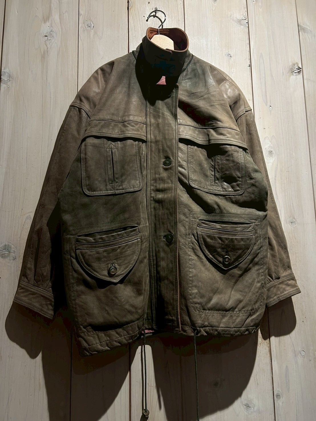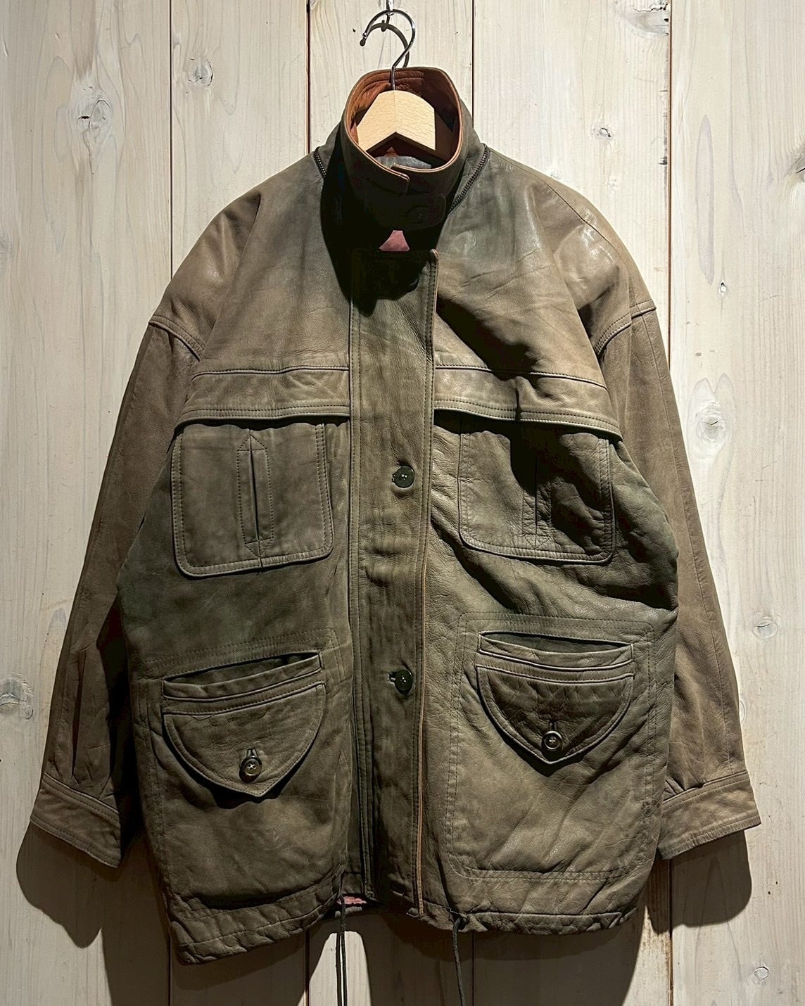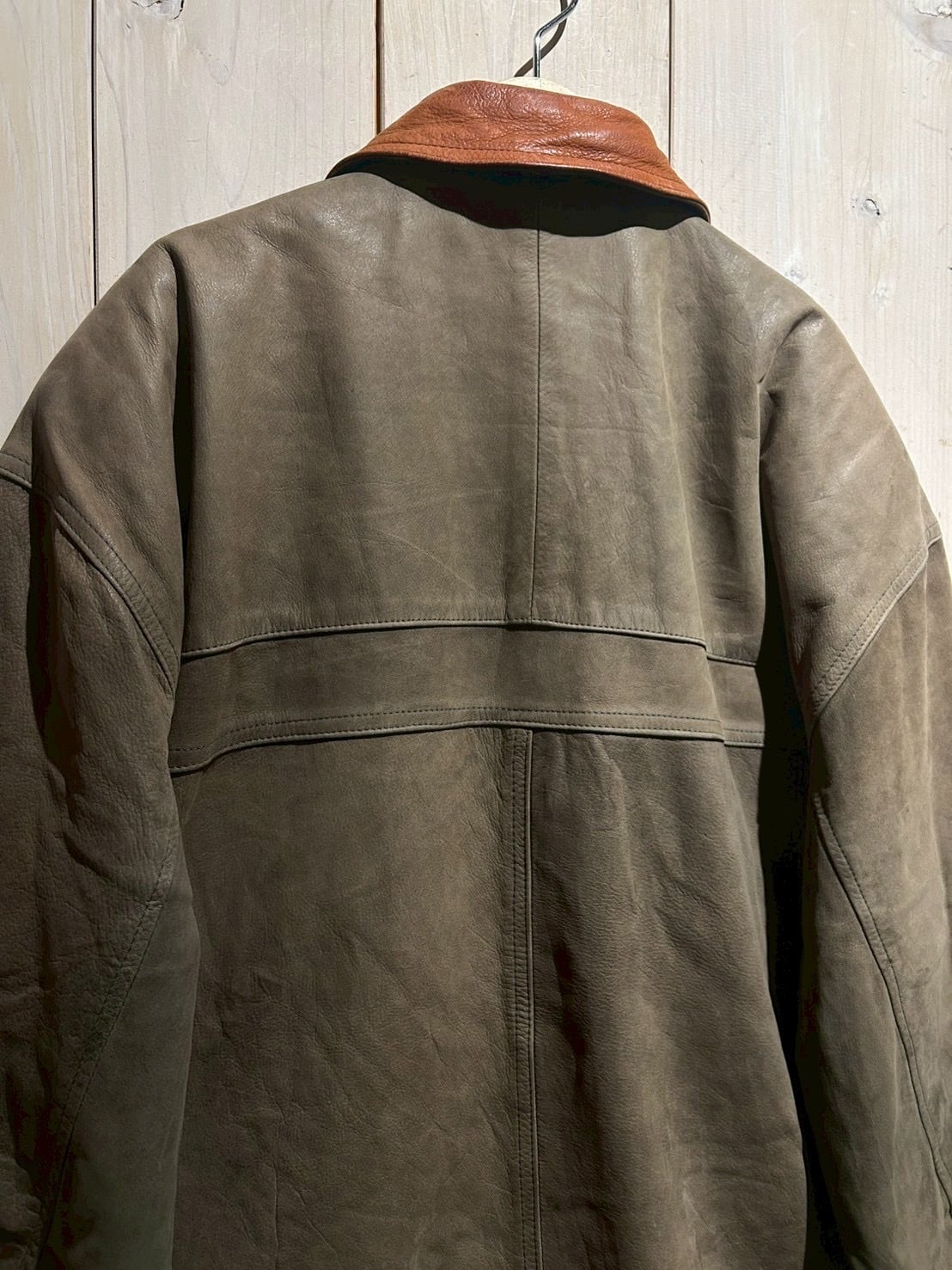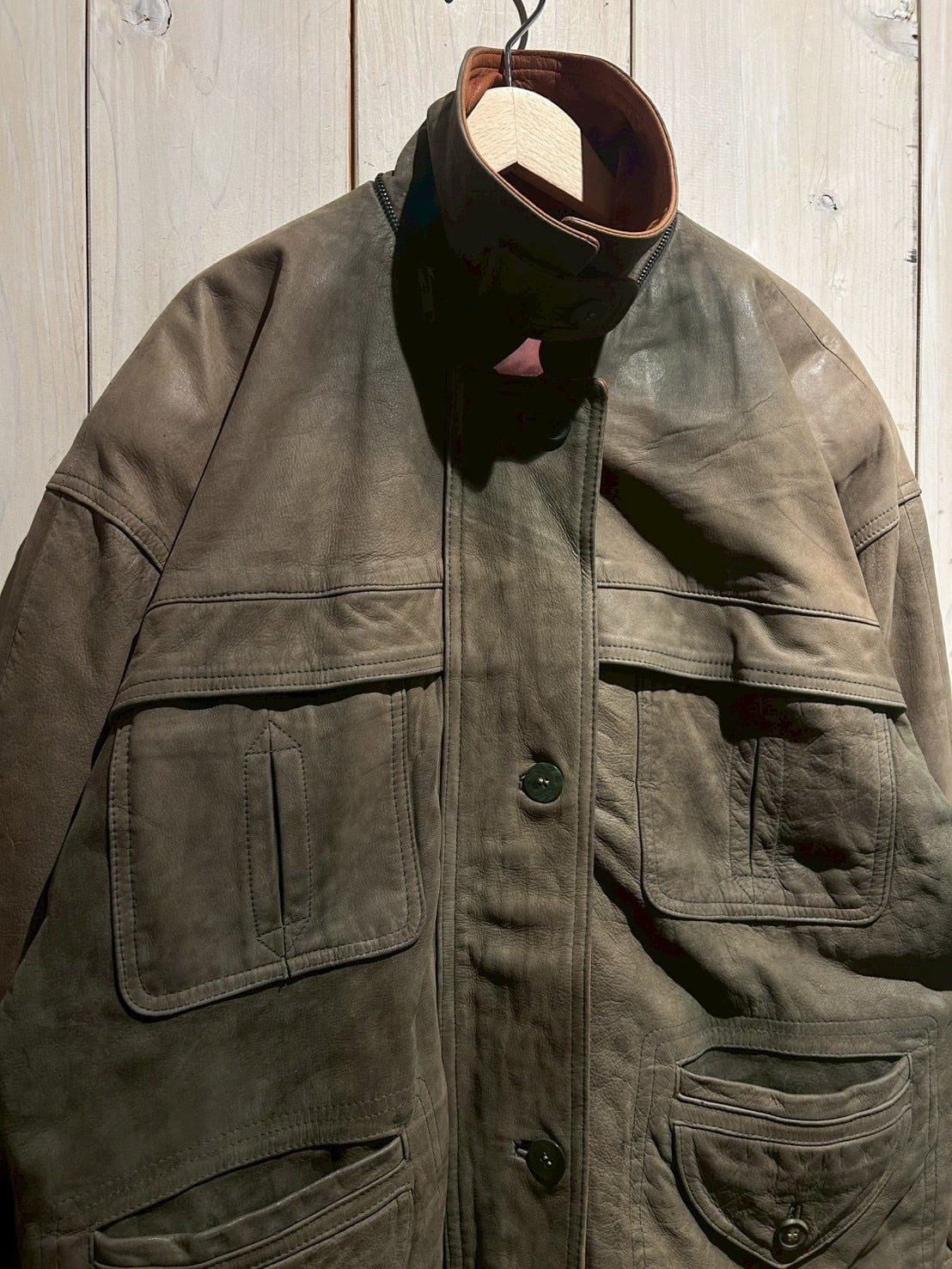 ボディ全体には程よくゆとりを持たせたシルエットを採用しており、厚手のインナーの上からでも羽織りやすいバランス。レザー特有の重量感を感じさせながらも、着用時には自然なドレープが生まれ、立体的なシルエットを形成してくれます。