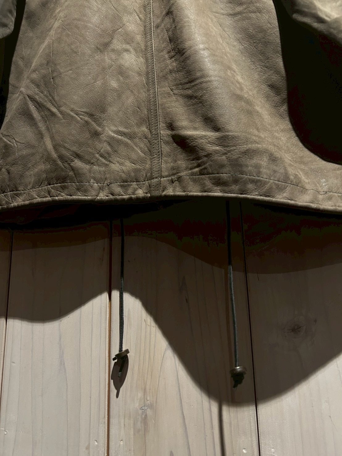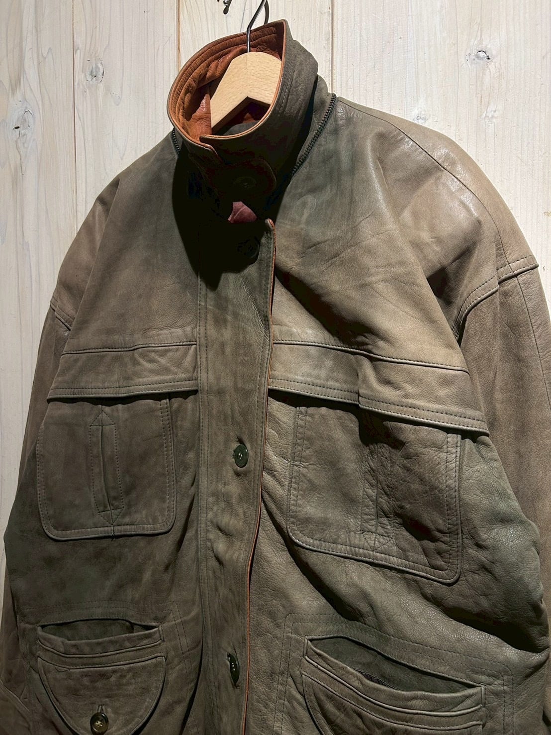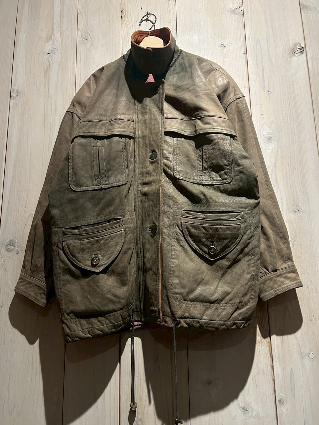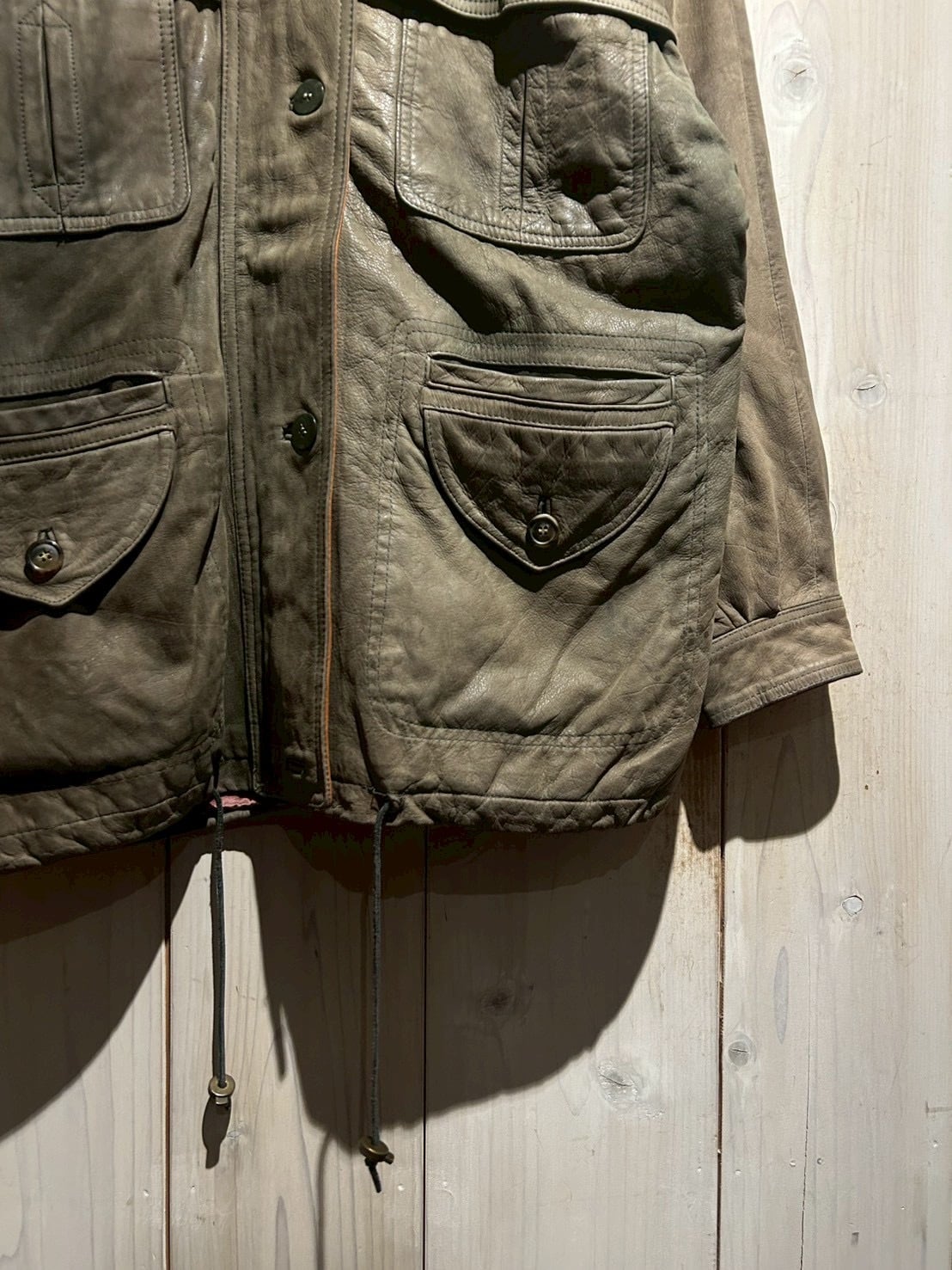 ボディ全体には程よくゆとりを持たせたシルエットを採用しており、厚手のインナーの上からでも羽織りやすいバランス。レザー特有の重量感を感じさせながらも、着用時には自然なドレープが生まれ、立体的なシルエットを形成してくれます。