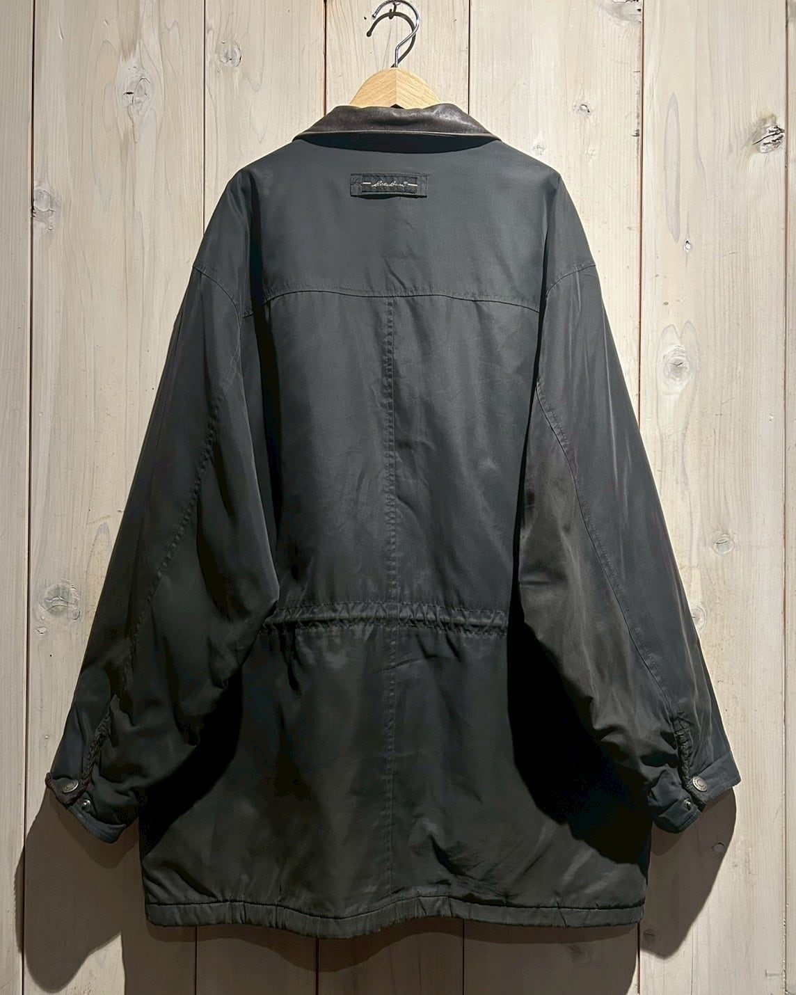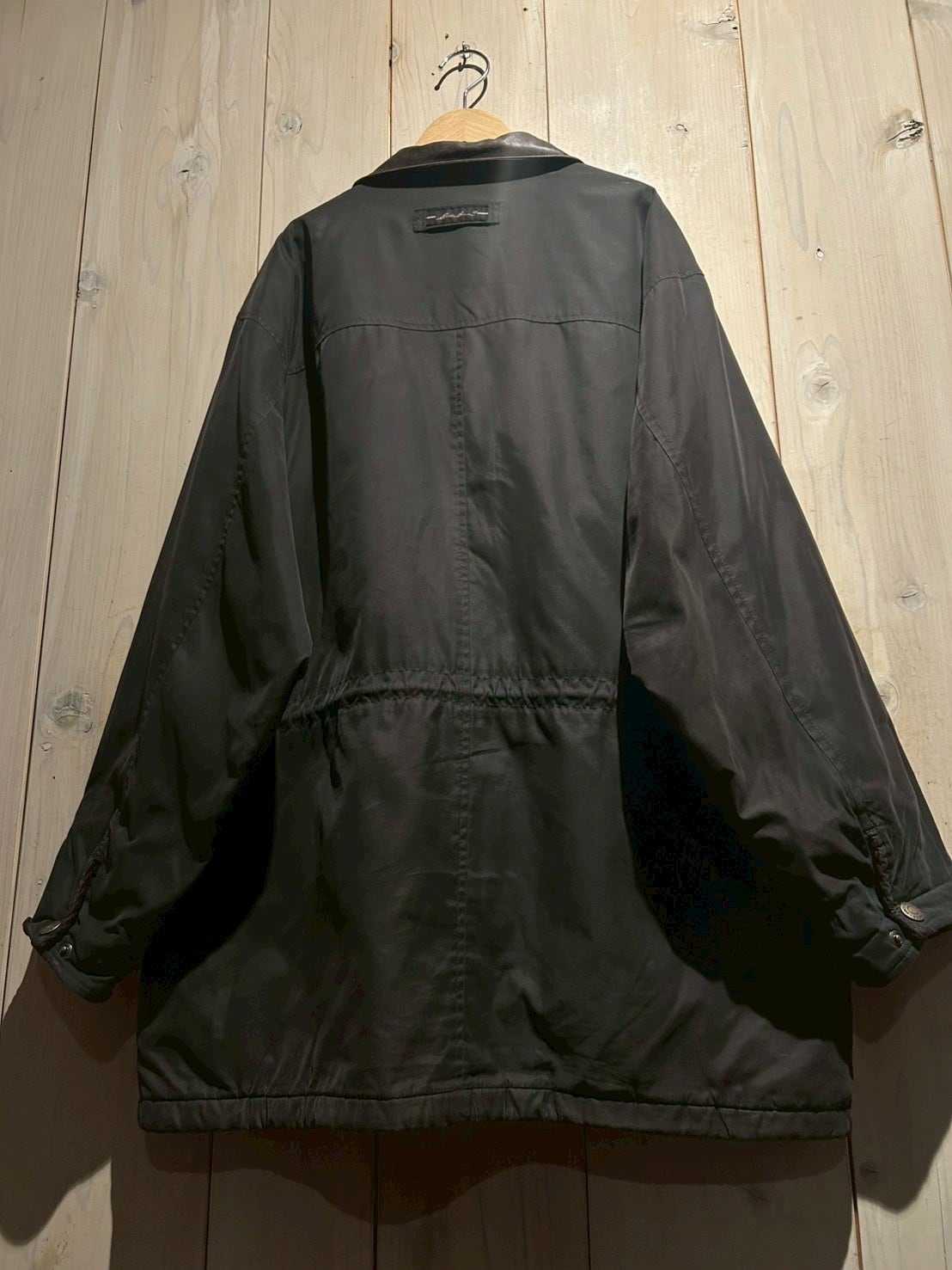 深みのあるブラックのボディに、襟には上質なブラウンラムレザーを切り替えた1着。