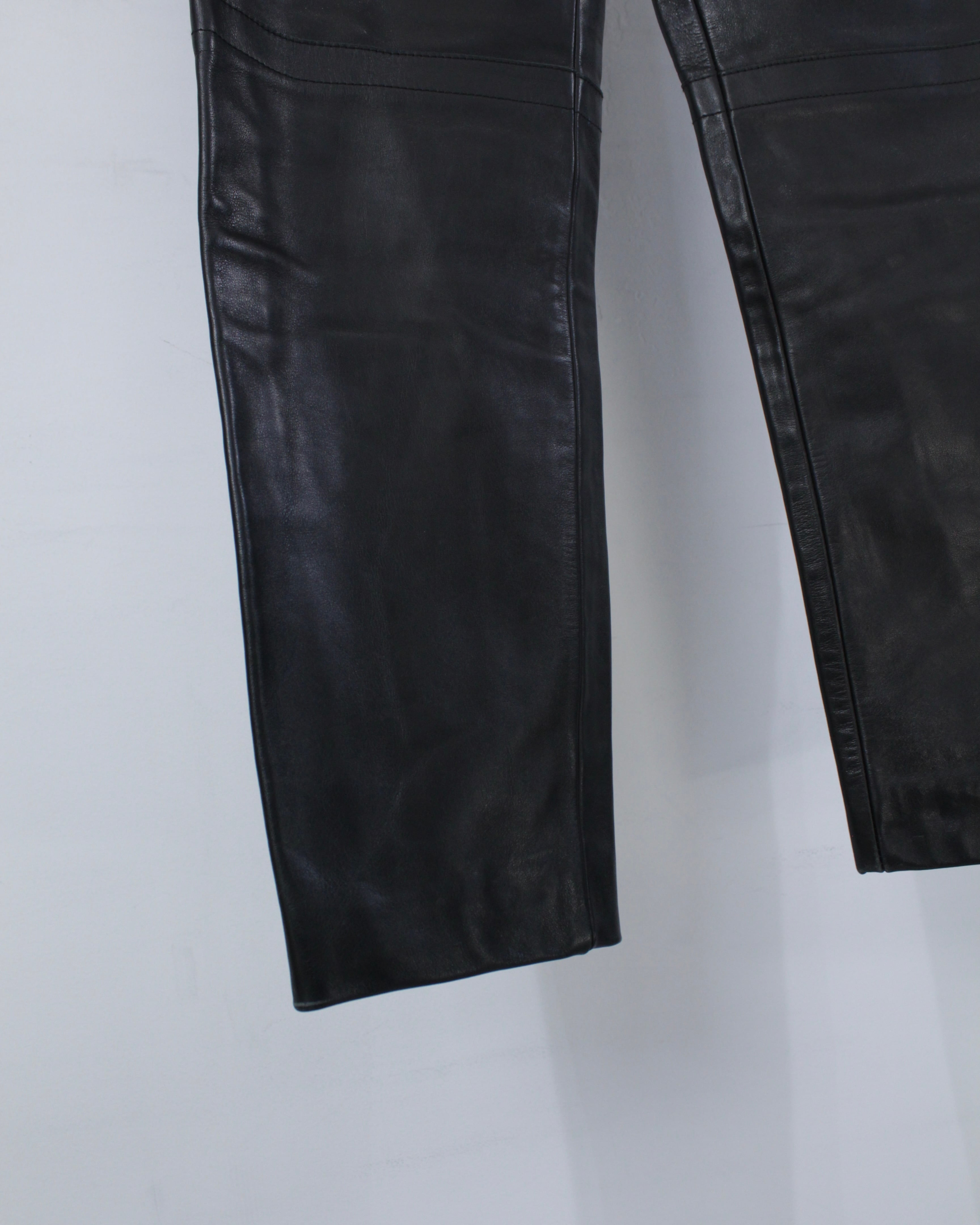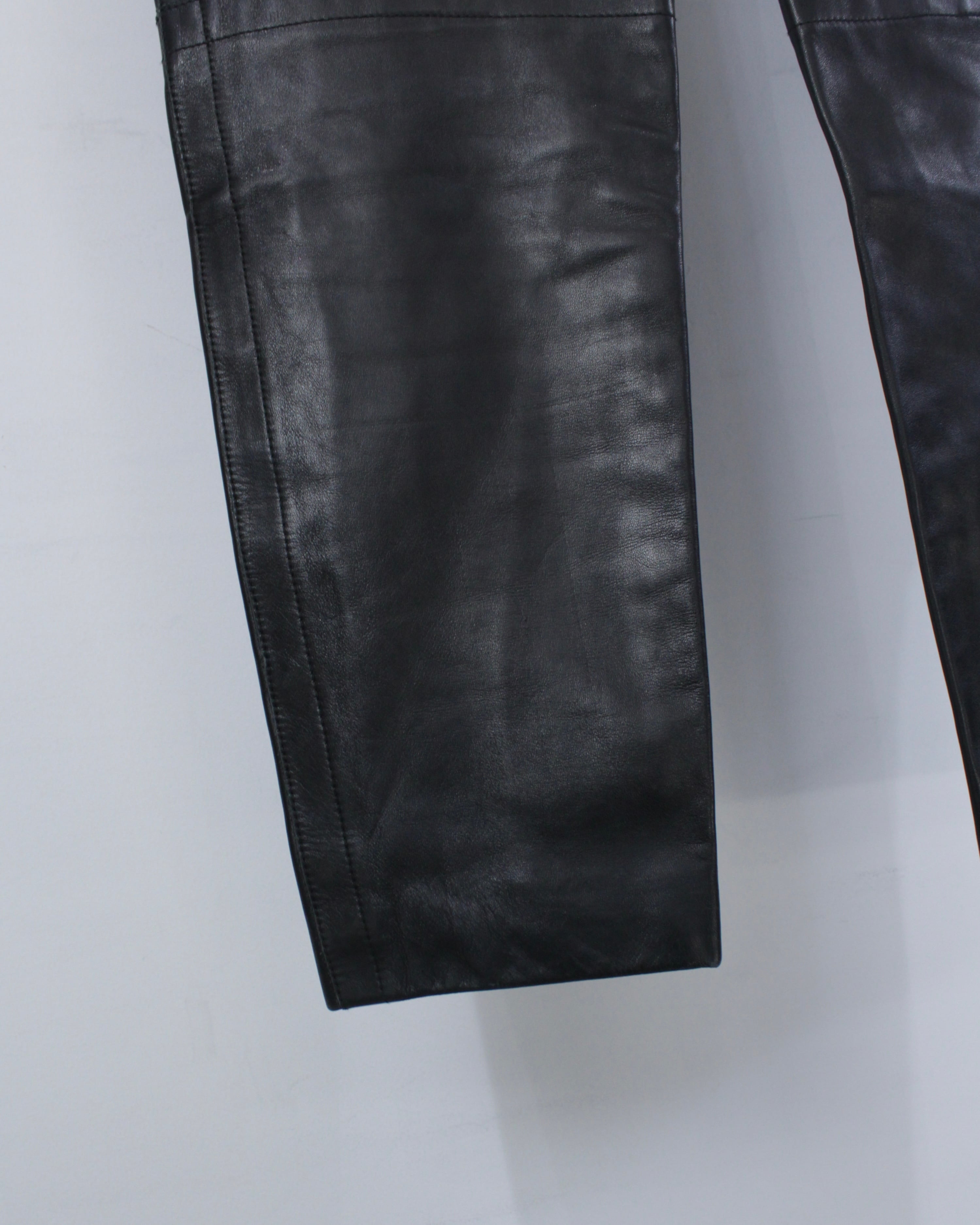 しっかりと脚に沿うテーパードシルエットは、レザーならではの重厚感を持ちながらも洗練されたラインを演出し、レザージャケットとのセットアップライクなスタイリングはもちろん、ニットやスウェットなどカジュアルなトップスと合わせても◎