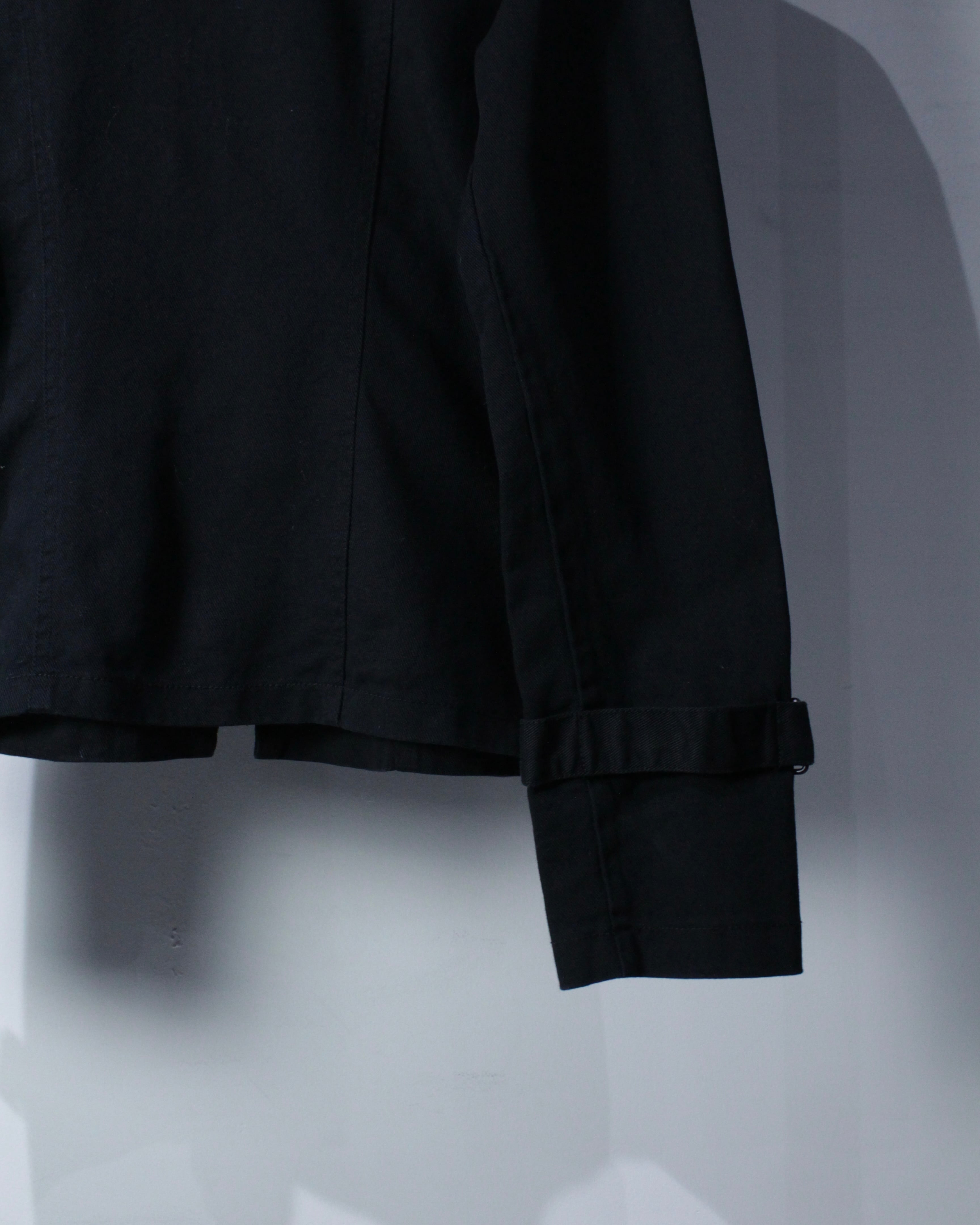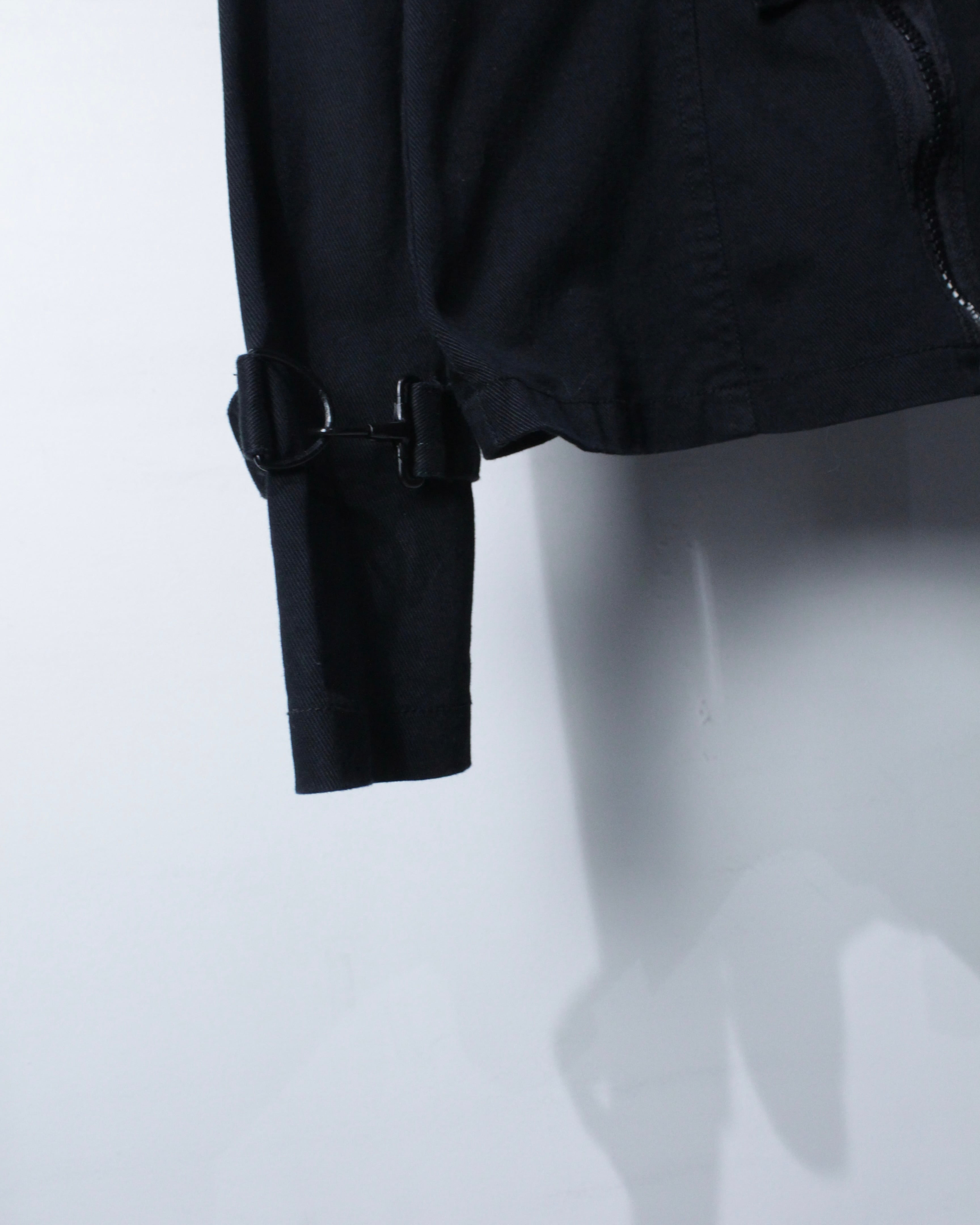 シルエットは程よく身体に沿うスマートなフォルムで、インナーとしてもライトアウターとしても着用可能。デニムやカーゴ、ボンテージパンツと合わせたパンクスタイルはもちろん、スラックスなどと合わせたモードなスタイリングにも◎
