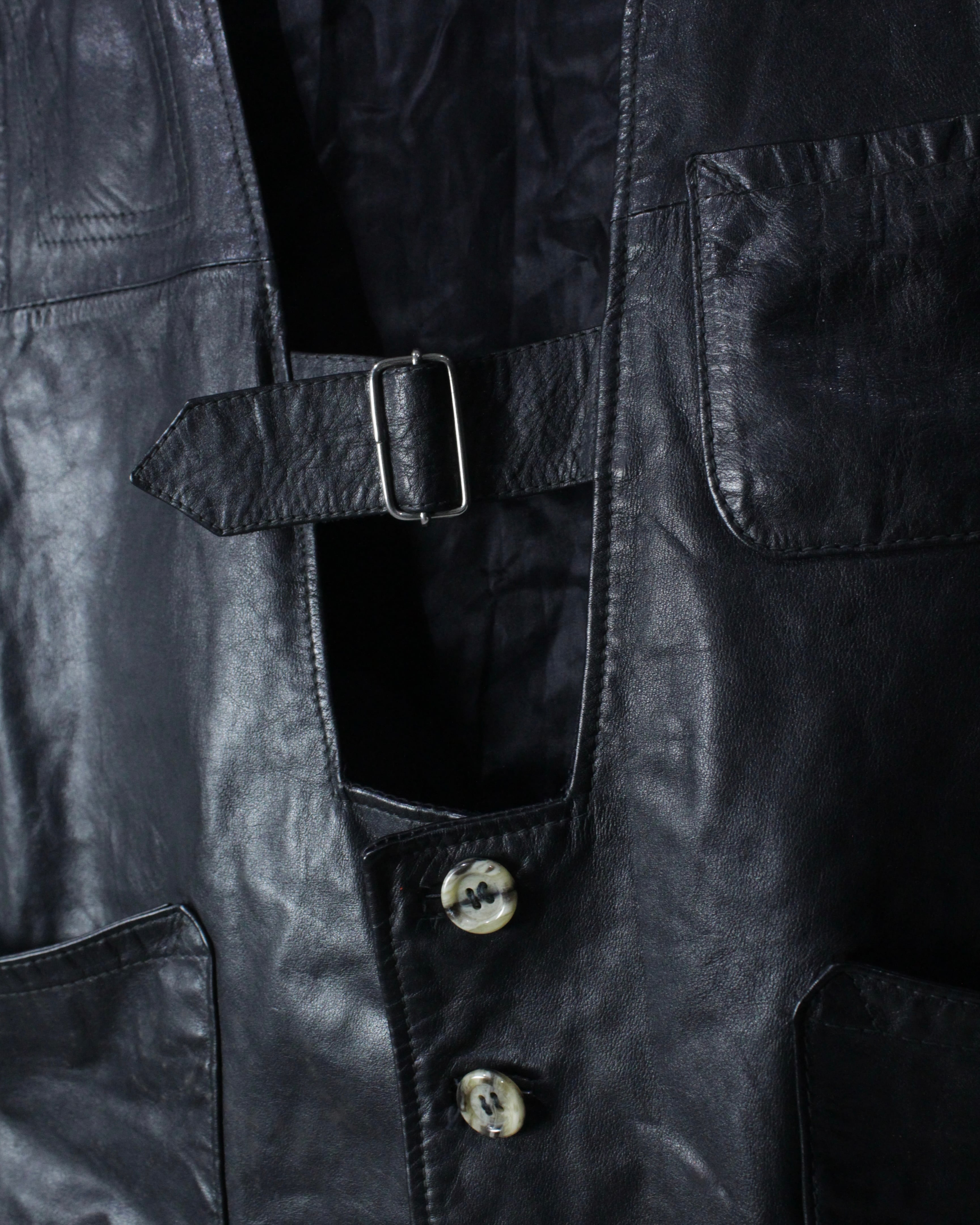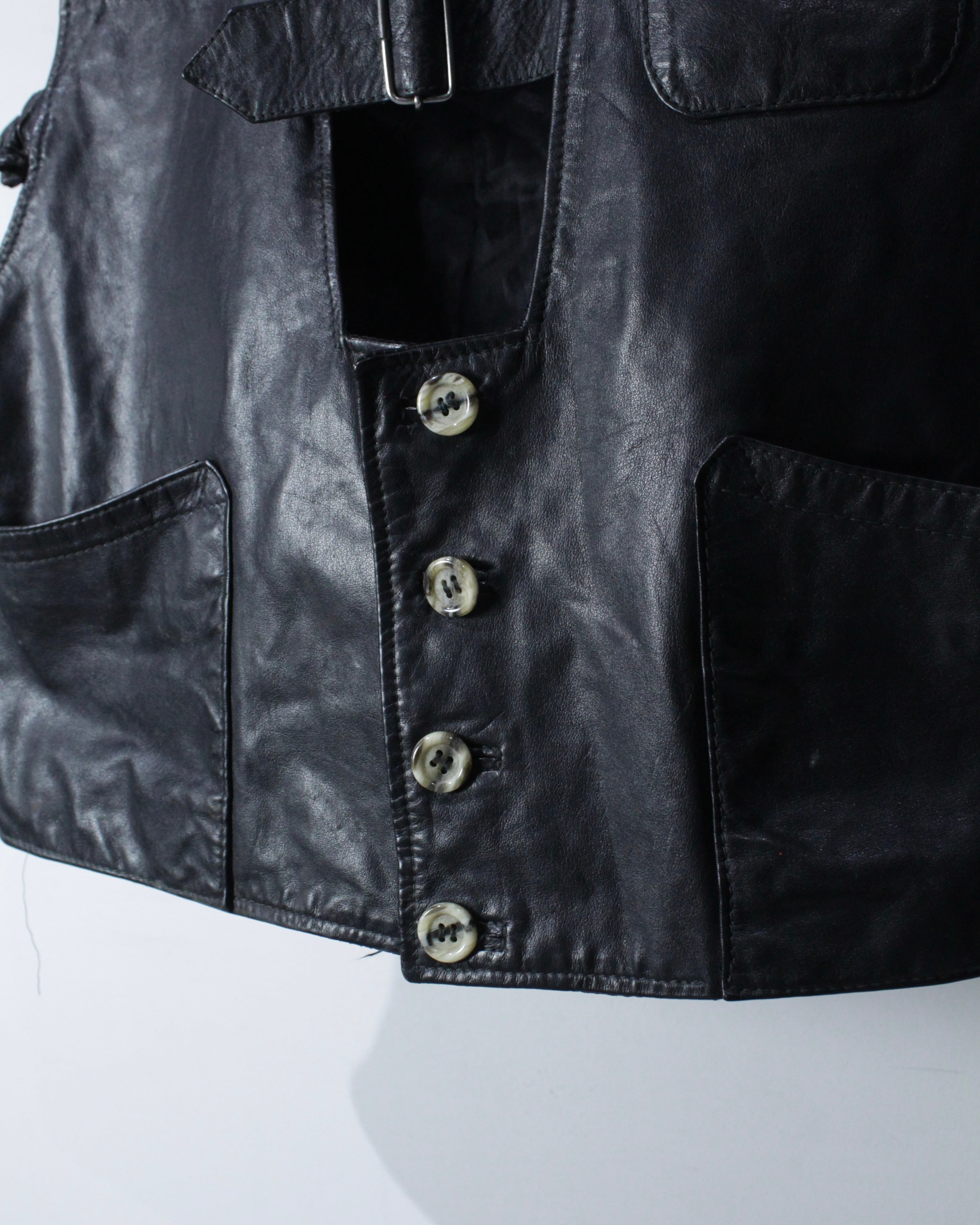 レザーの重厚感にギミック、汎用性、ファッション性を併せ持ったレザーベストの逸品です。