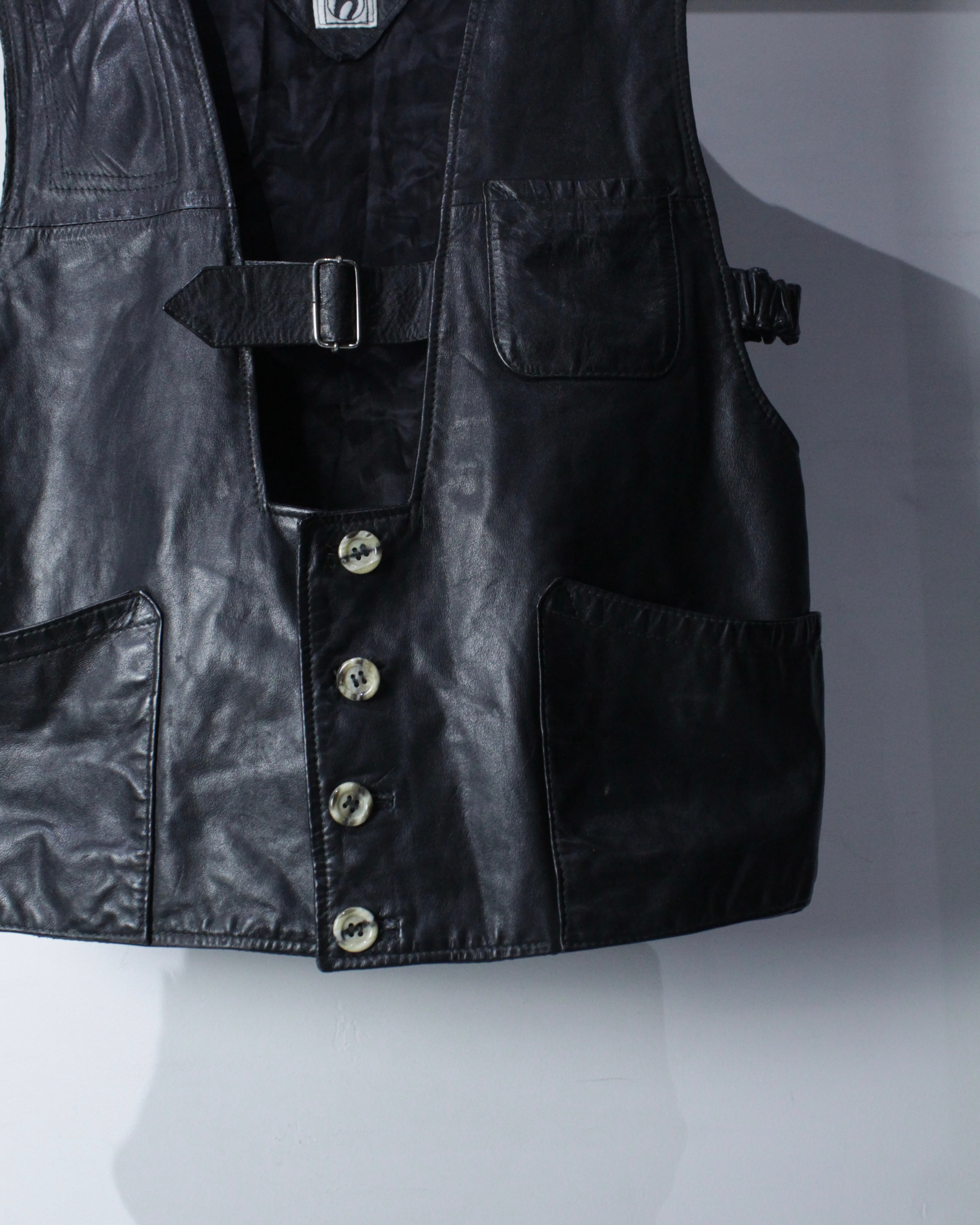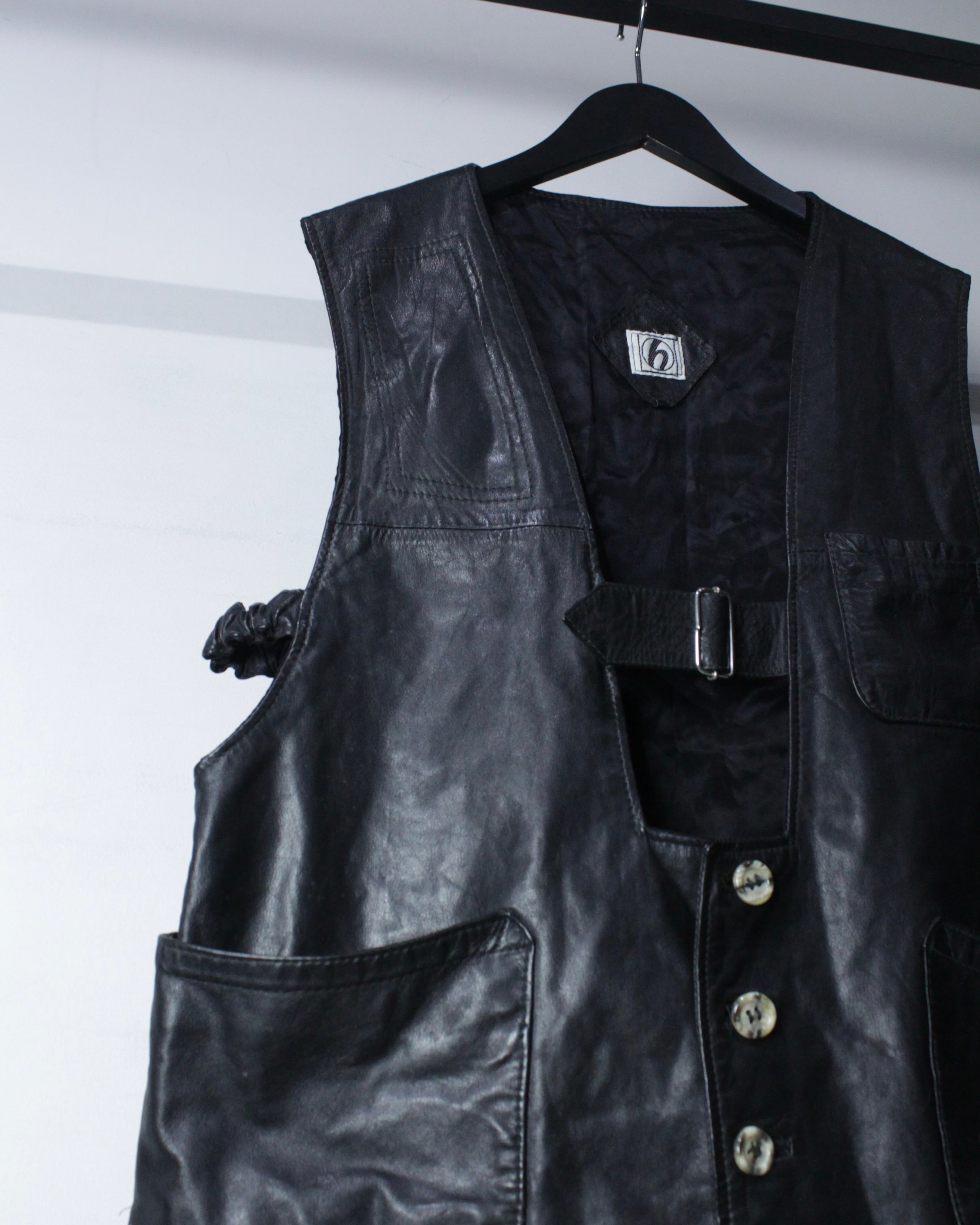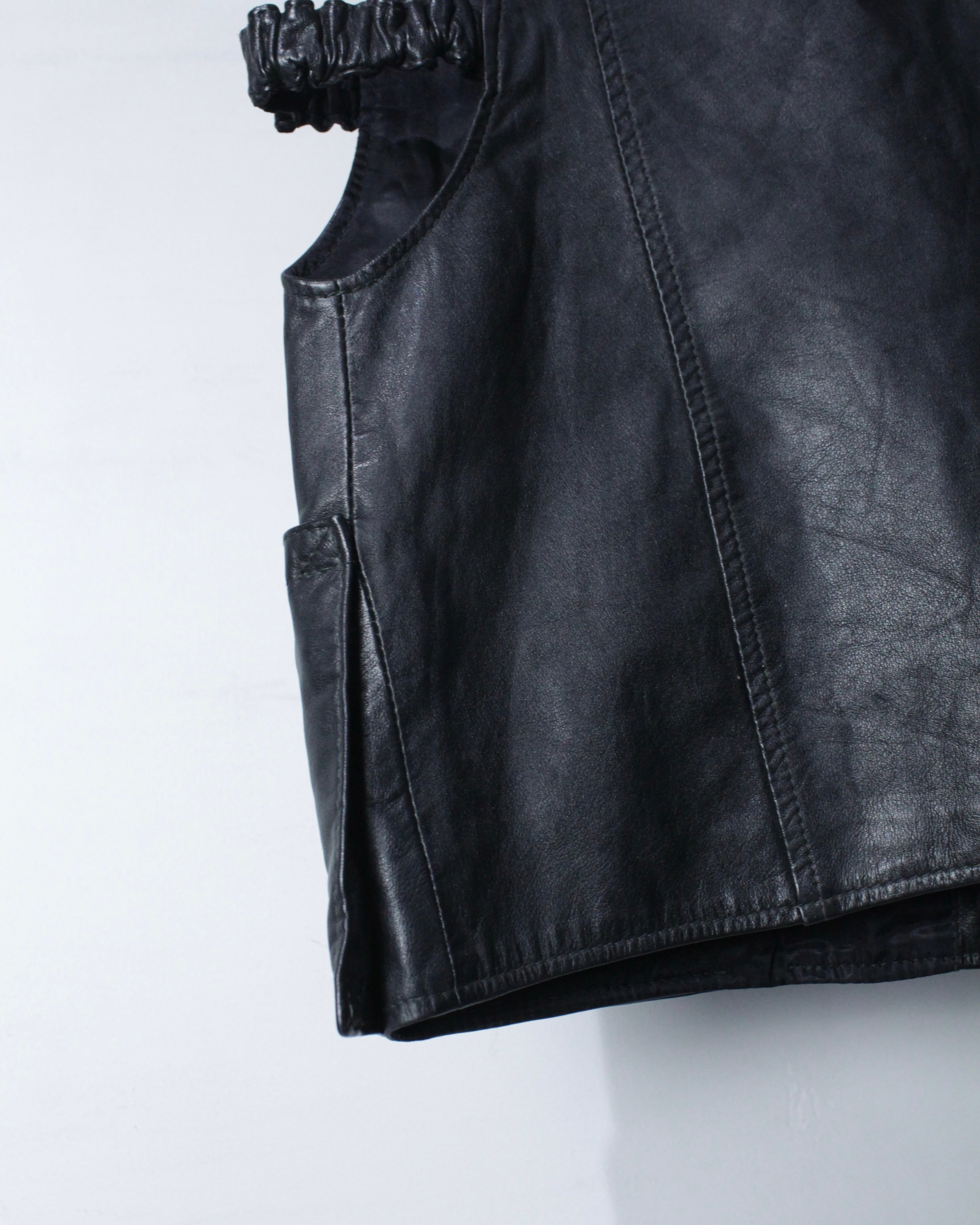 上質なブラックレザーを用いた、80's ユーロヴィンテージのレザーベストをご紹介いたします。
