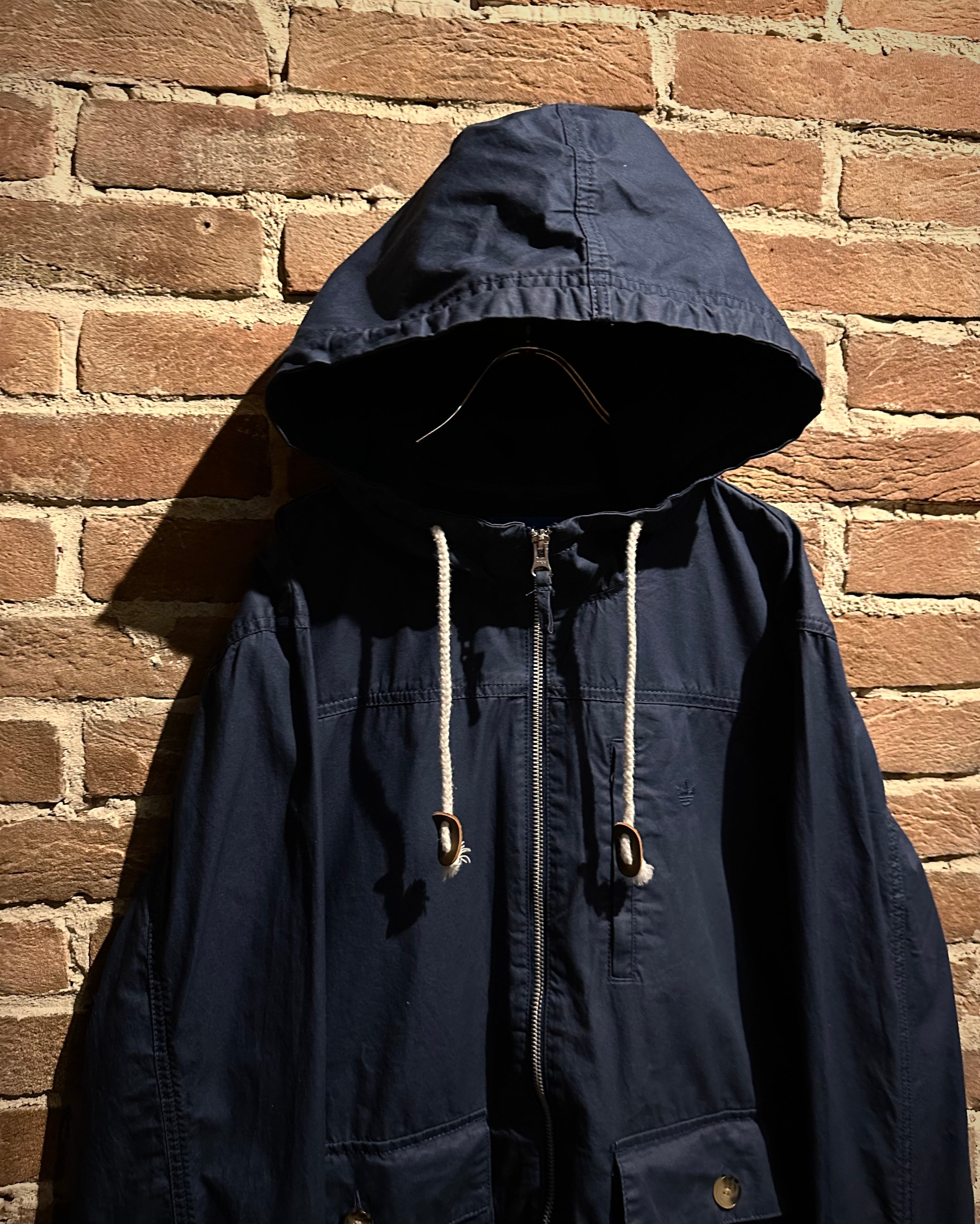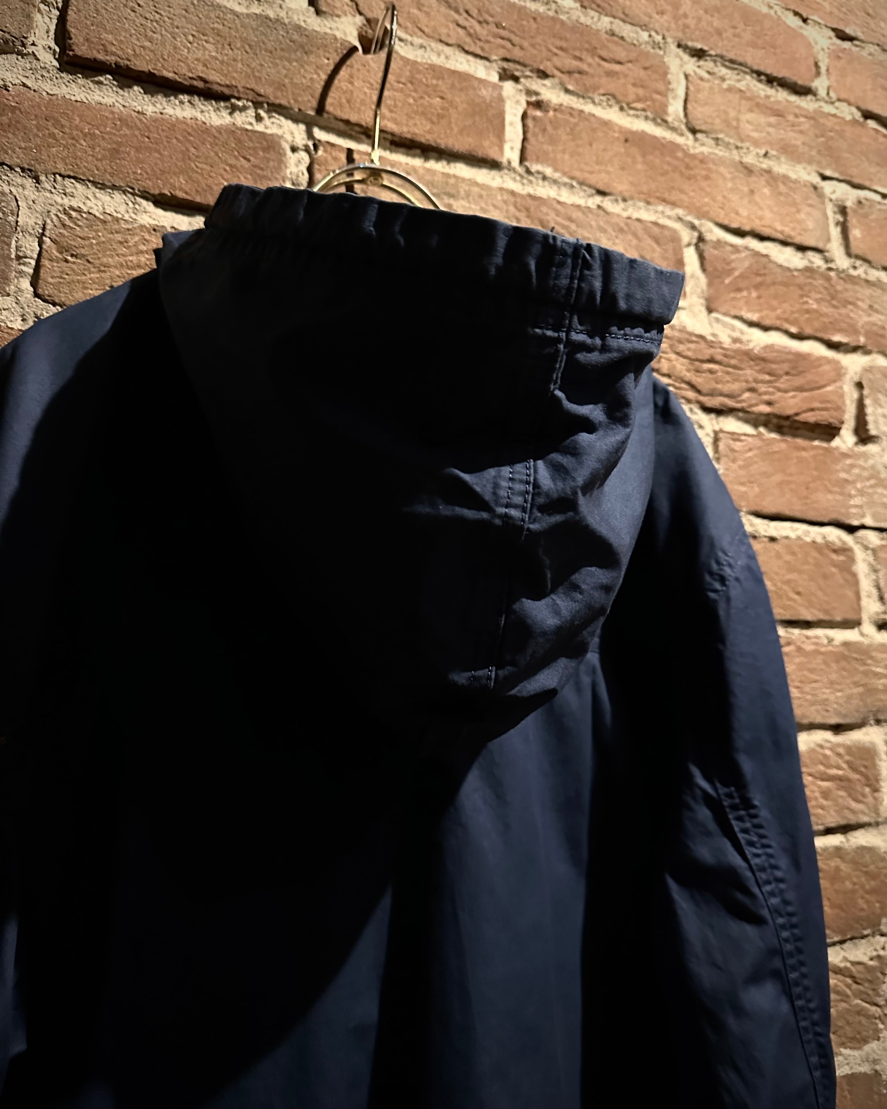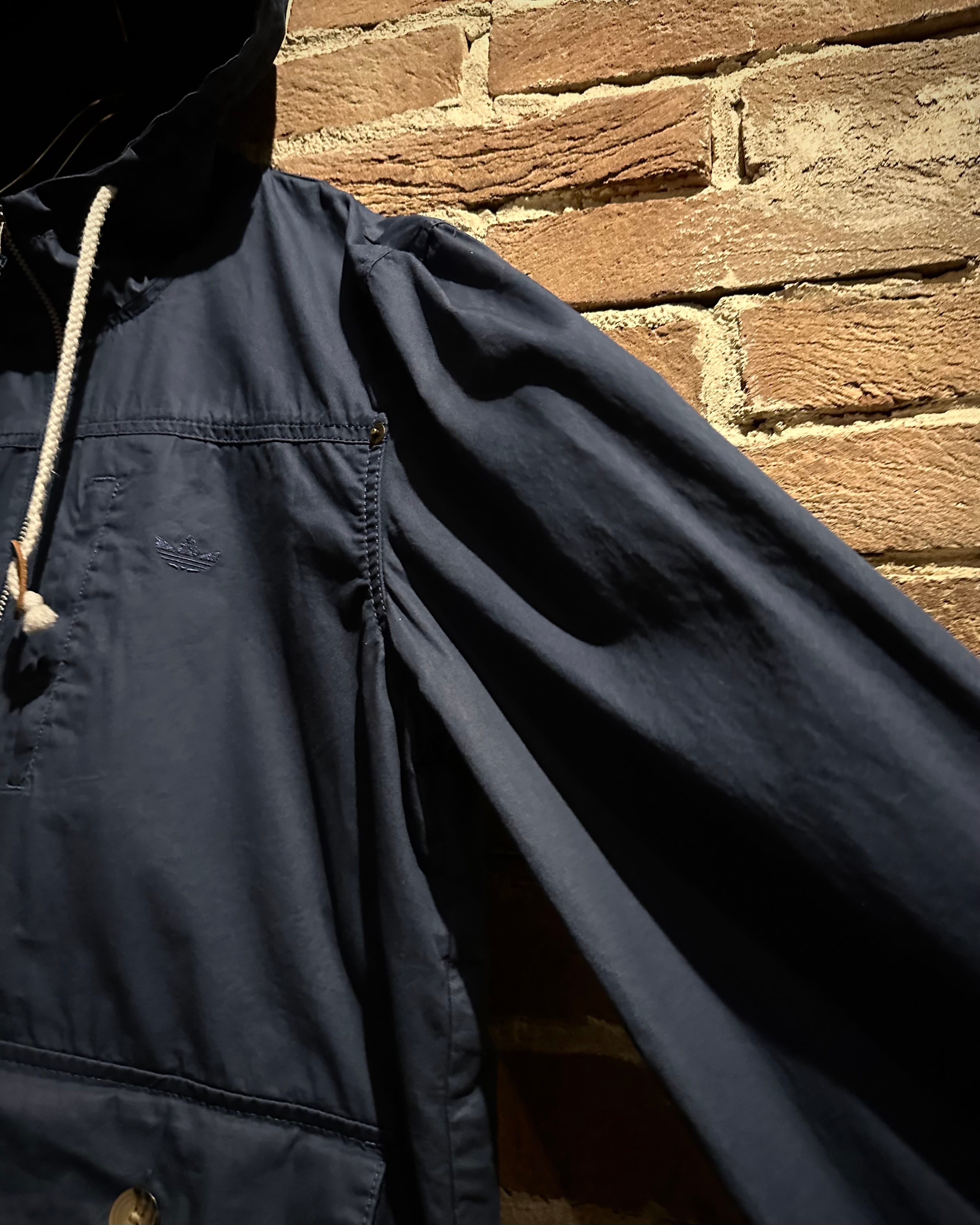 胸元にはさりげなくトレフォイルロゴを刺繍で配置。主張を抑えたミニマルなデザインの中で、ブランドアイコンが程よいアクセントとなっています。フロントにはフラップ付きポケットを備え、収納力とデザイン性を両立。フードにはドローコードが配され、シルエット調整や防風性を高めるディテールもしっかりと搭載されています。