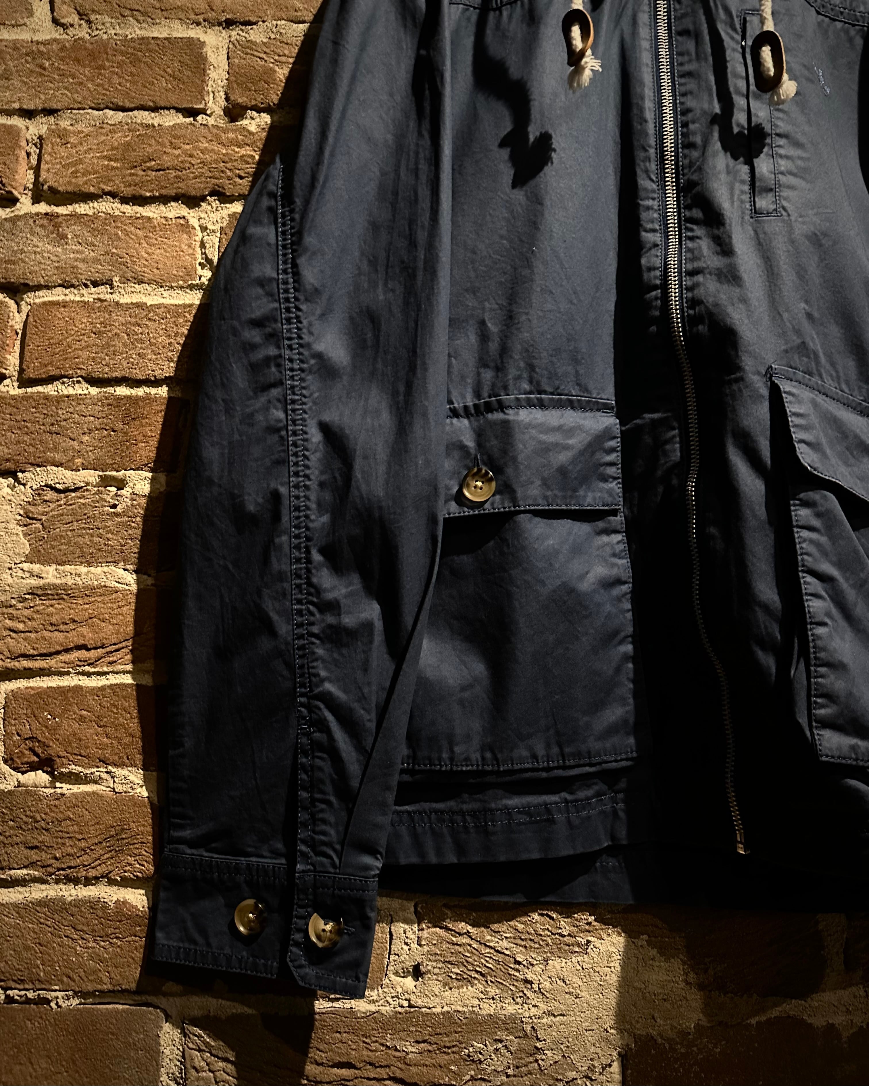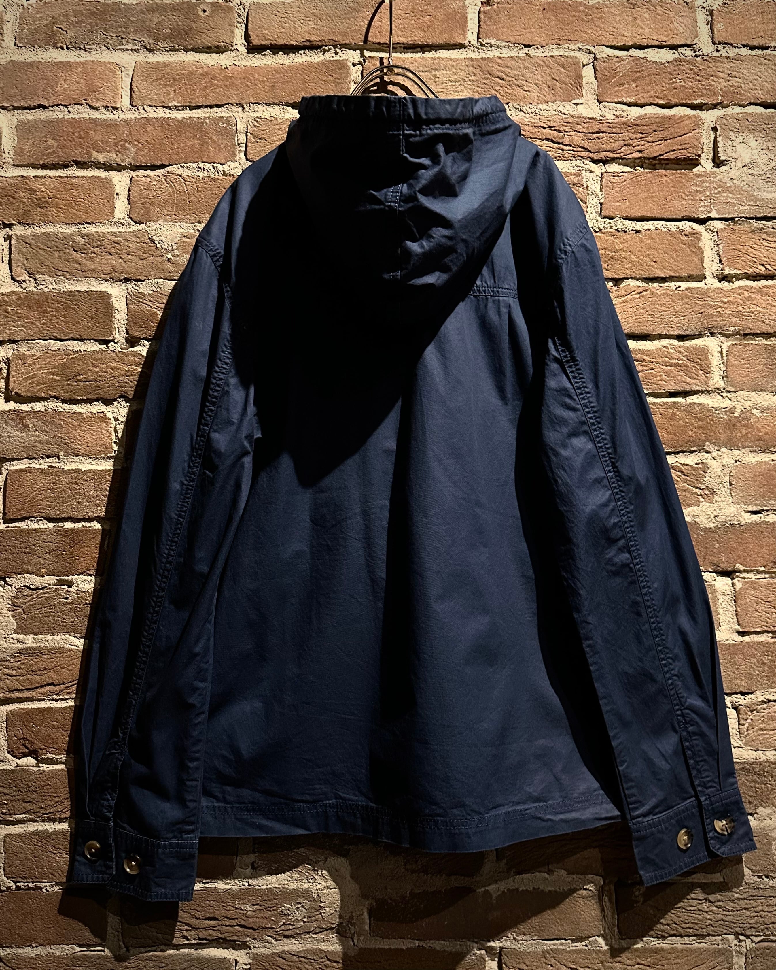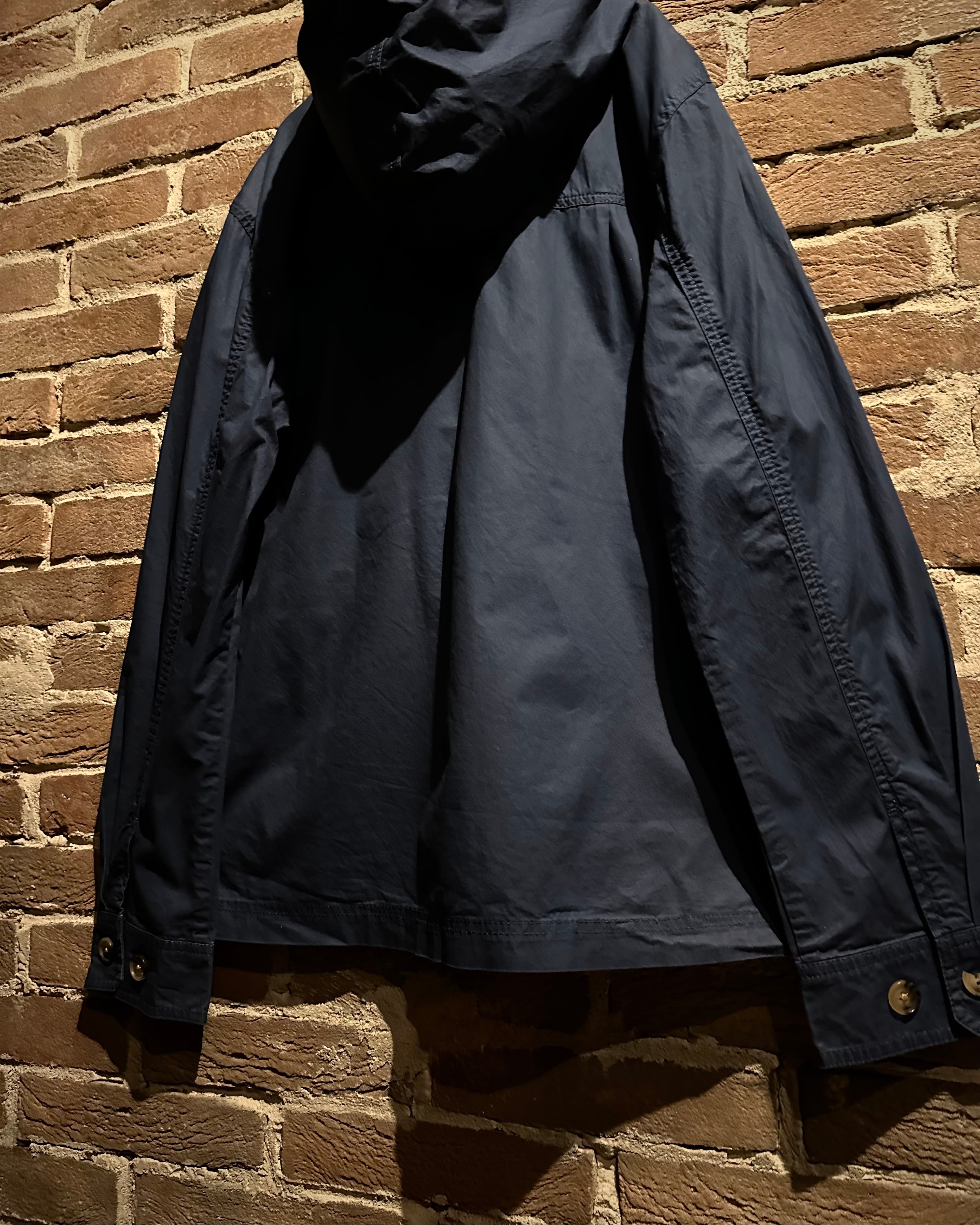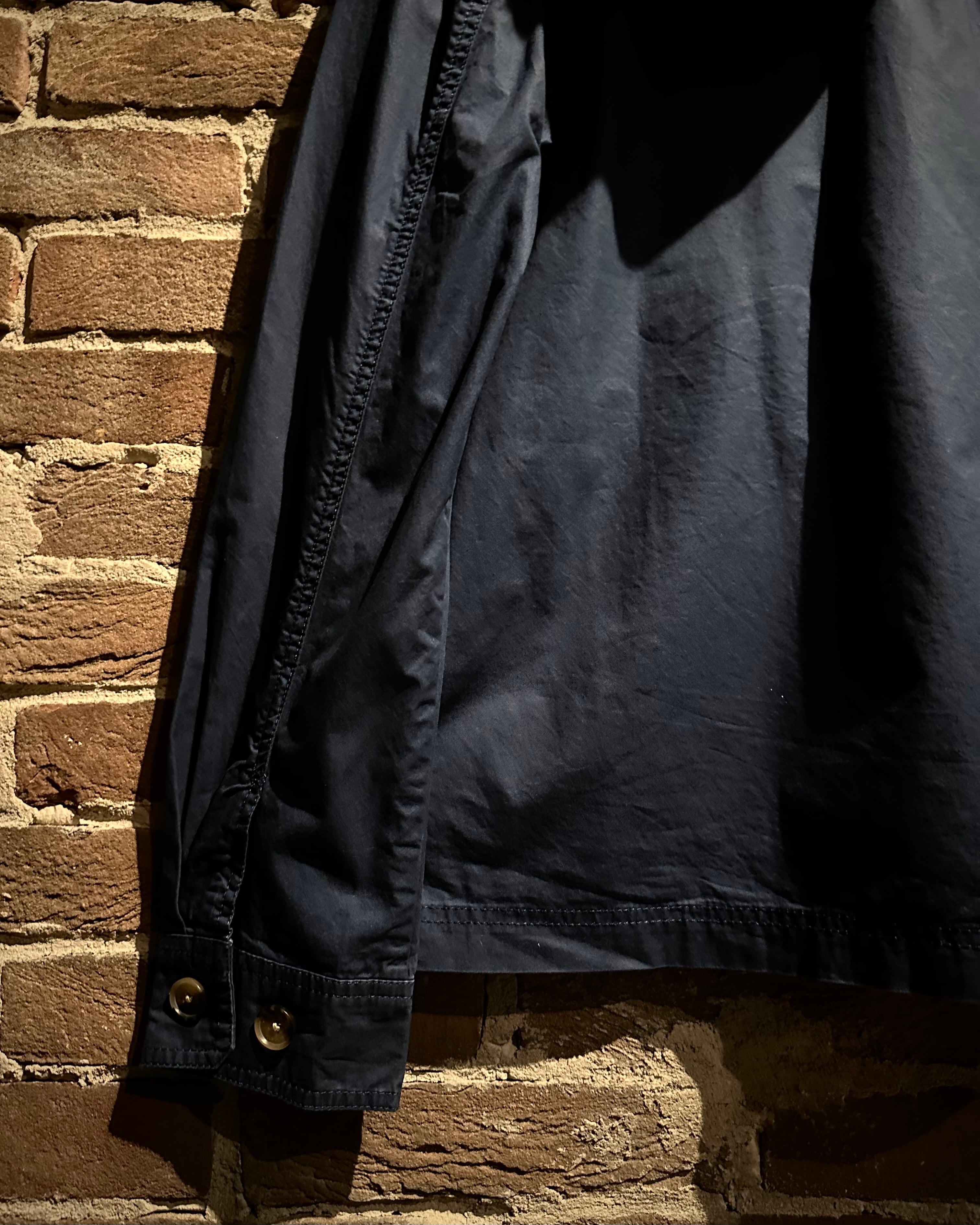身幅にゆとりを持たせたリラックス感のあるシルエットで、肩から自然に落ちるラインが特徴的。インナーにスウェットやニットを仕込んだレイヤードスタイルにも対応し、デニムやカーゴ、スラックスなど幅広いボトムスと相性良く馴染みます。