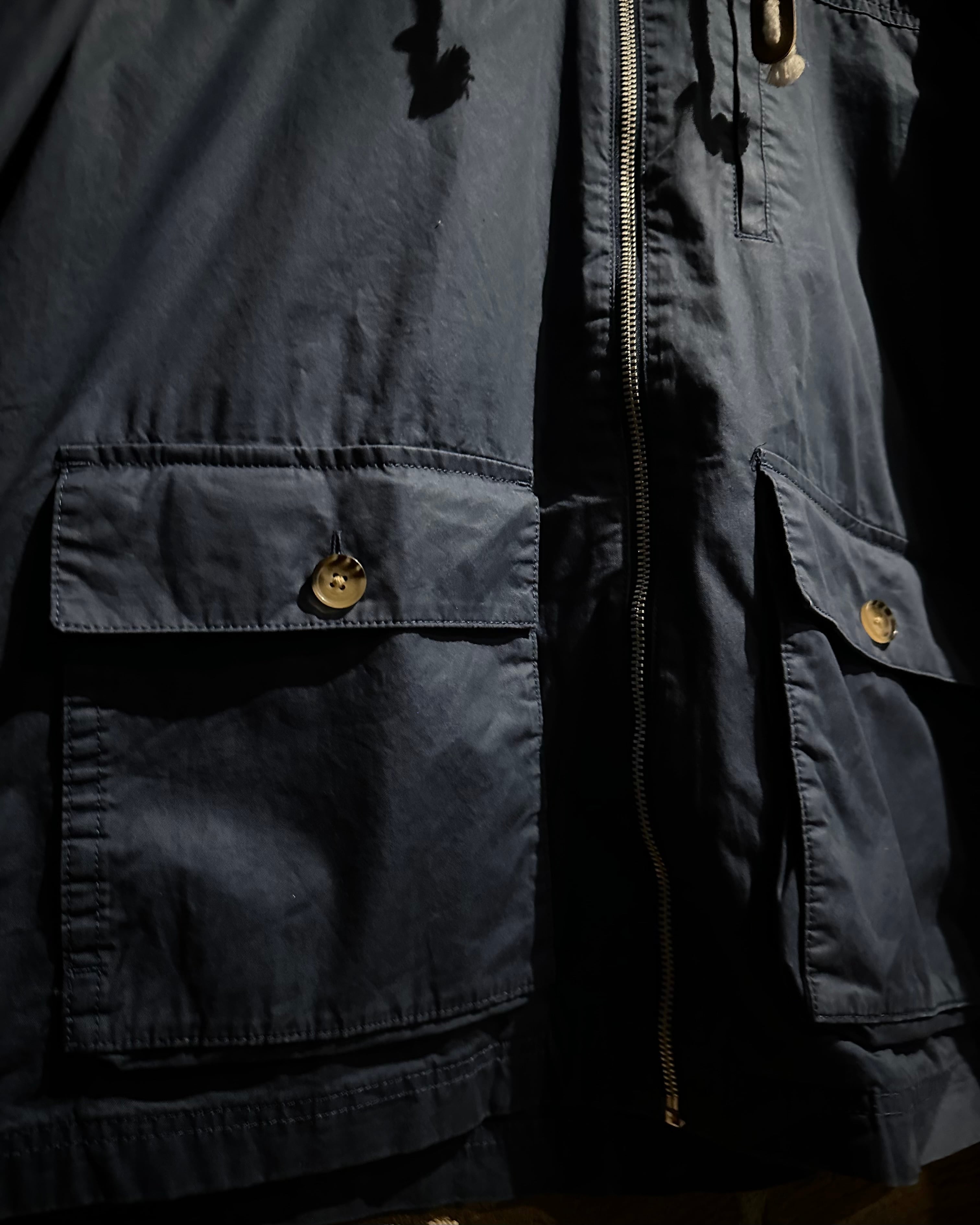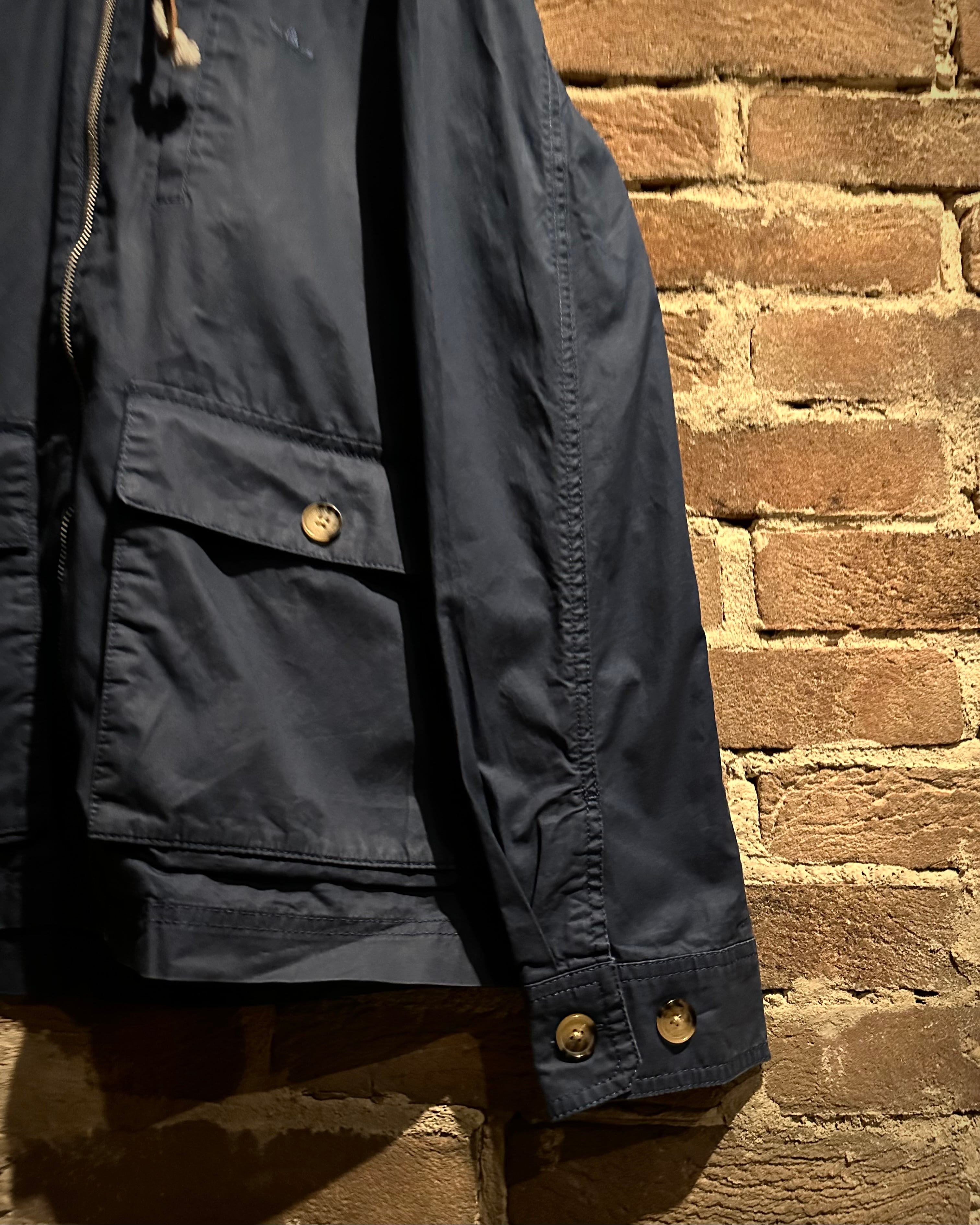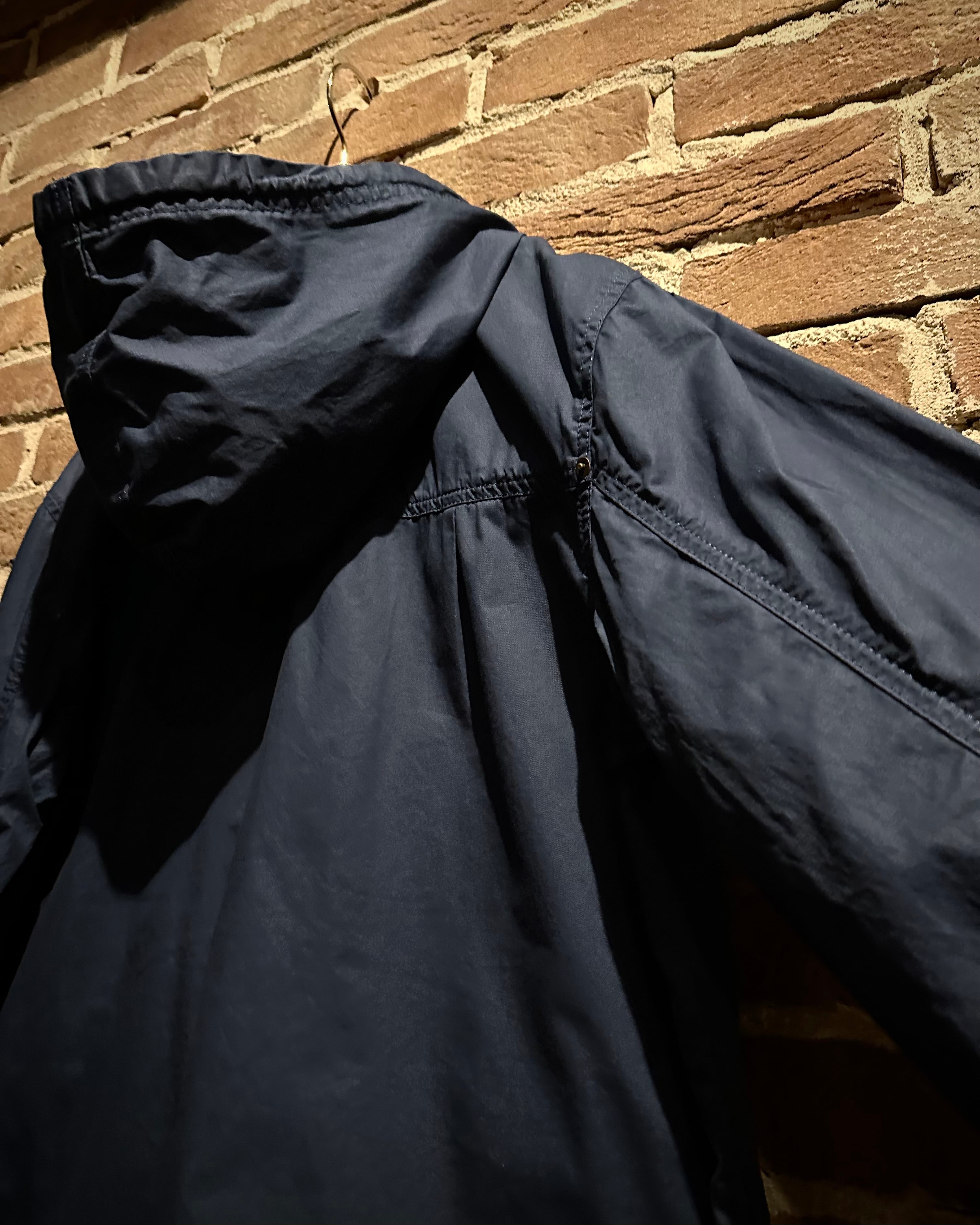 ボディには軽やかで程よいハリ感のある生地を採用。マットな質感のネイビーカラーが落ち着いた雰囲気を演出し、シンプルながらも洗練された印象を与えてくれる仕上がりです。