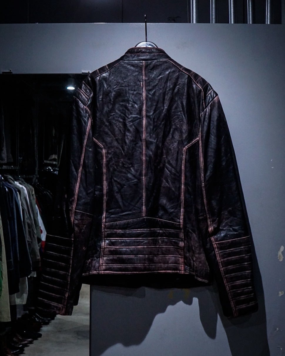 デザインアプローチ、ディテール、ファッション性が合わさった、当店らしいレーシングタイプのレザージャケットです。