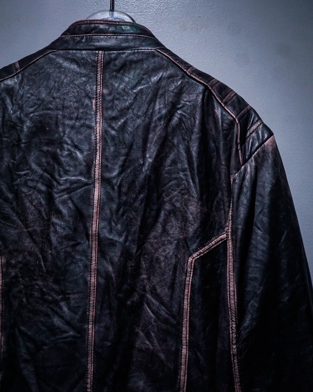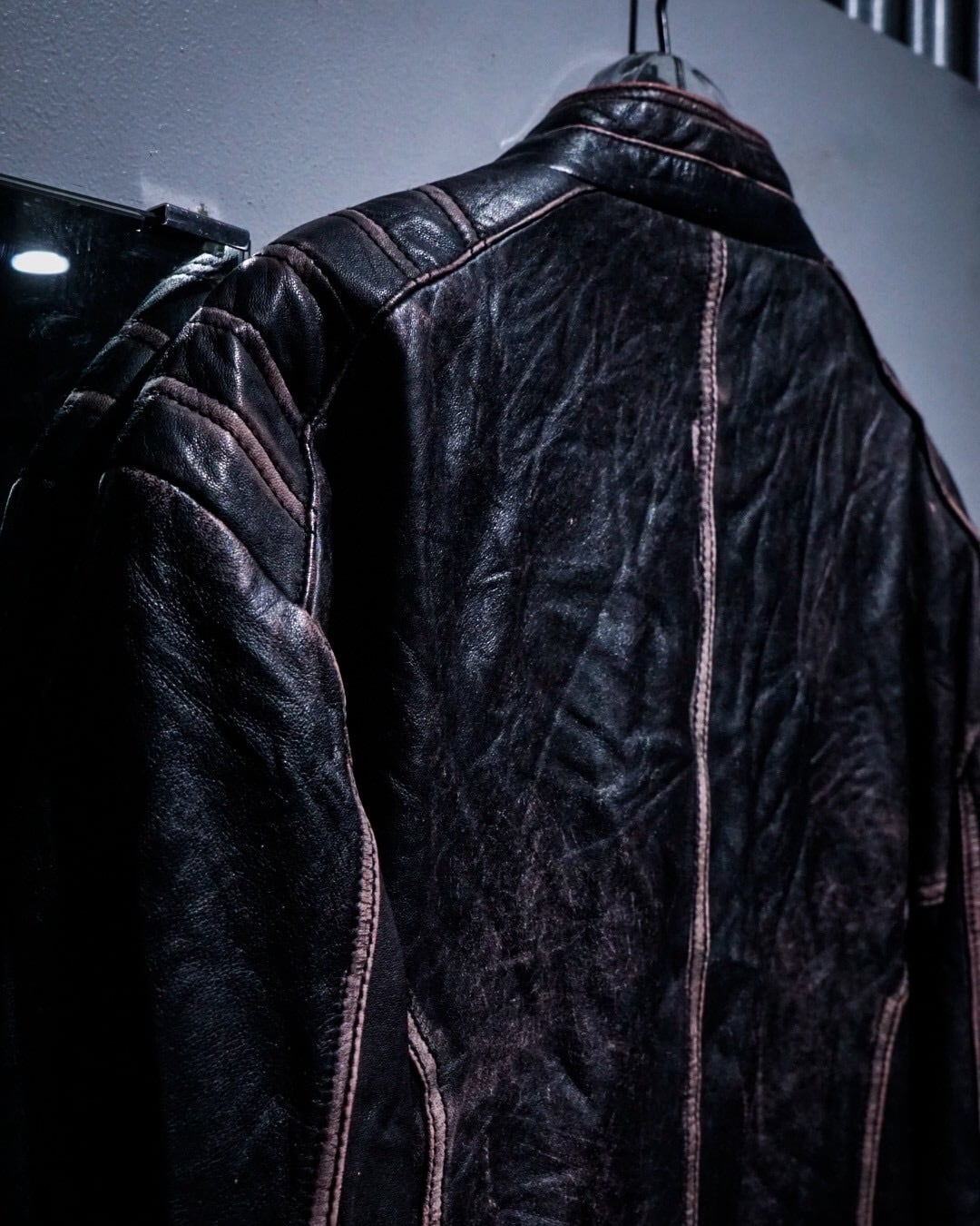 独特な表情と立体的なパターンワークが際立つ、レーシングタイプのレザージャケットをご紹介いたします。
