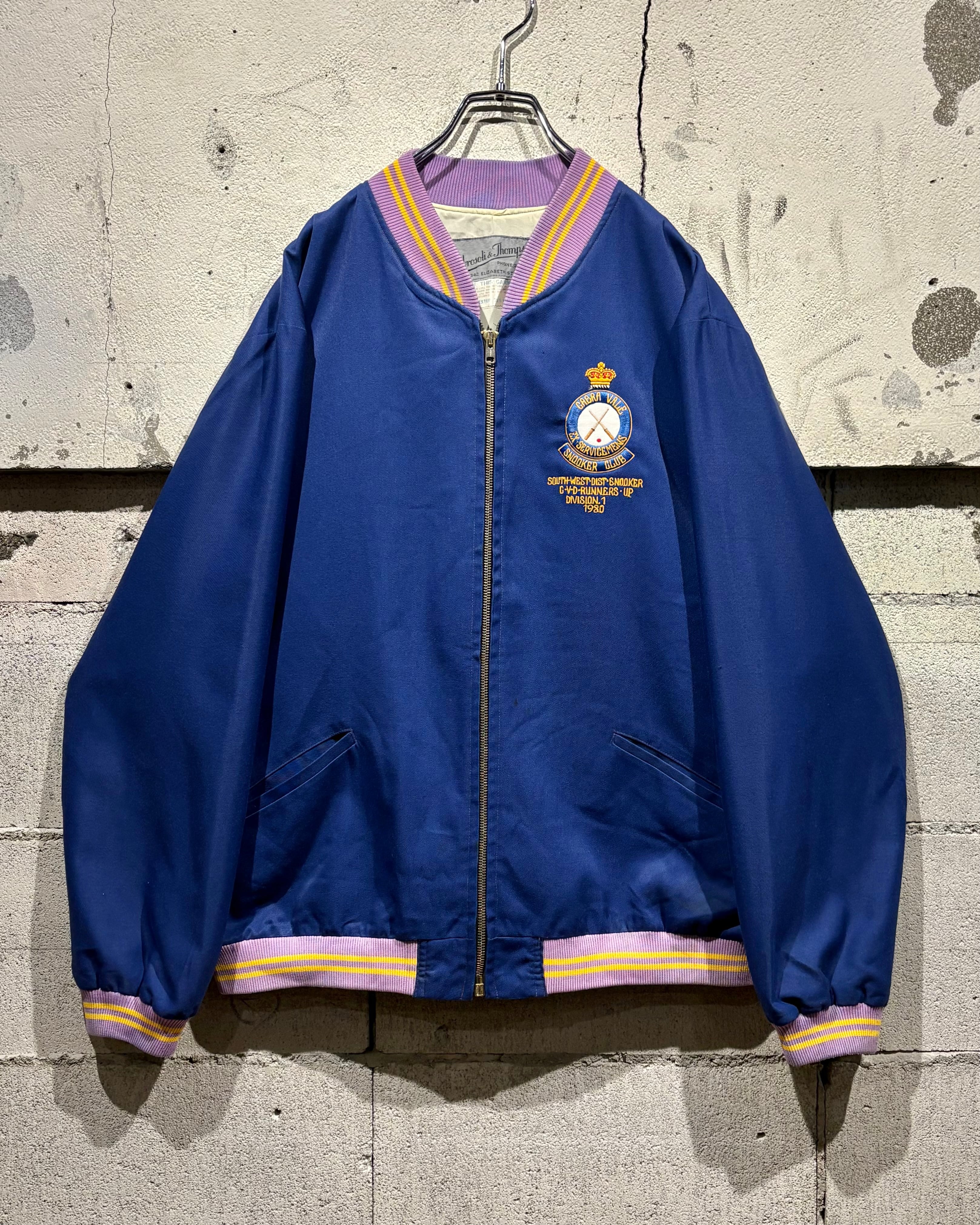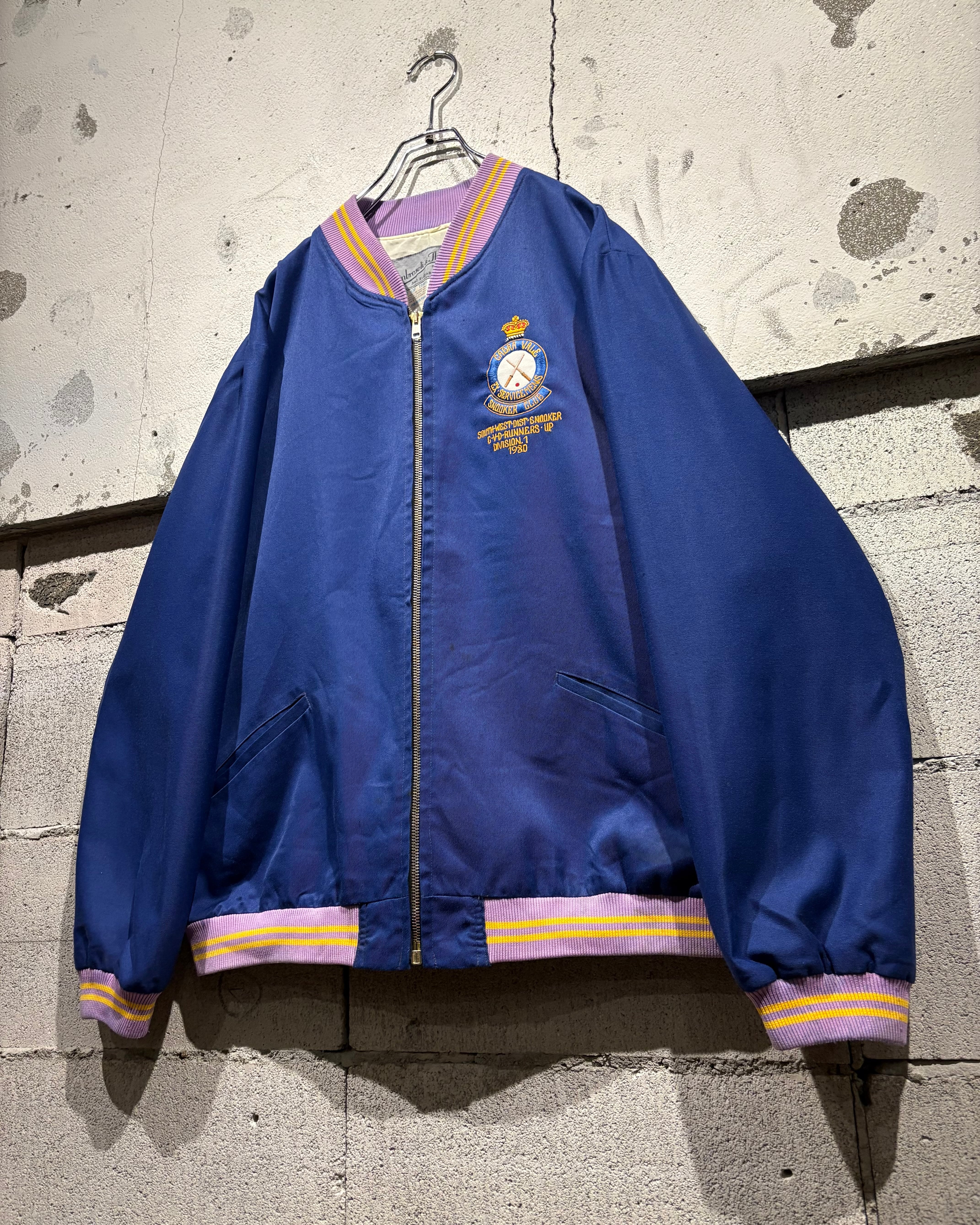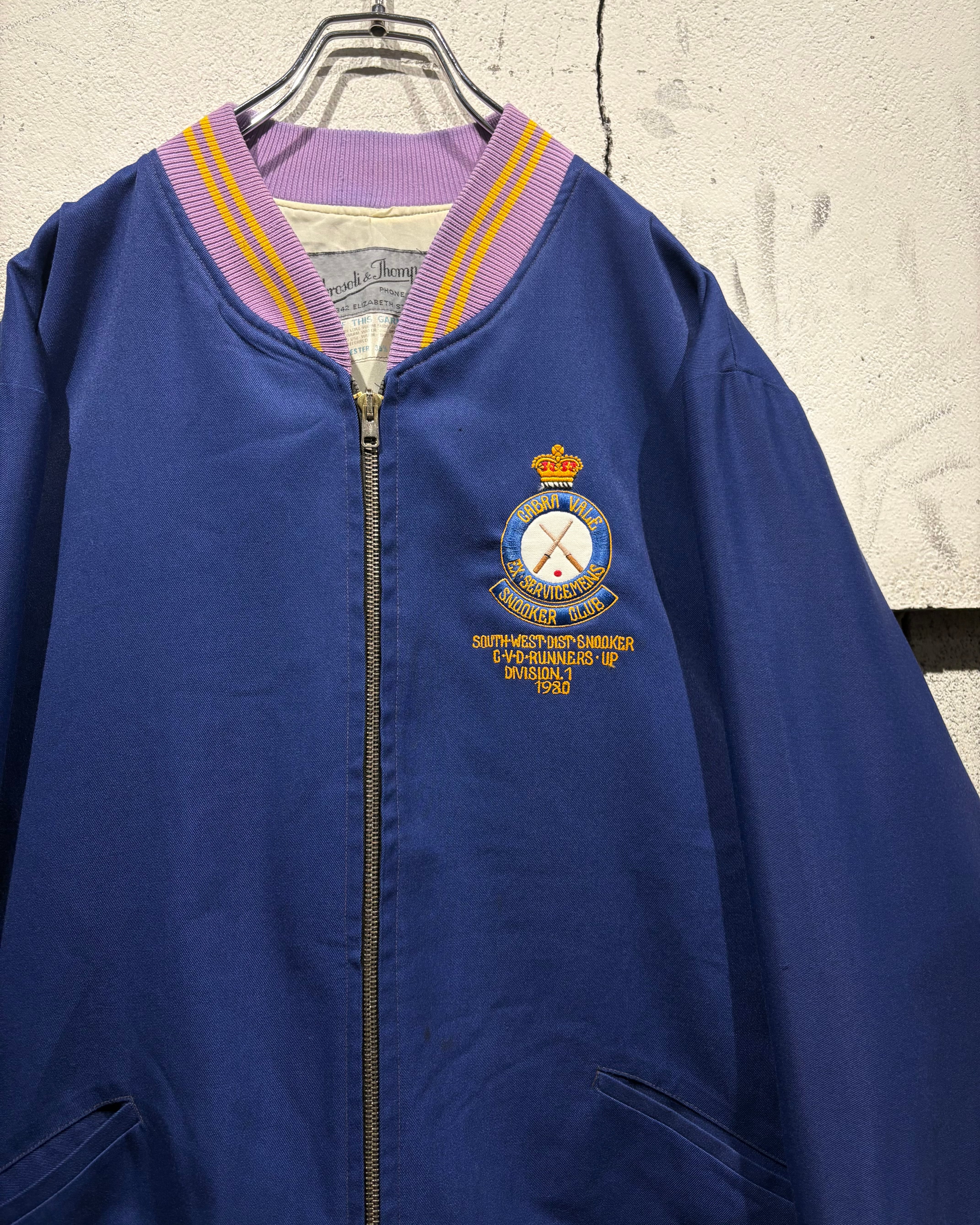 胸元にはクラウンモチーフを掲げた80'sの刺繍を配置。“CABRA VALE EX-SERVICEMEN’S SNOOKER CLUB”の文字とクロスしたキューのデザインが施されており、クラブジャケットらしいワンポイントアクセントも◎