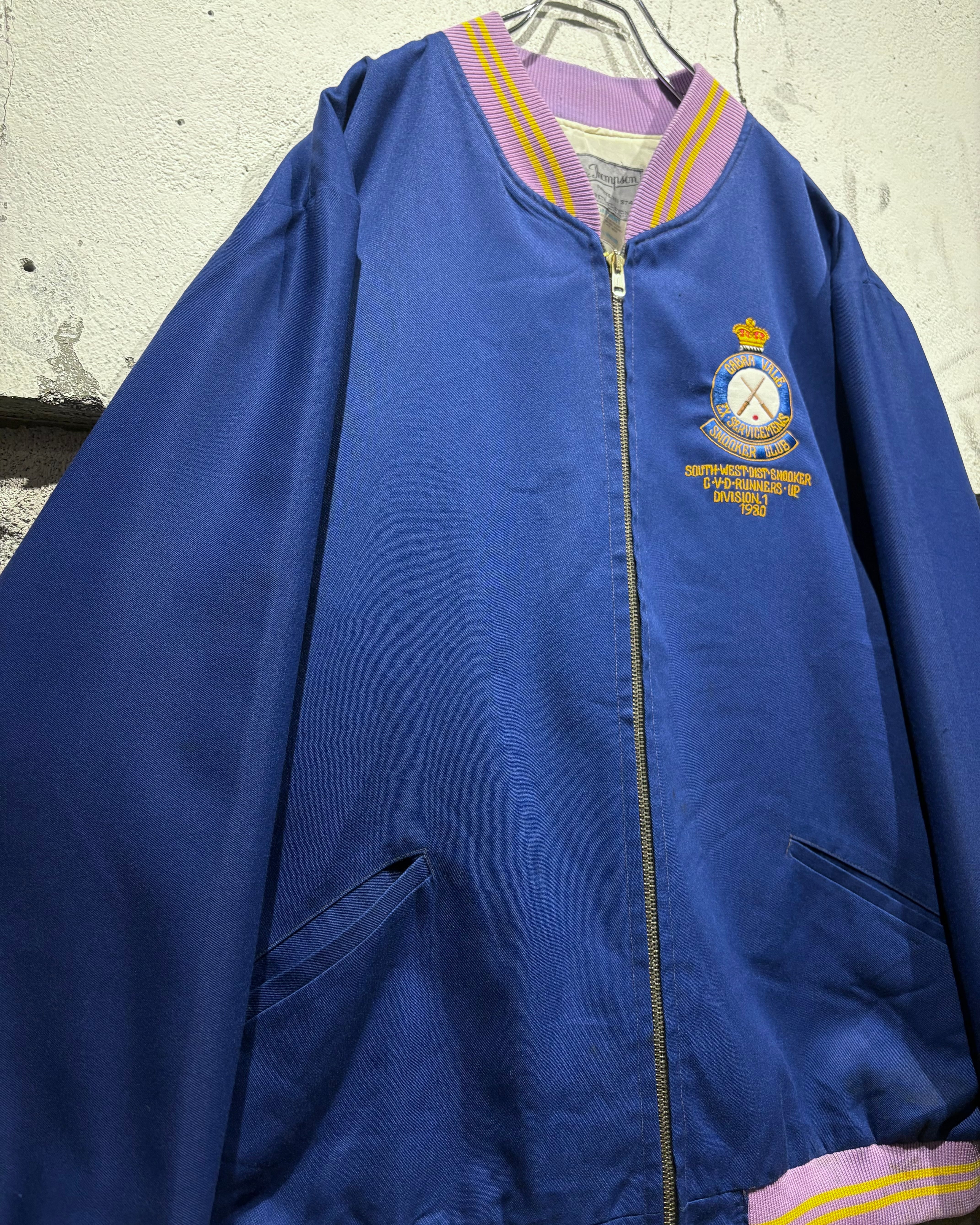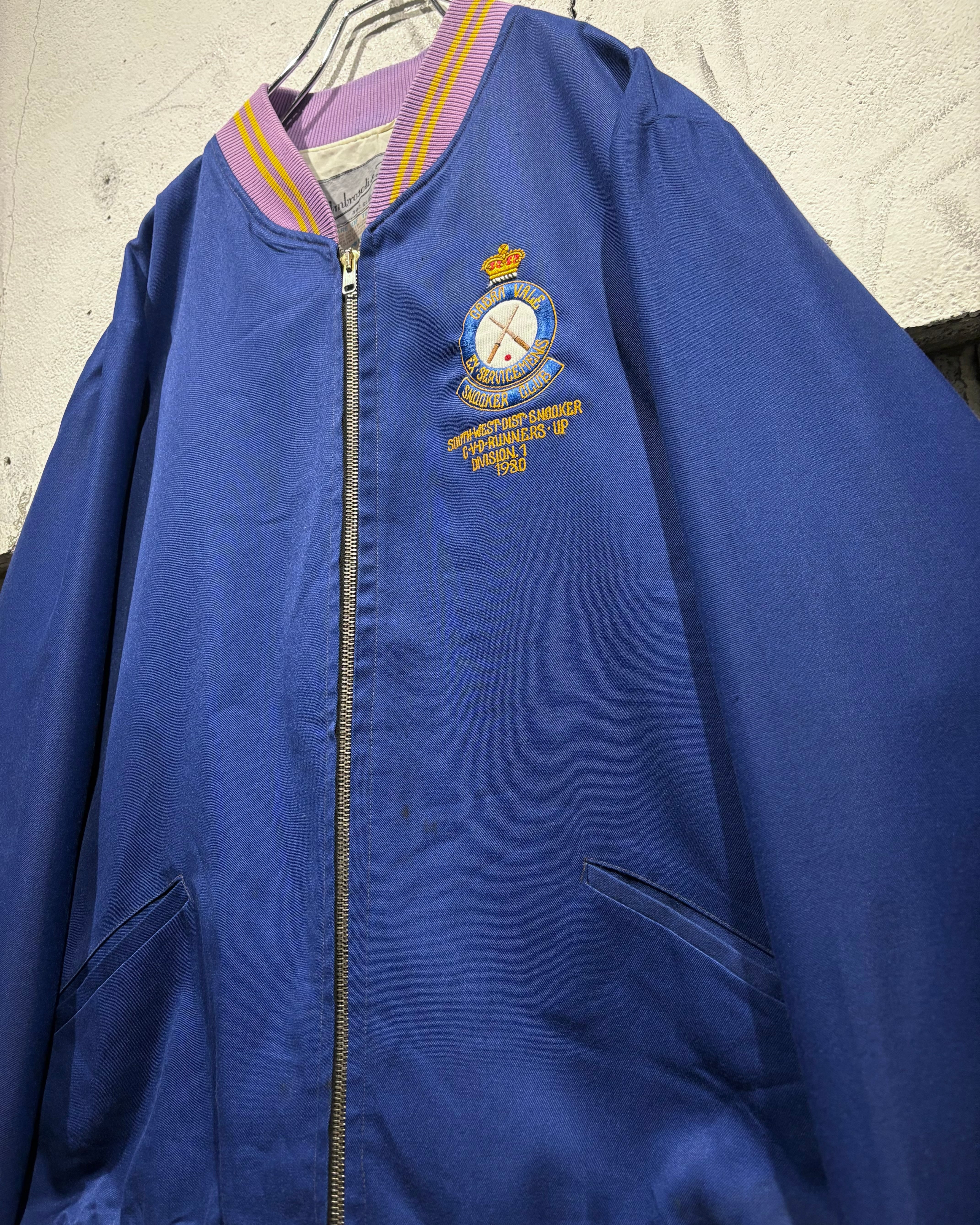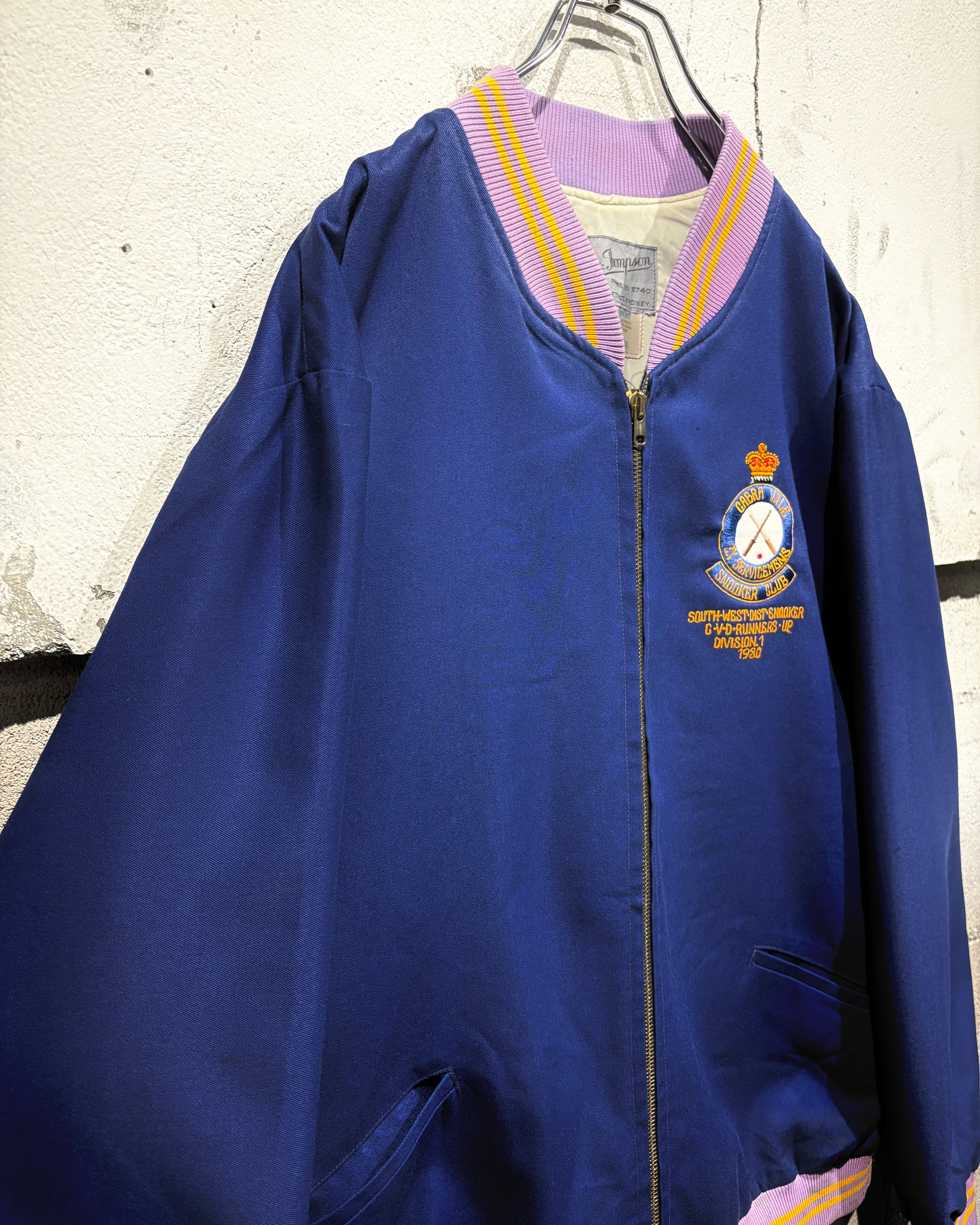 胸元にはクラウンモチーフを掲げた80'sの刺繍を配置。“CABRA VALE EX-SERVICEMEN’S SNOOKER CLUB”の文字とクロスしたキューのデザインが施されており、クラブジャケットらしいワンポイントアクセントも◎