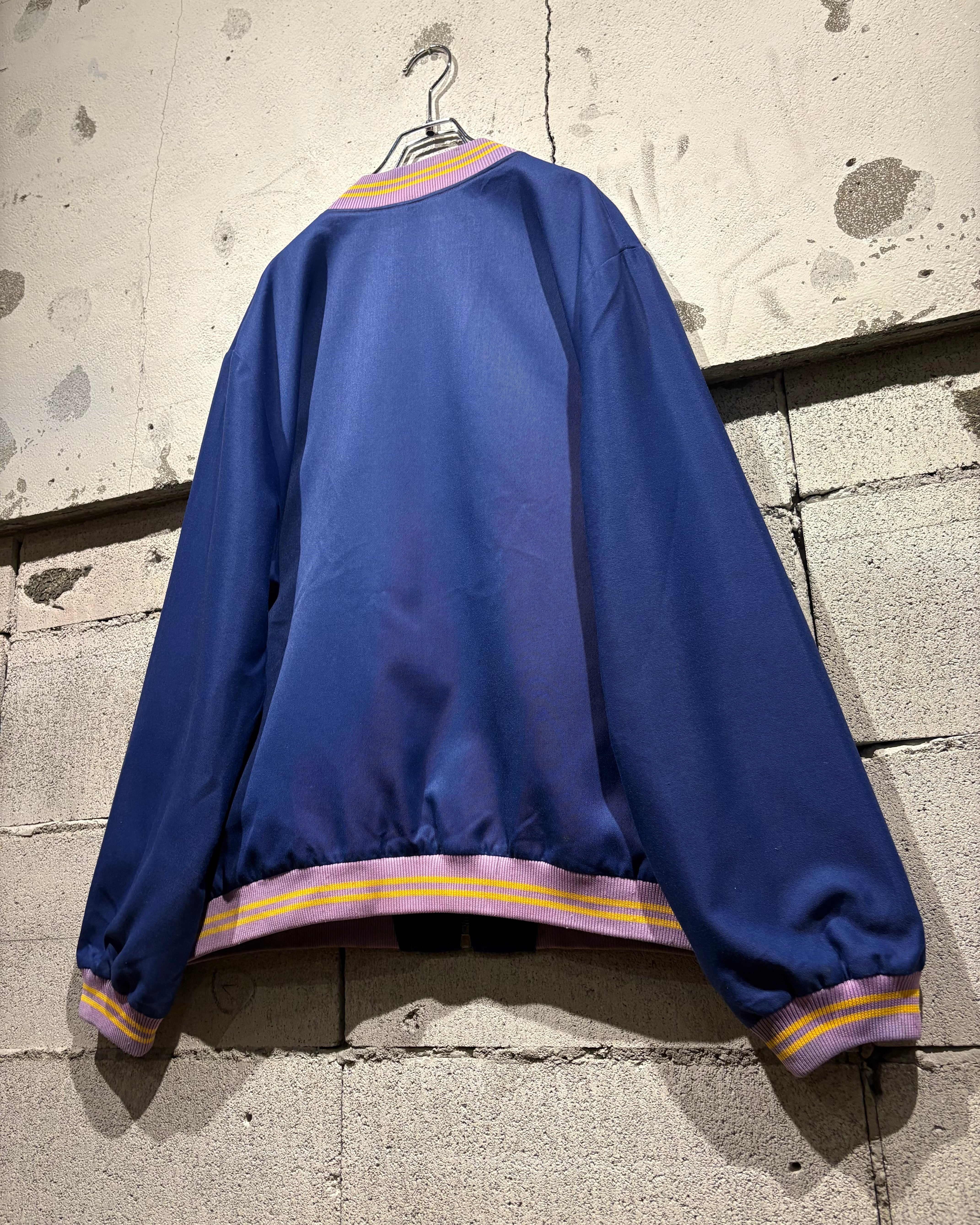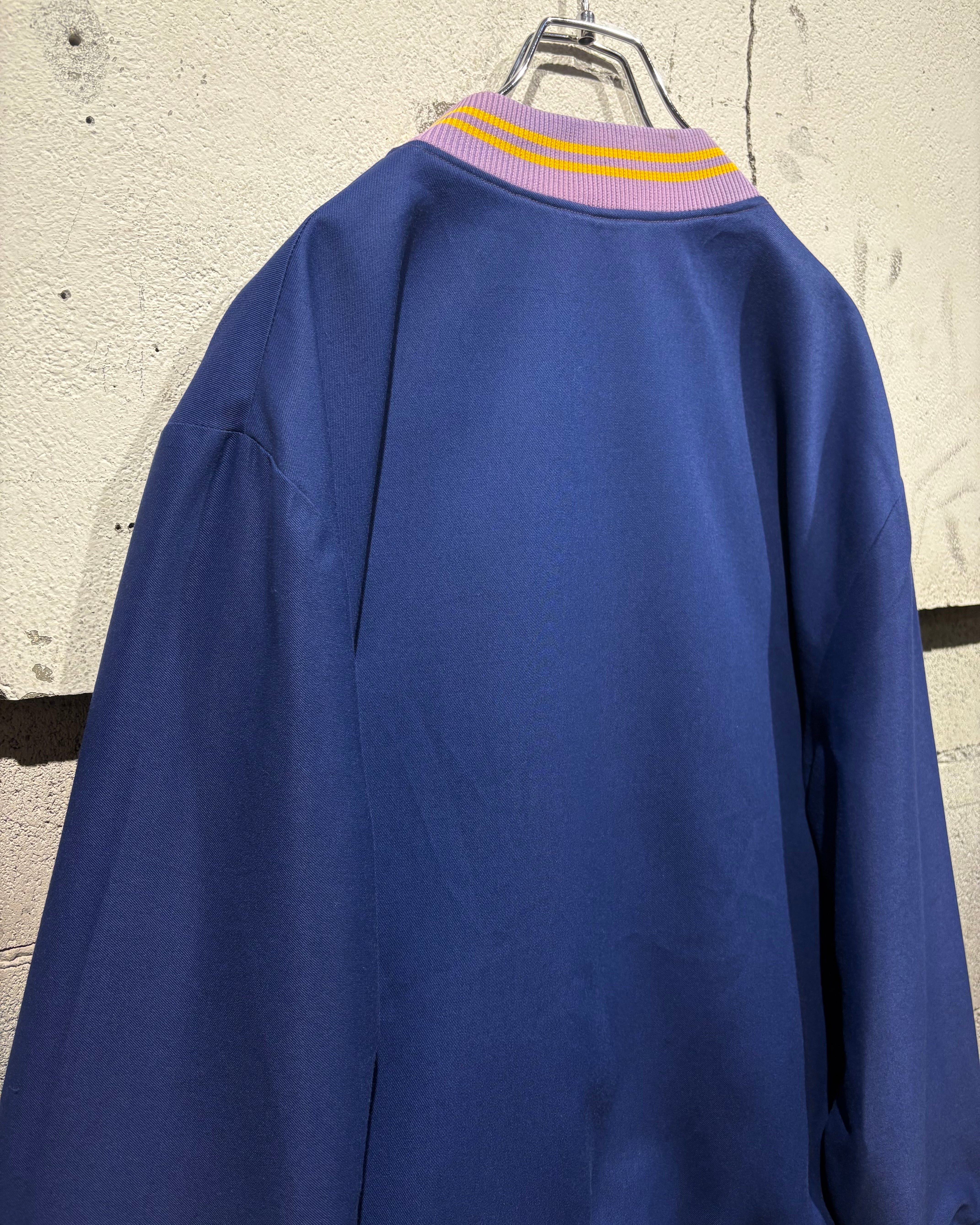 ボディビビットなブルーカラーを採用、深みのあるブルーに対し、首元、袖、裾には紫×イエローのライン入りリブを配置することで、鮮やかなコントラストを生み出した存在感のある配色が魅力です。