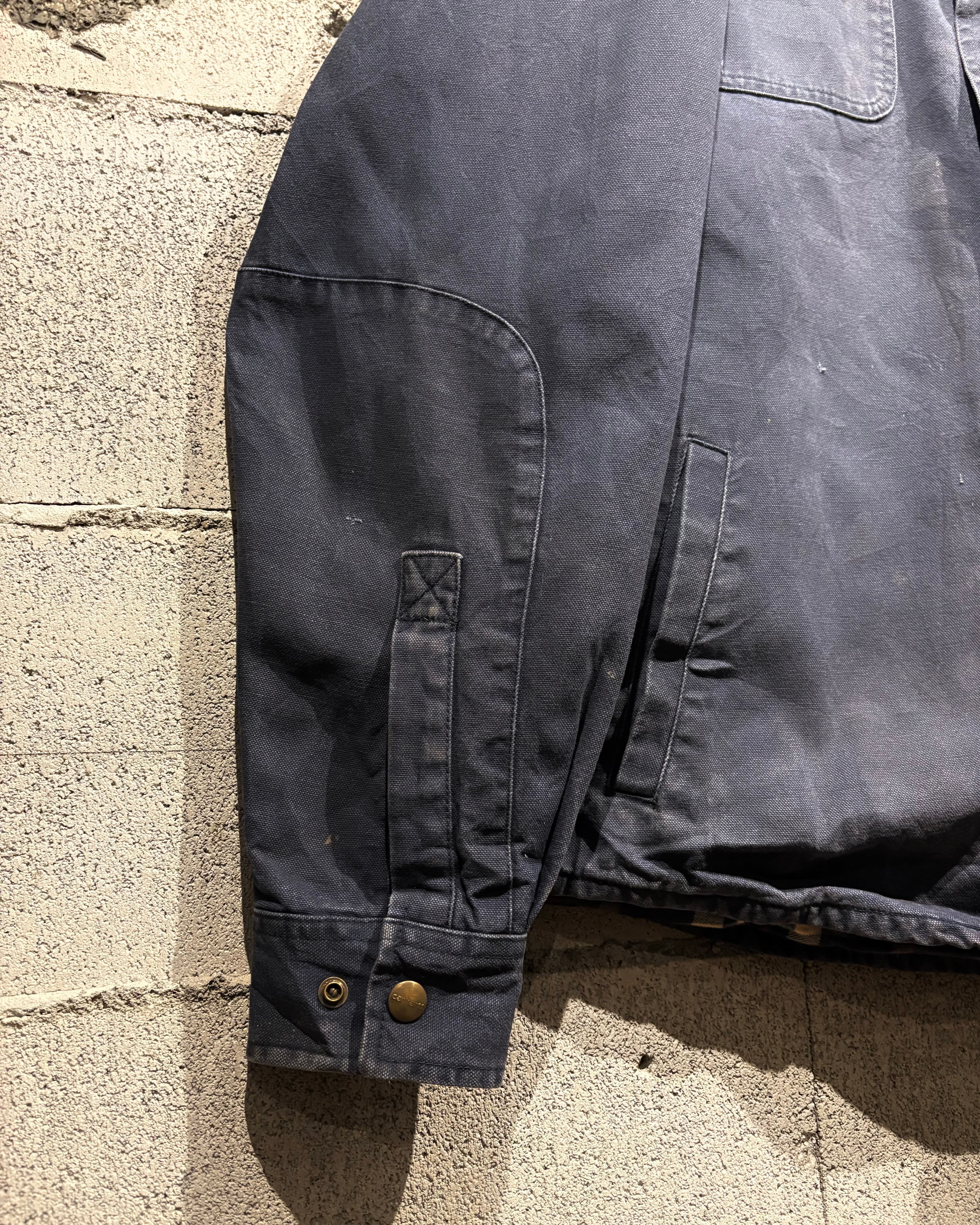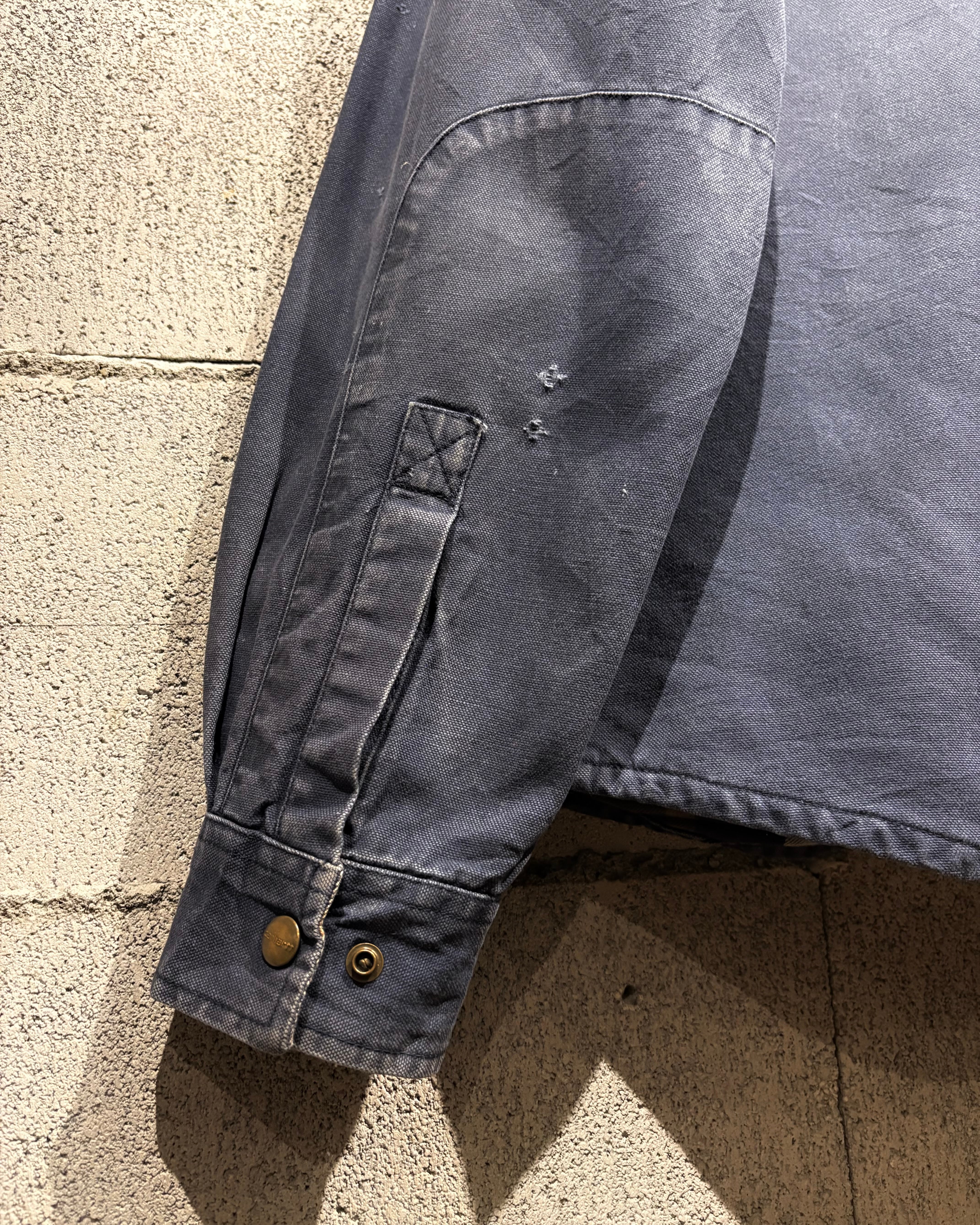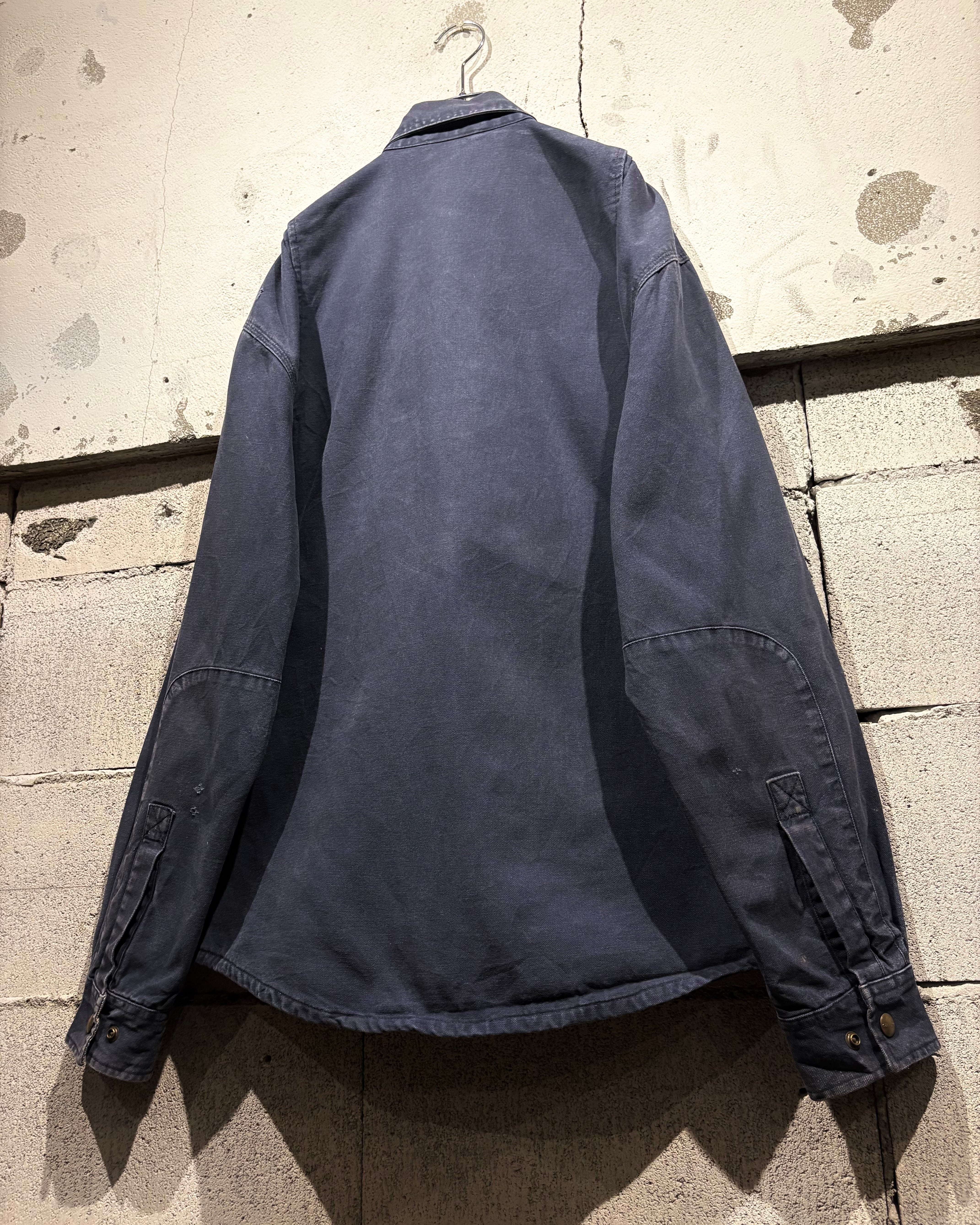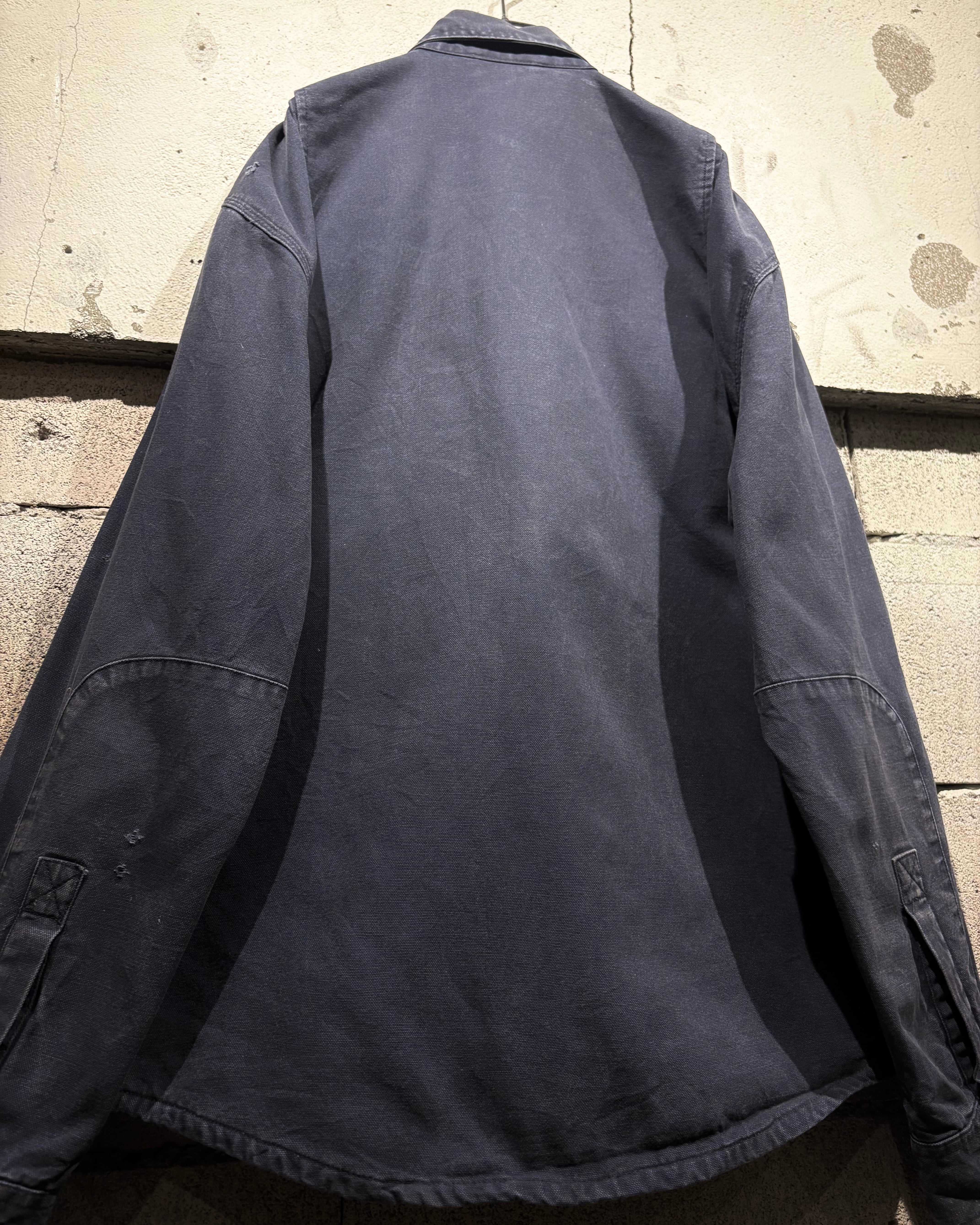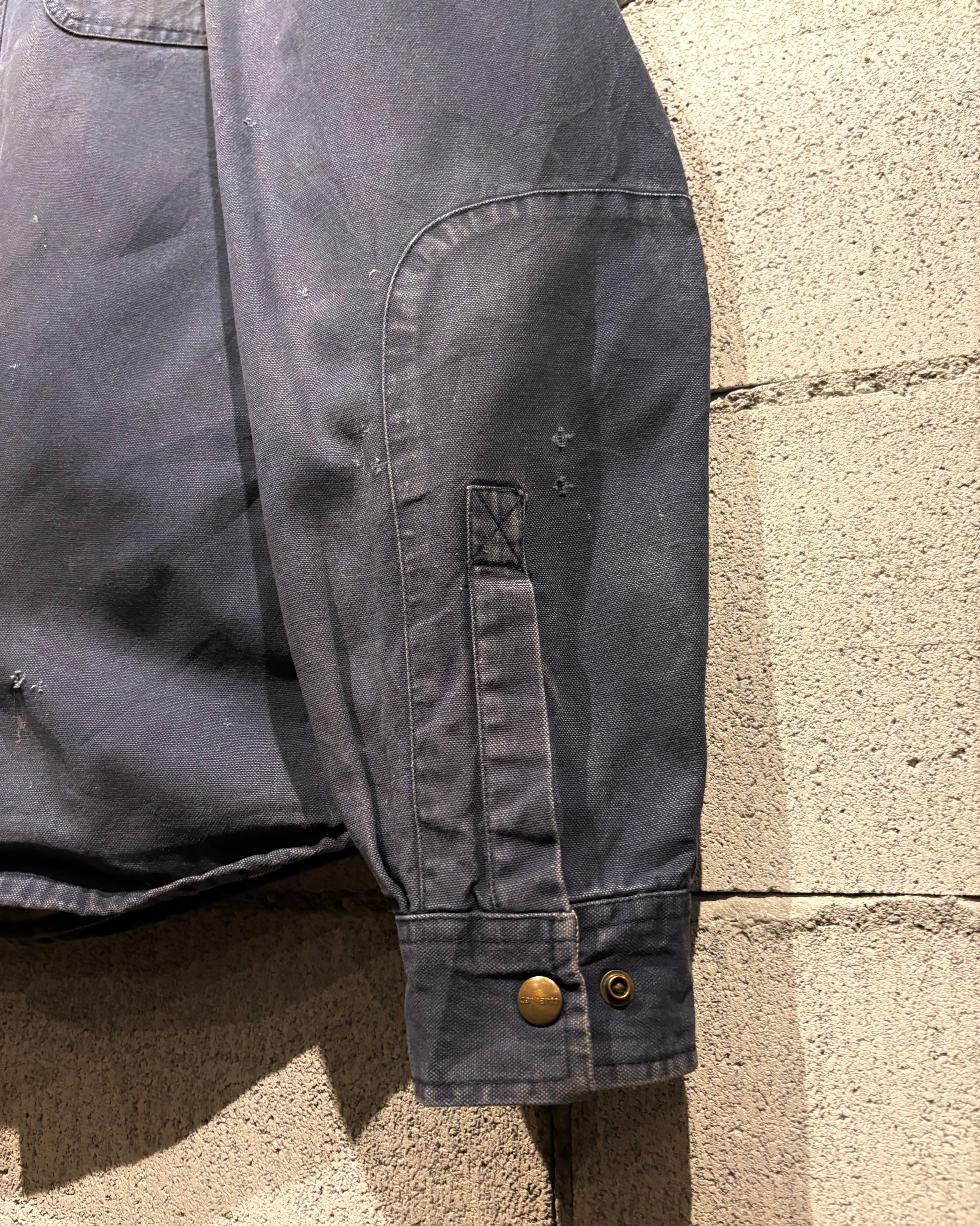 ボディには“Carhartt”らしい肉厚なダックコットンを採用。タフな生地が着用とともに馴染み、全体に現れたネイビーカラーのフェードがヴィンテージらしい奥行きのある表情を生み出しています。