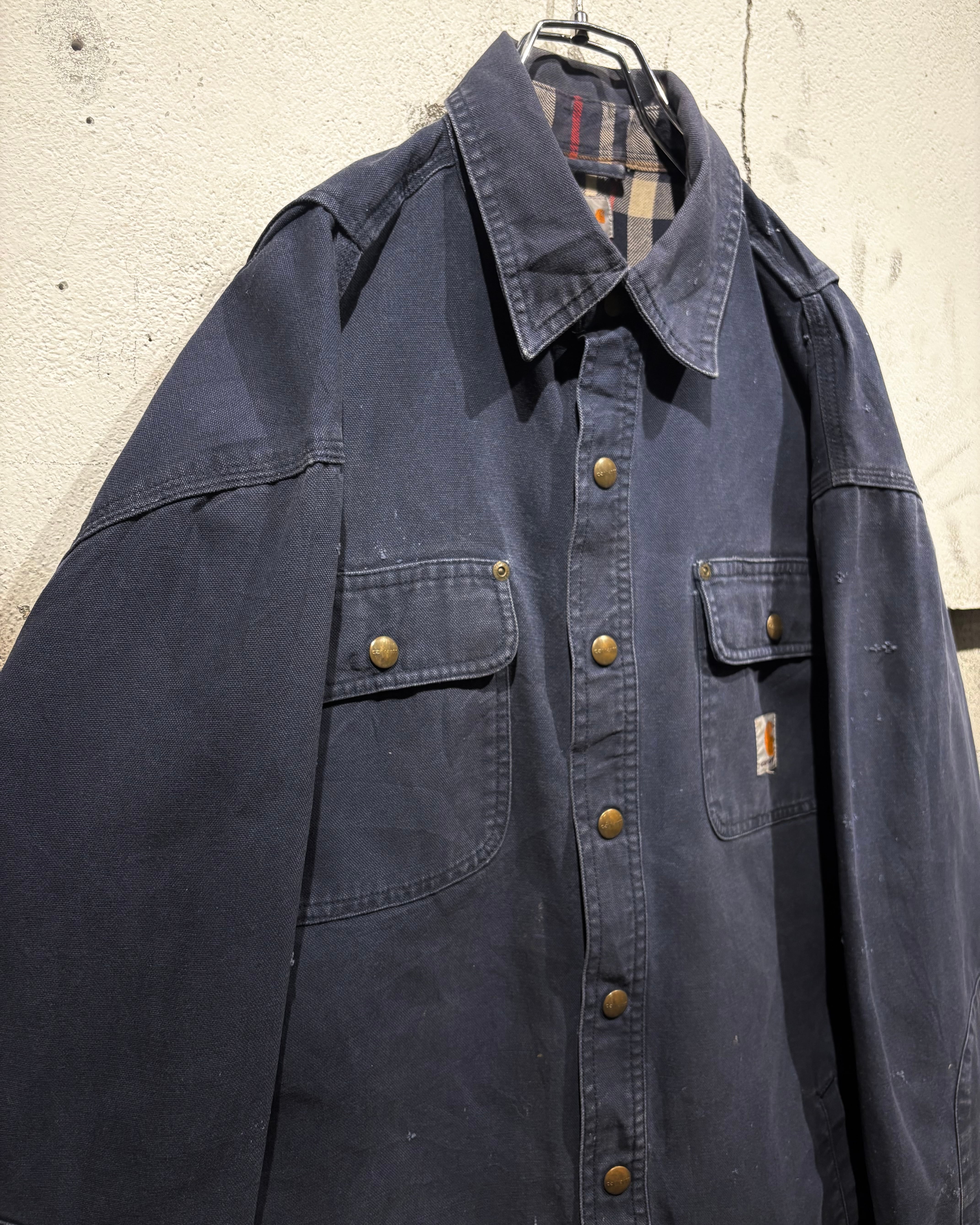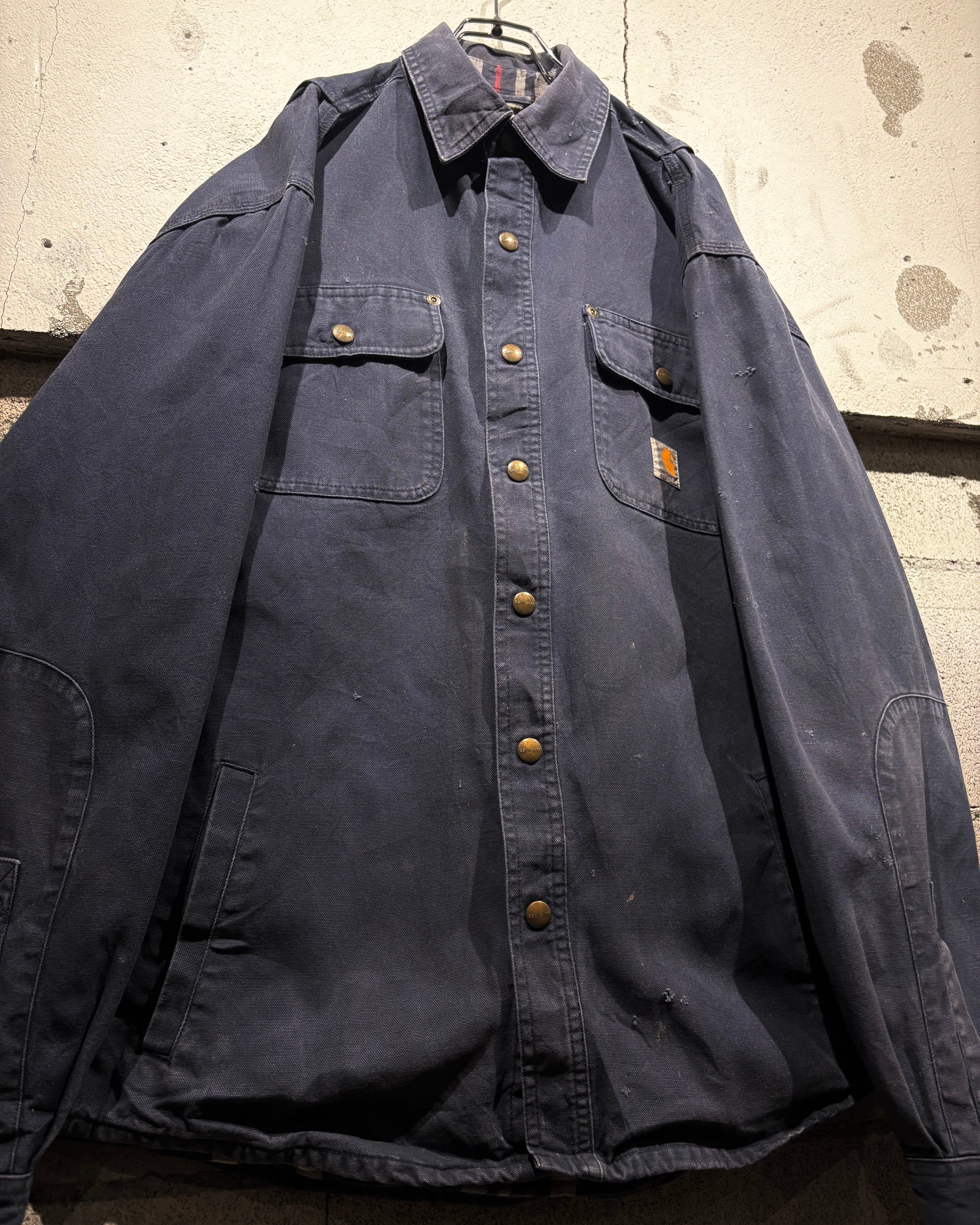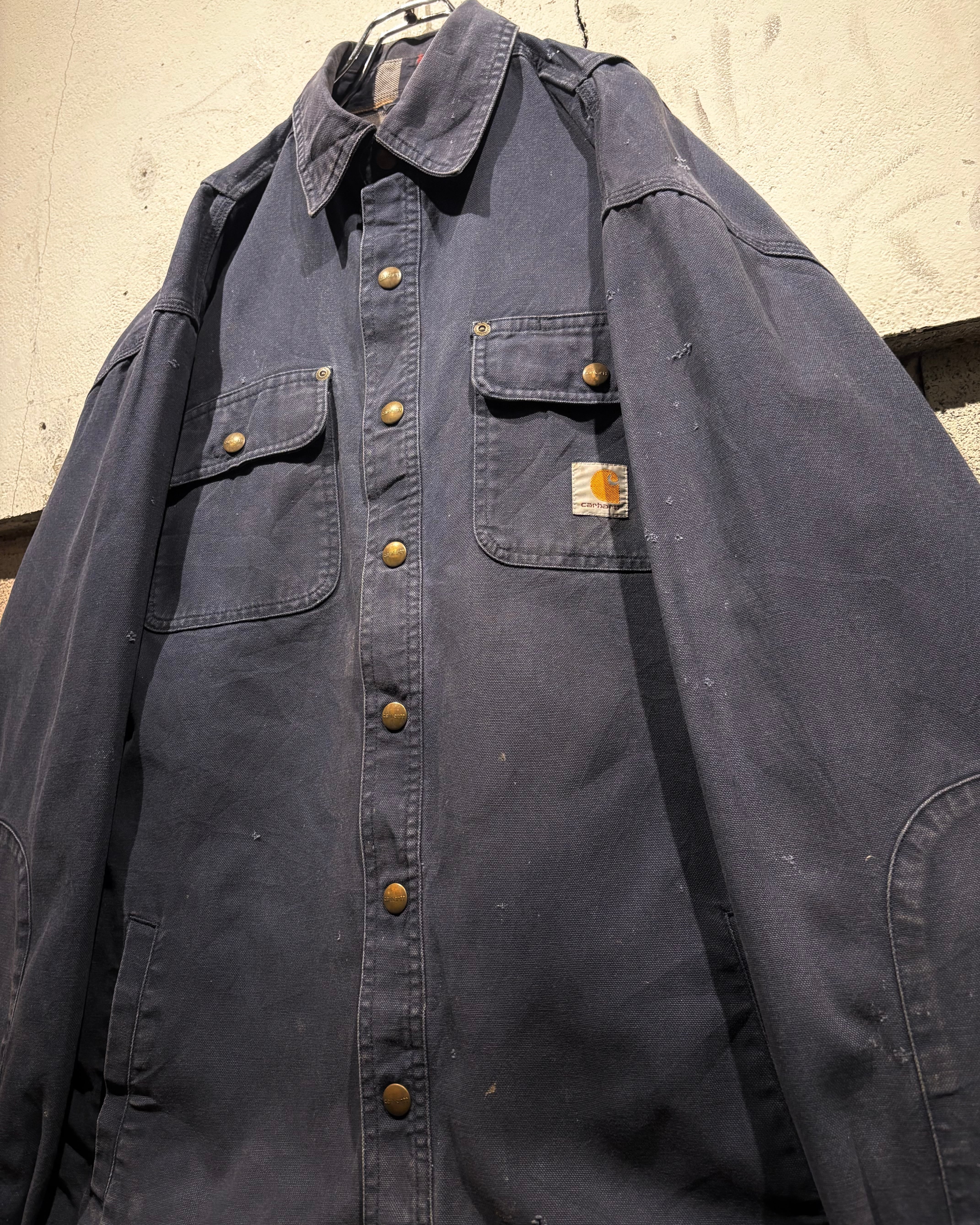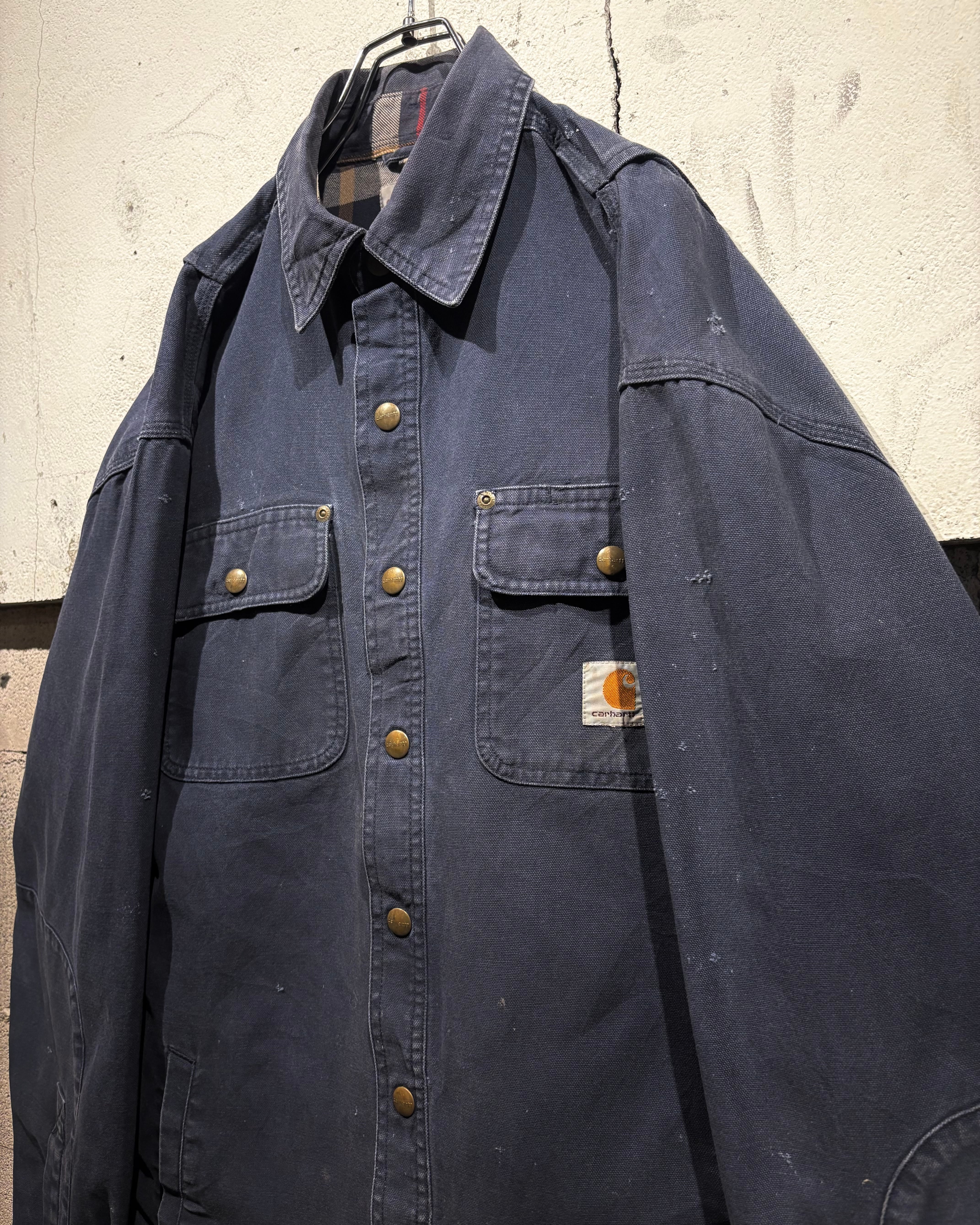 タフなダック生地、ネイビーのフェード、そしてエイジング。ワークウェアの魅力を存分に感じられる、唯一無二の表情を持った“Carhartt”らしいスペシャルな1着です。