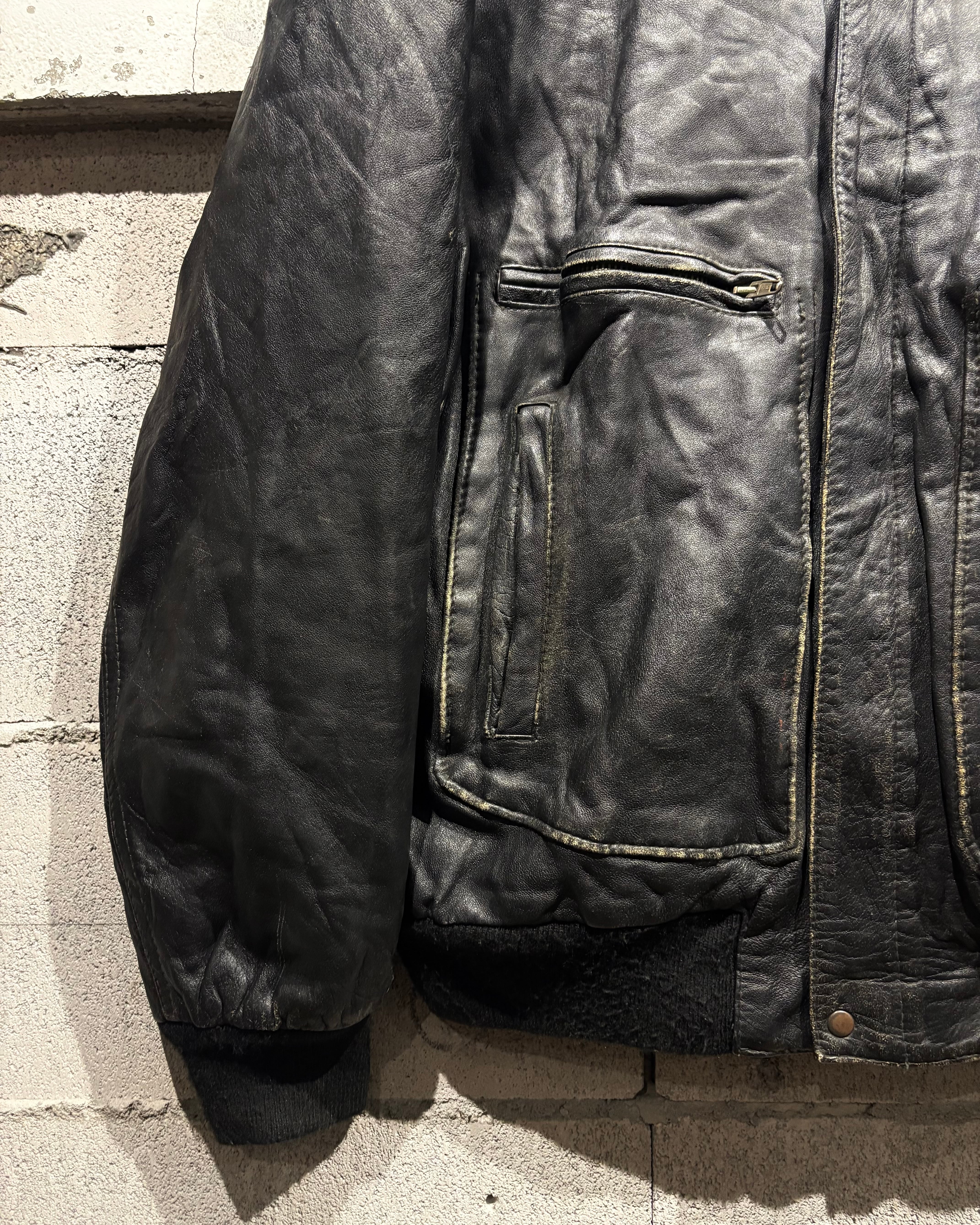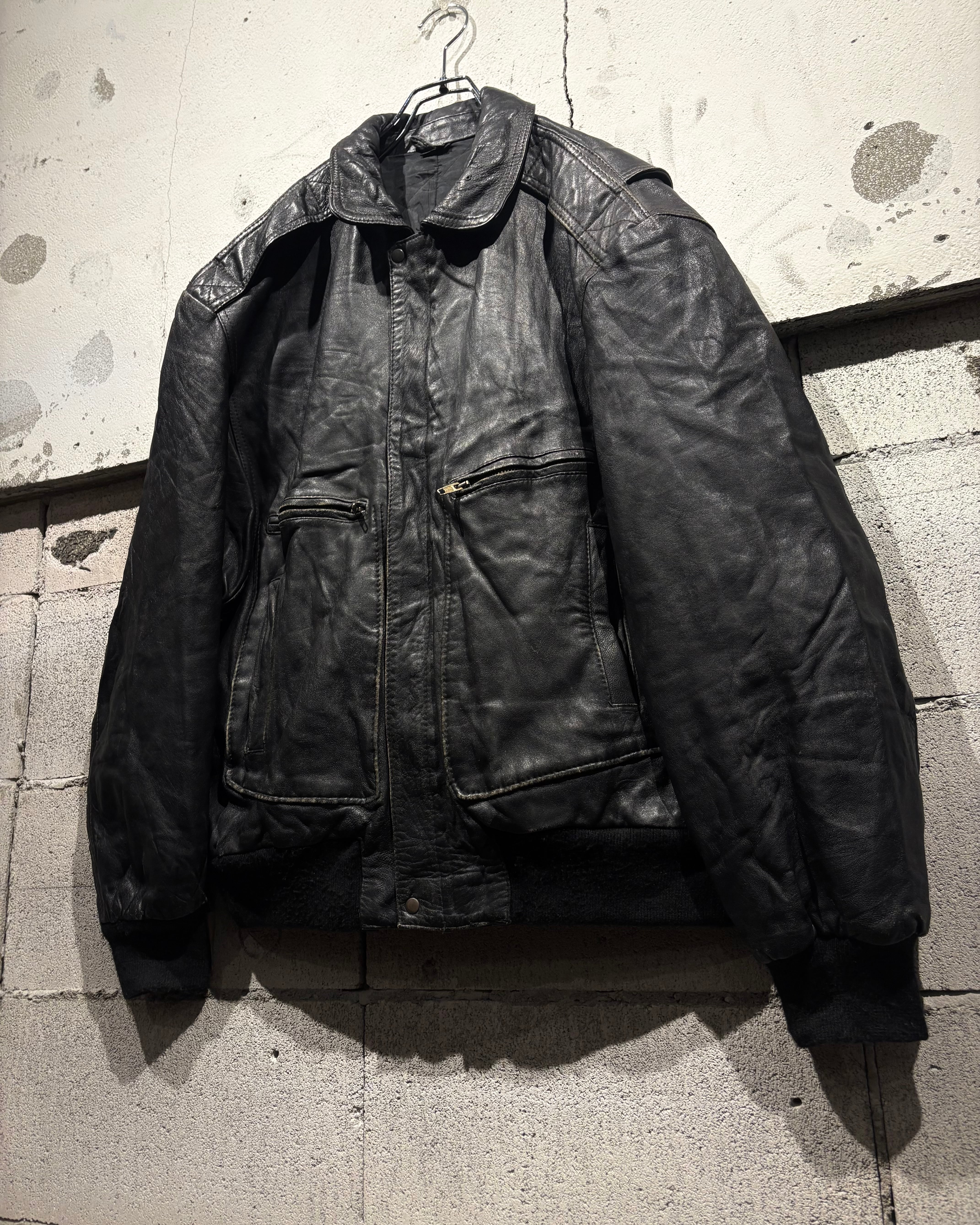 ミリタリーウェアの名作として知られる“A-2フライトジャケット”のディテールを踏襲した、80's〜90'sヴィンテージのレザージャケット。