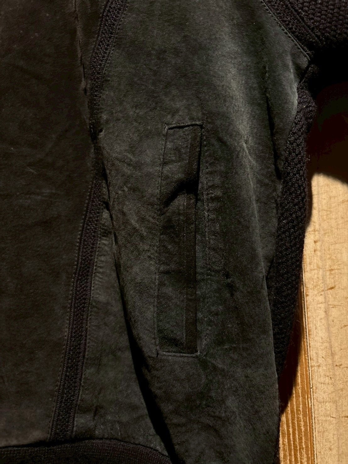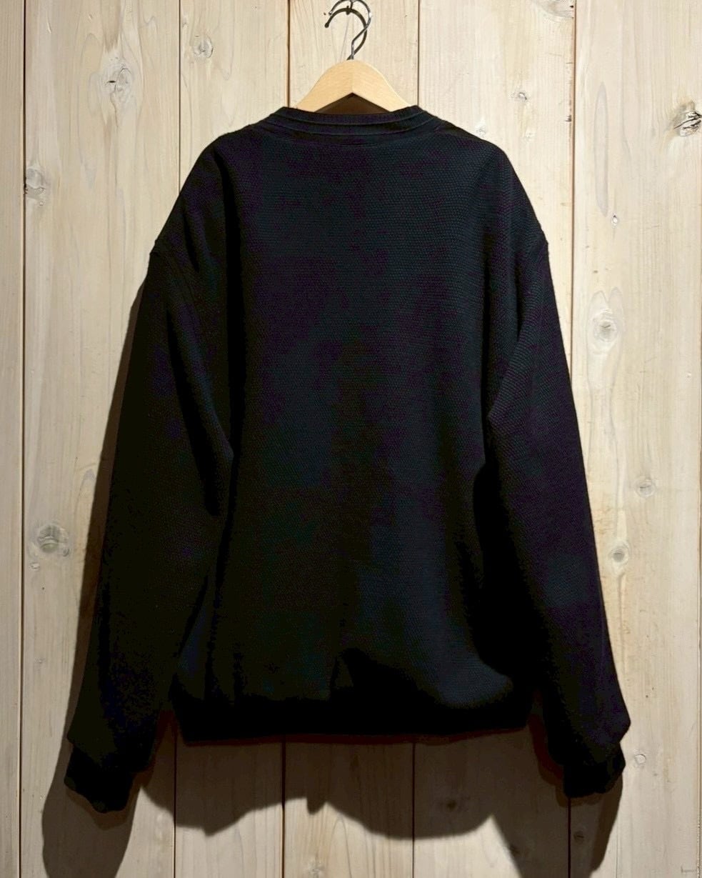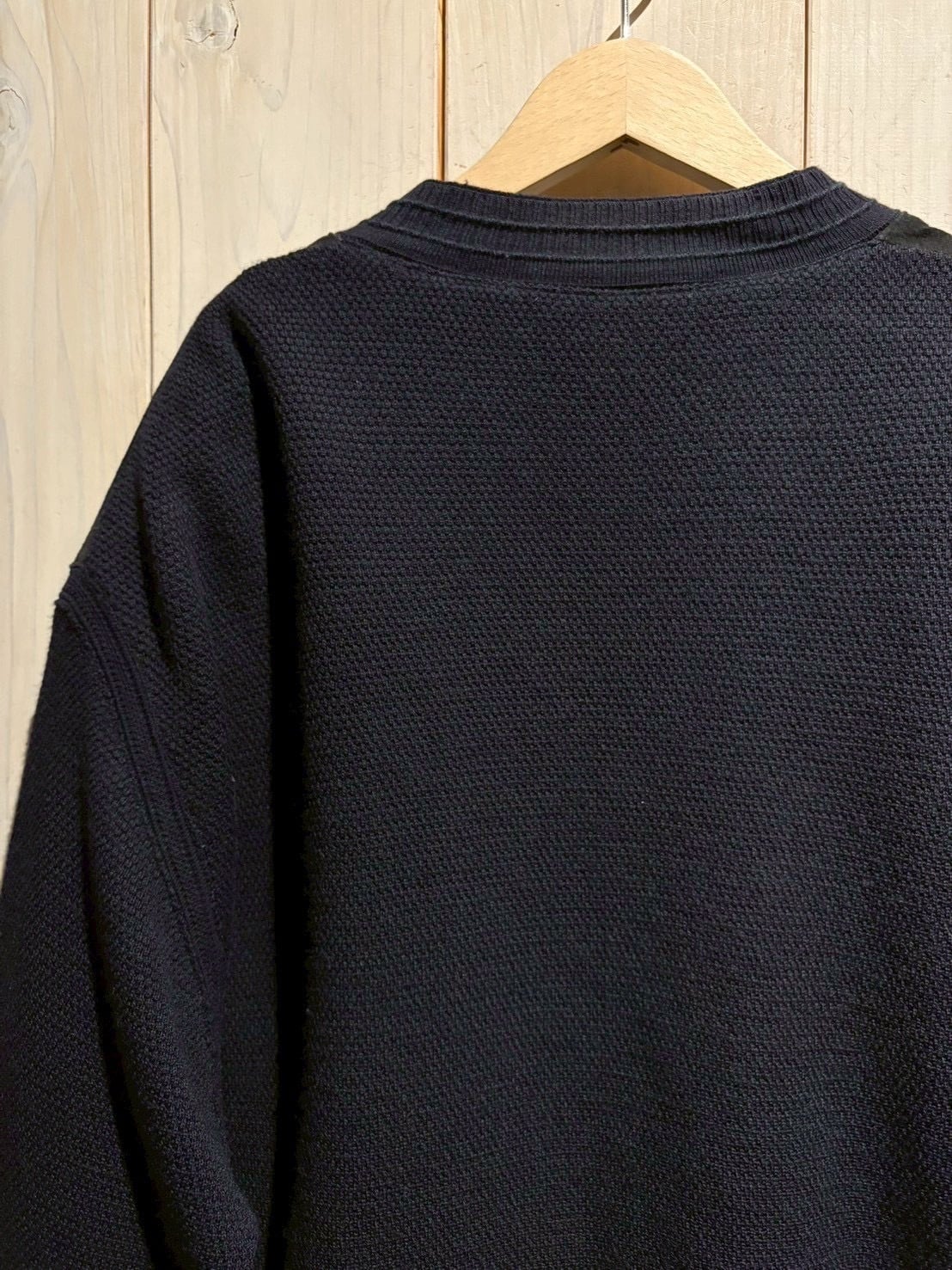 ボディには立体感のある編み地のニット素材を使用し、肉感のある編み地によって程よい保温性と動きやすさを確保しつつ、スエードとの素材コントラストがスタイリングに深みをプラス。