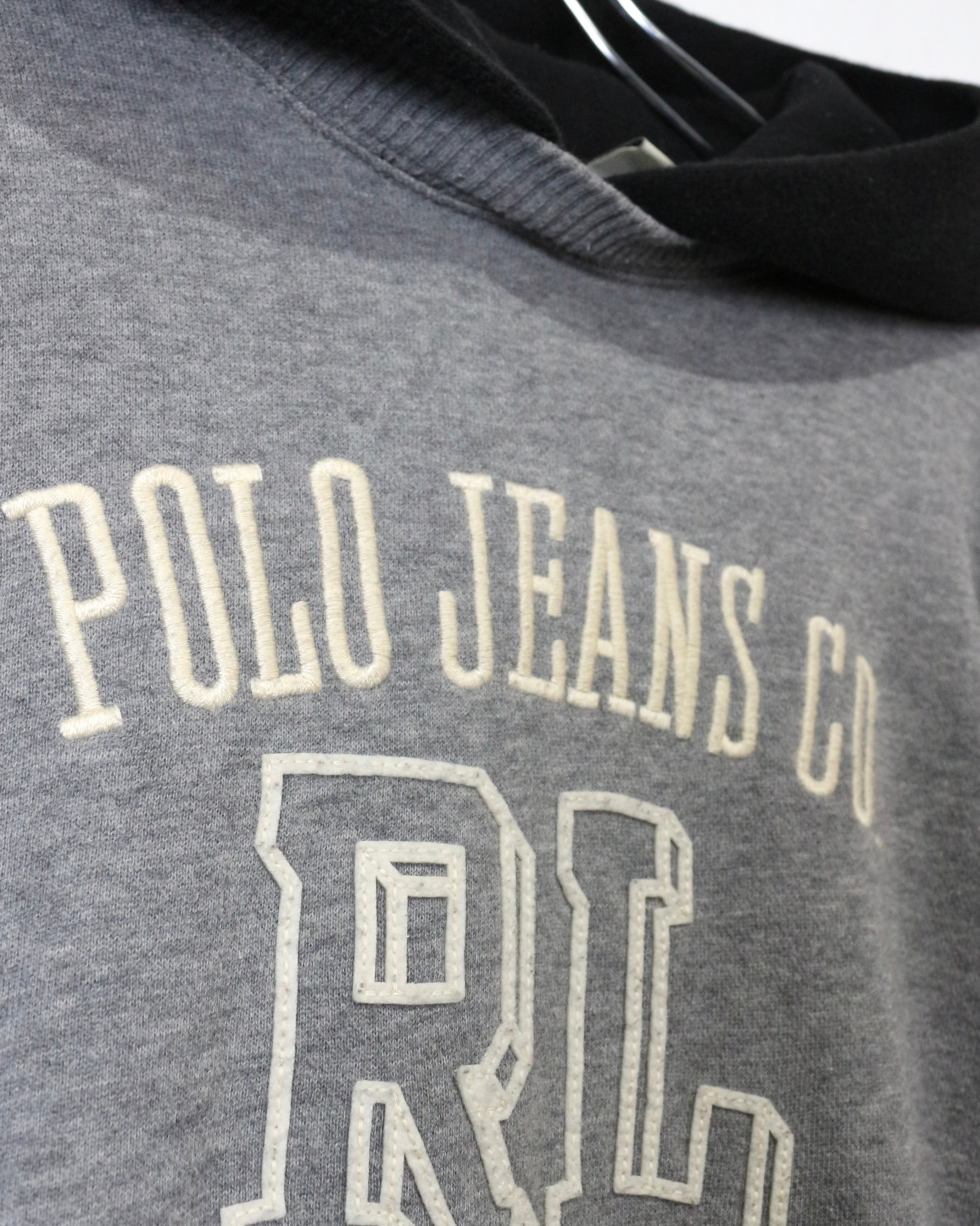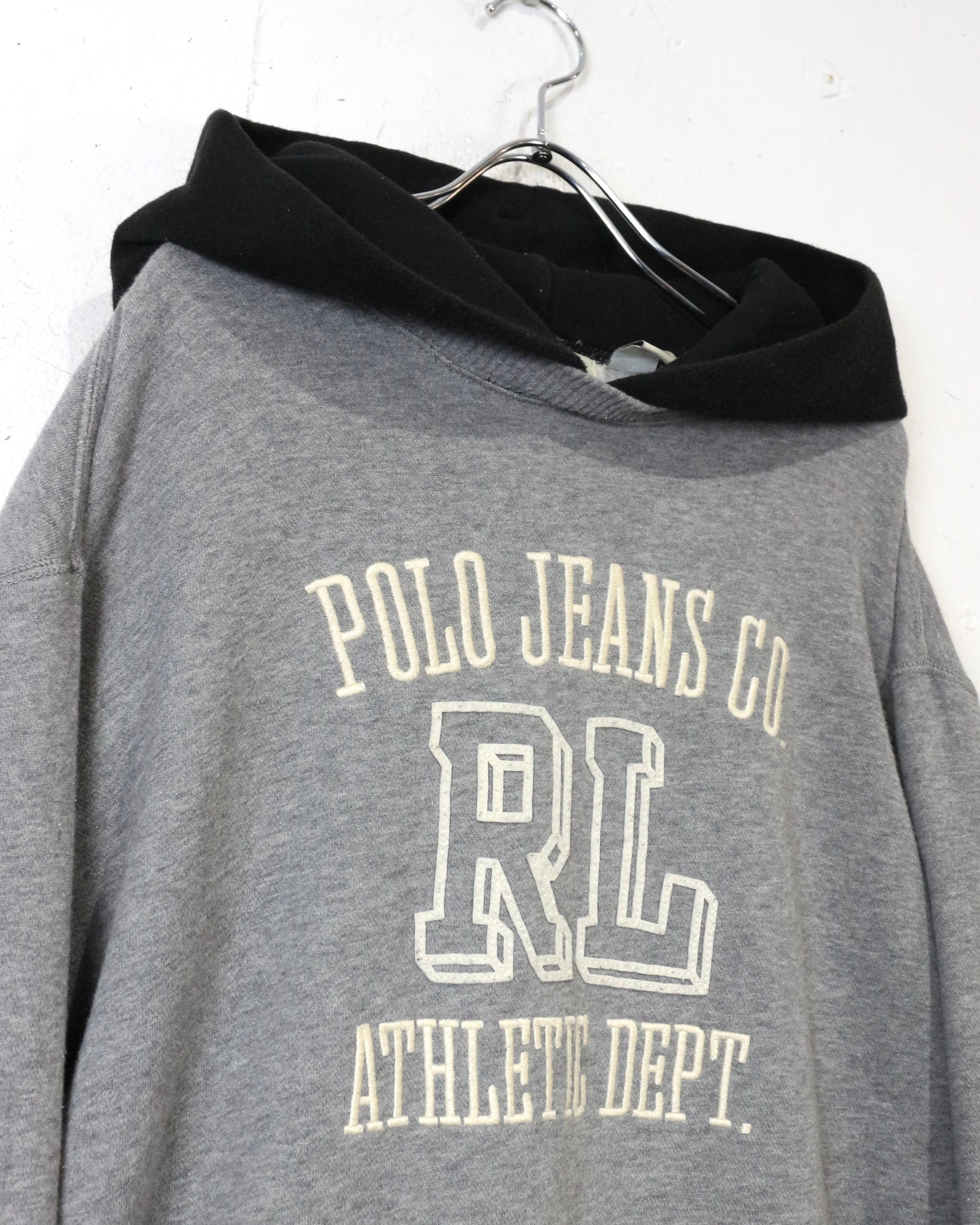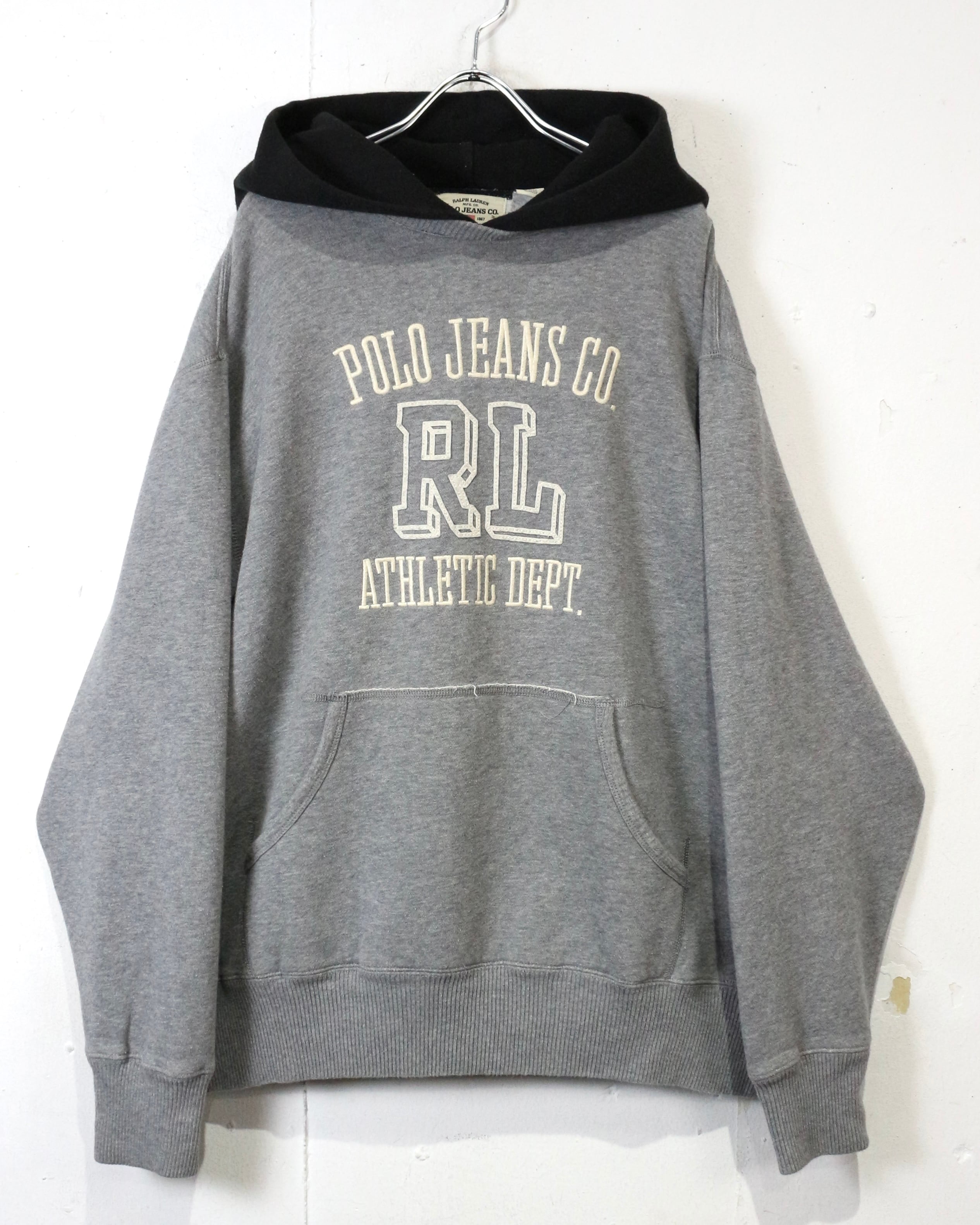 グレーボディをベースに、フロントには“POLO JEANS CO.”と“RL ATHLETIC DEPT.”のカレッジライクなロゴプリント、刺繍を配置した、クラシックなアメリカンカレッジの空気感を纏った1着。