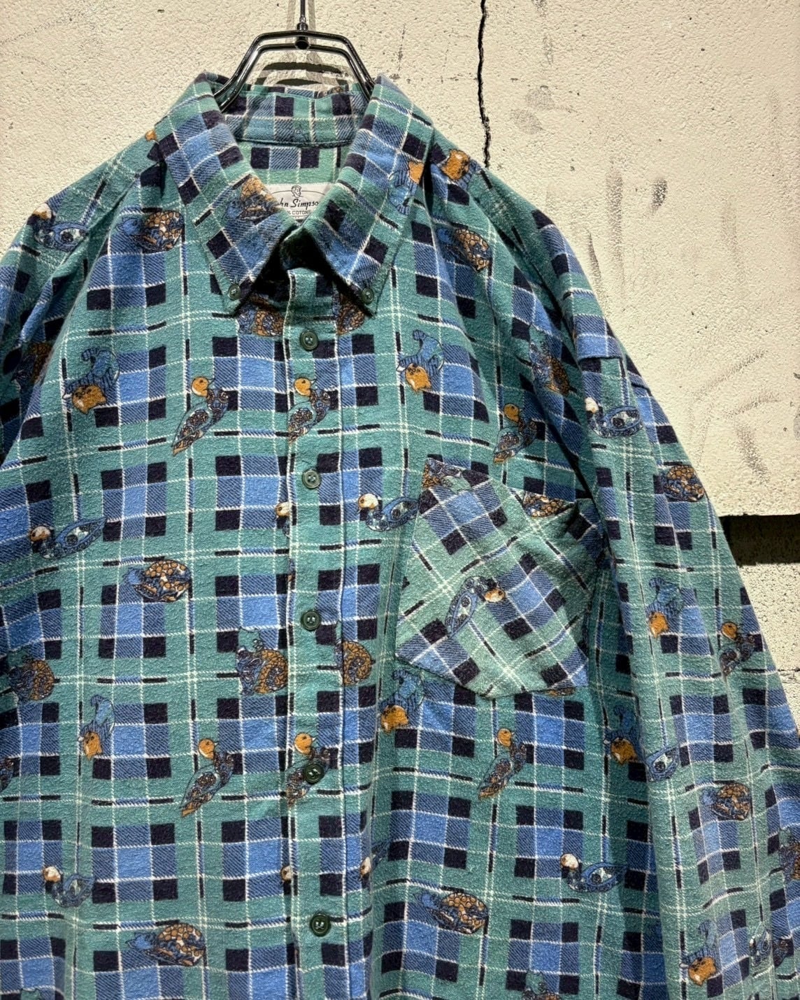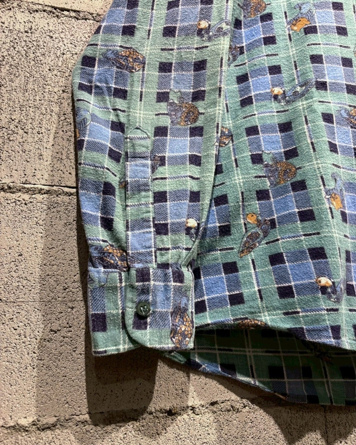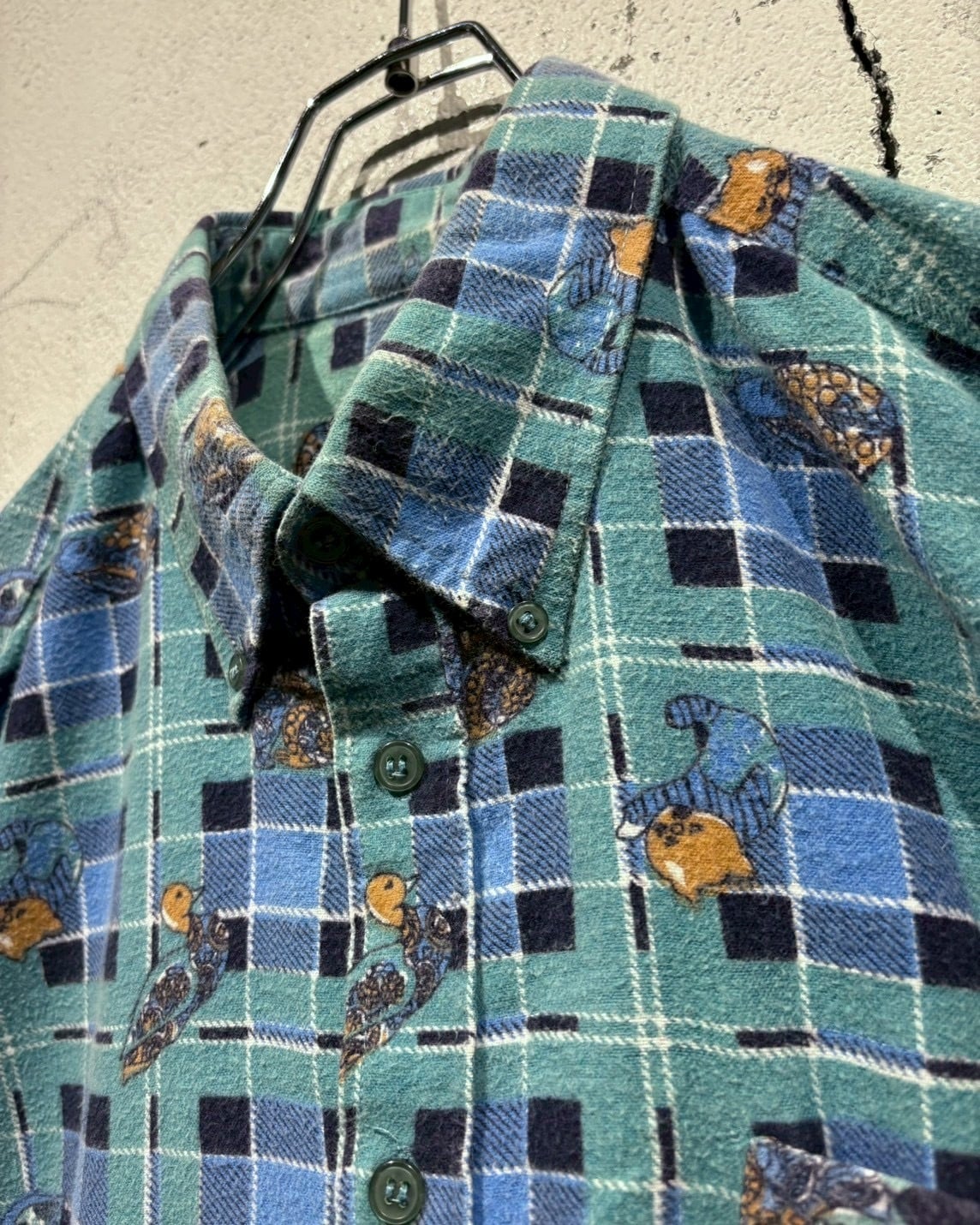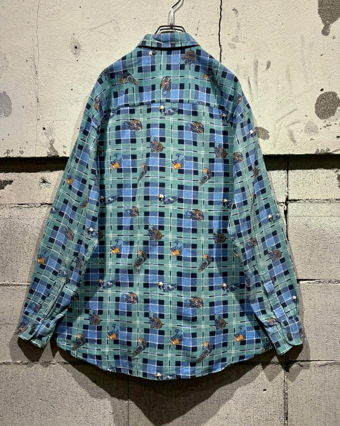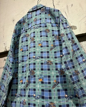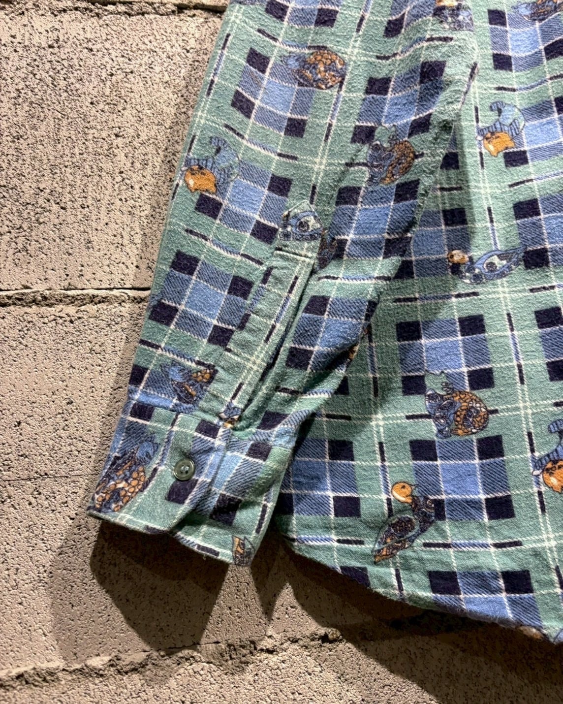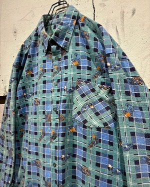 チェック柄のクラシックさと、ゆるキャラデザインが融合した存在感のある1着。スタイリングの主役として活躍してくれる80'sユーロヴィンテージのスペシャルなシャツです。