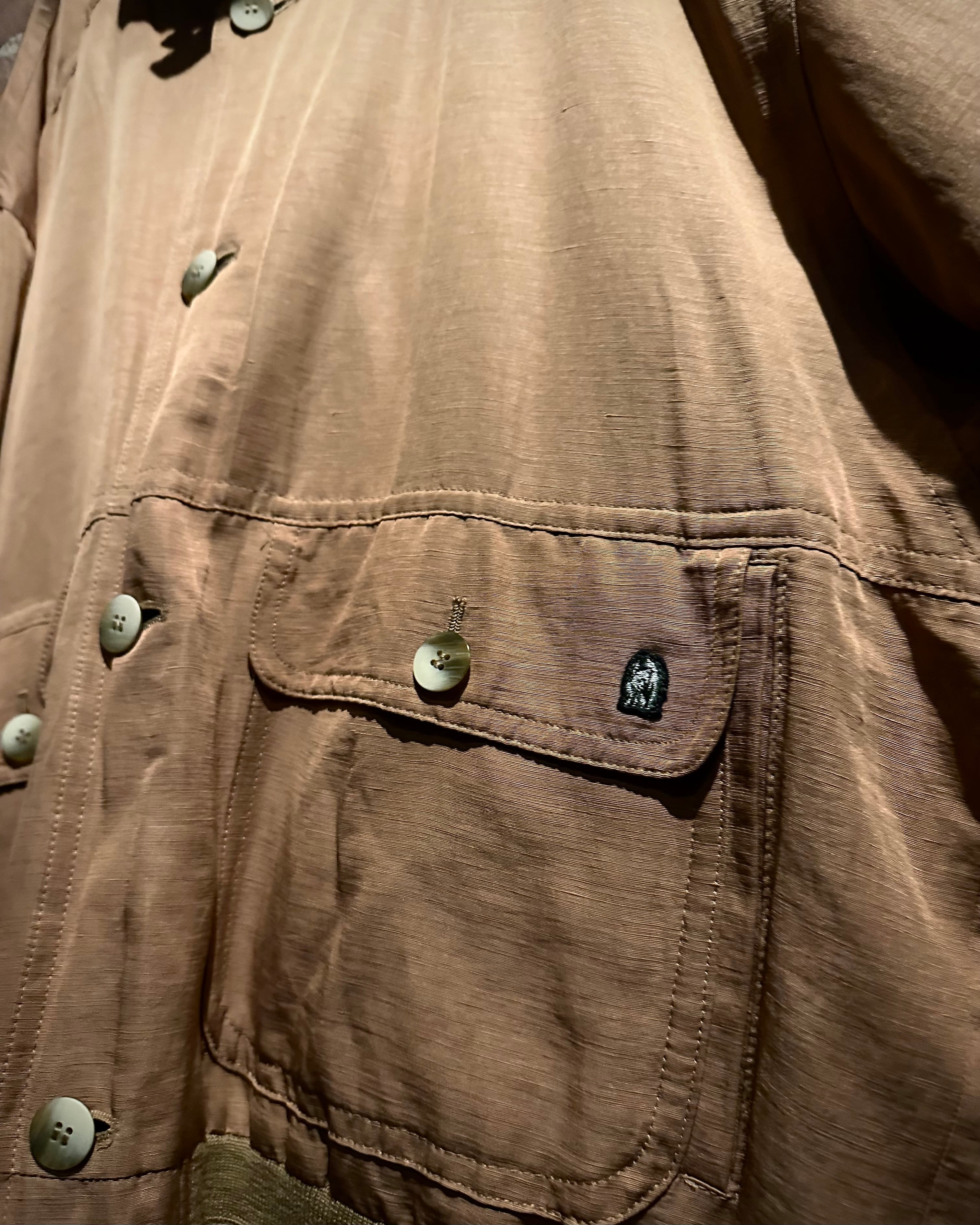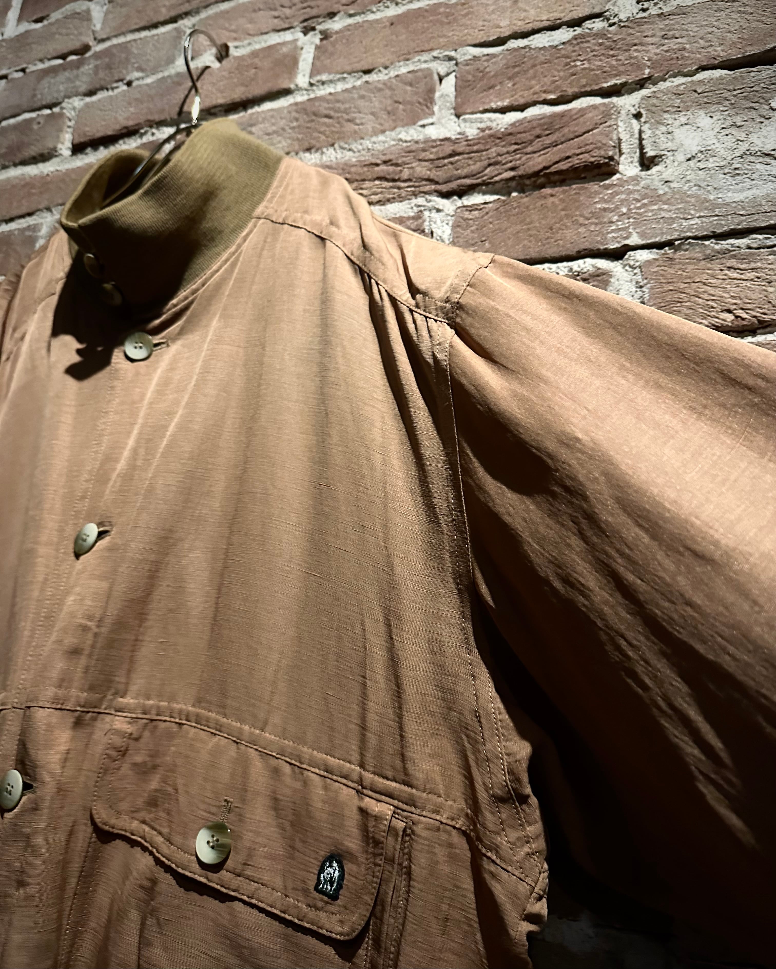 リネンを混紡してるので着心地も非常に軽やか。ハリのある素材感と掛け合わさることで生まれる着用時の立体的なシルエットも良く、身幅、アームホームは広く採られながらも短丈のシルエットが超気分です。