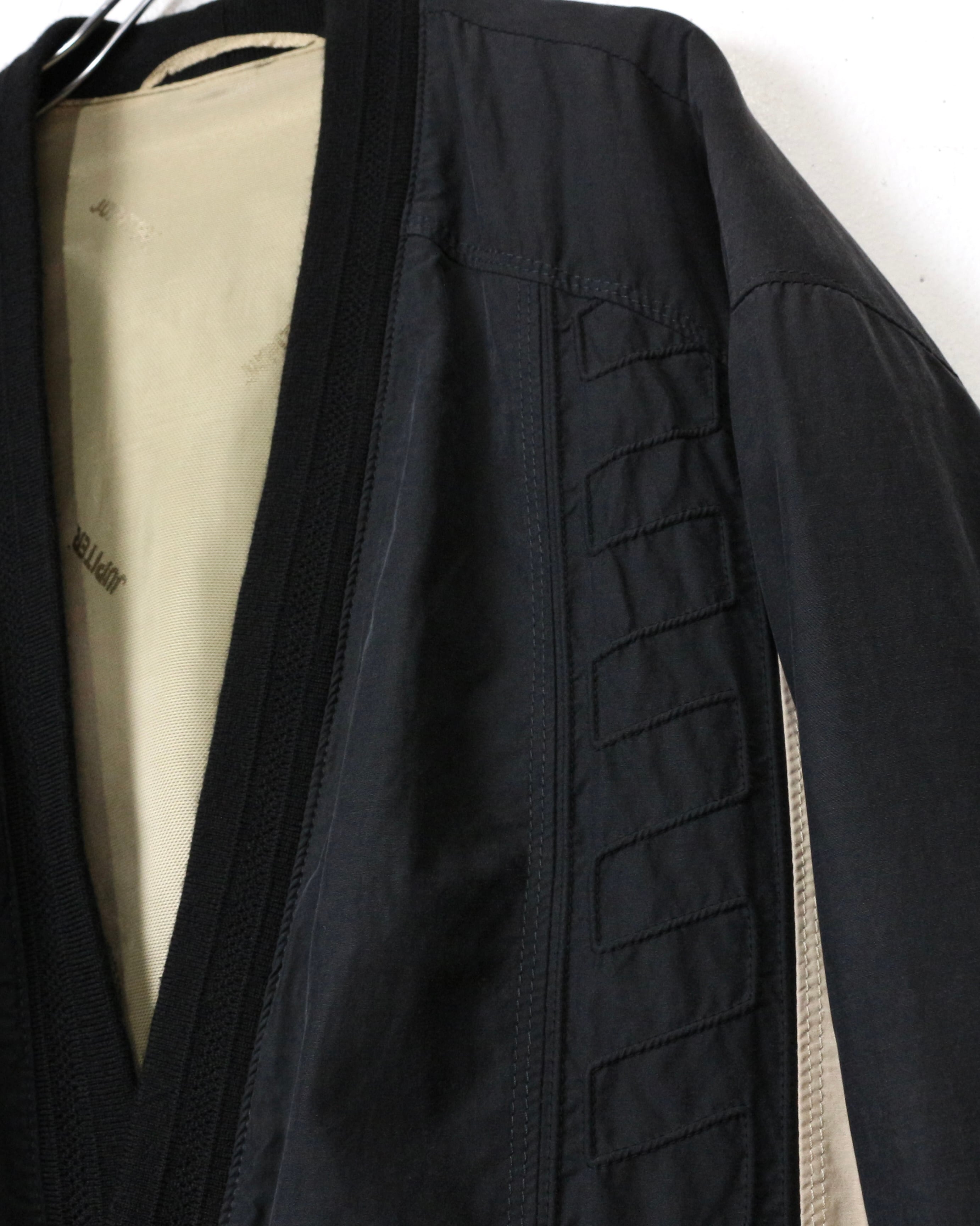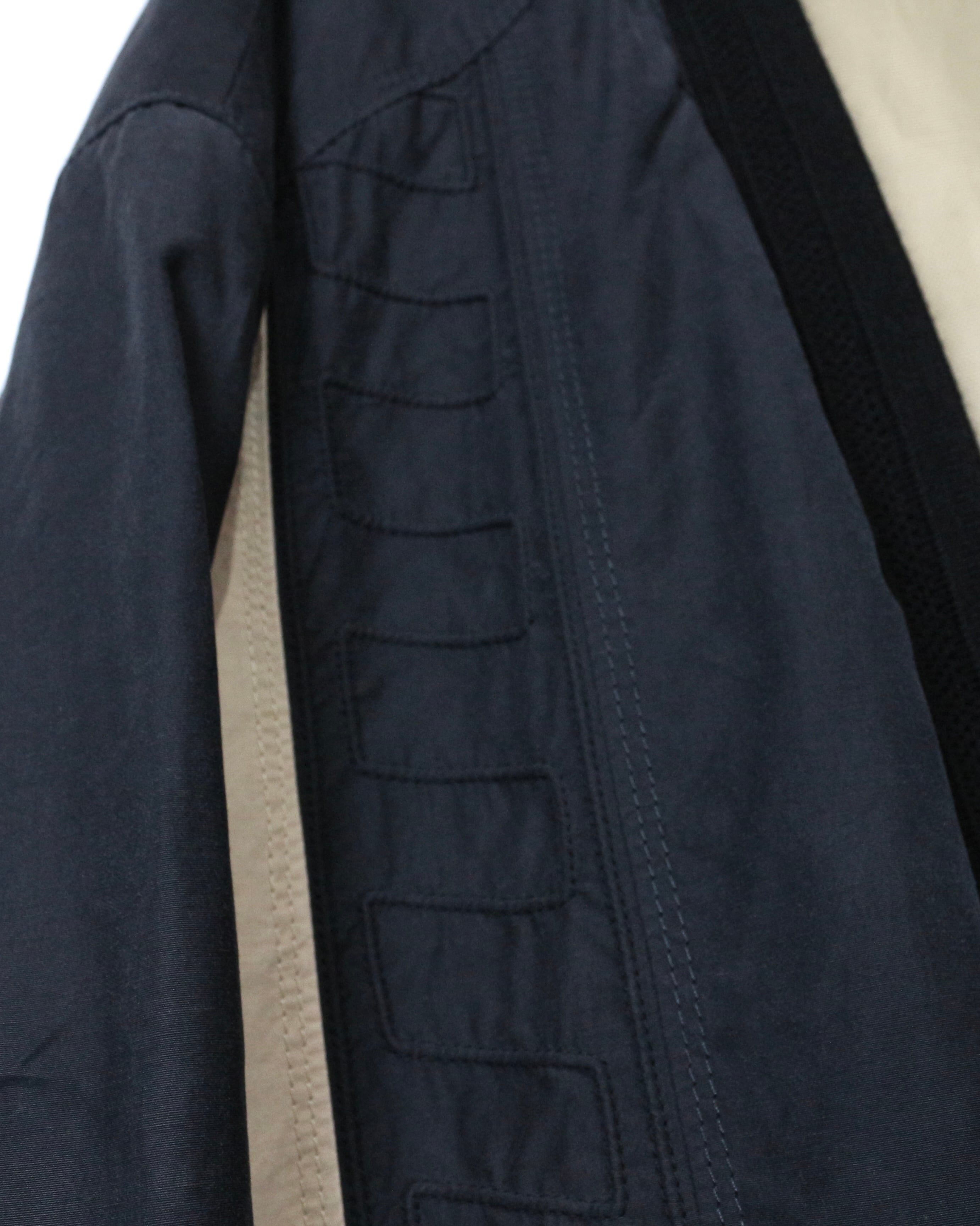 キュプラ×コットン をボディに使用したことで、滑らかな質感と程よい光沢感と共に、軽やかな着心地と上品な雰囲気を演出。ライトな羽織としてシーズンレスで活躍してくれる実用性も魅力となっています。