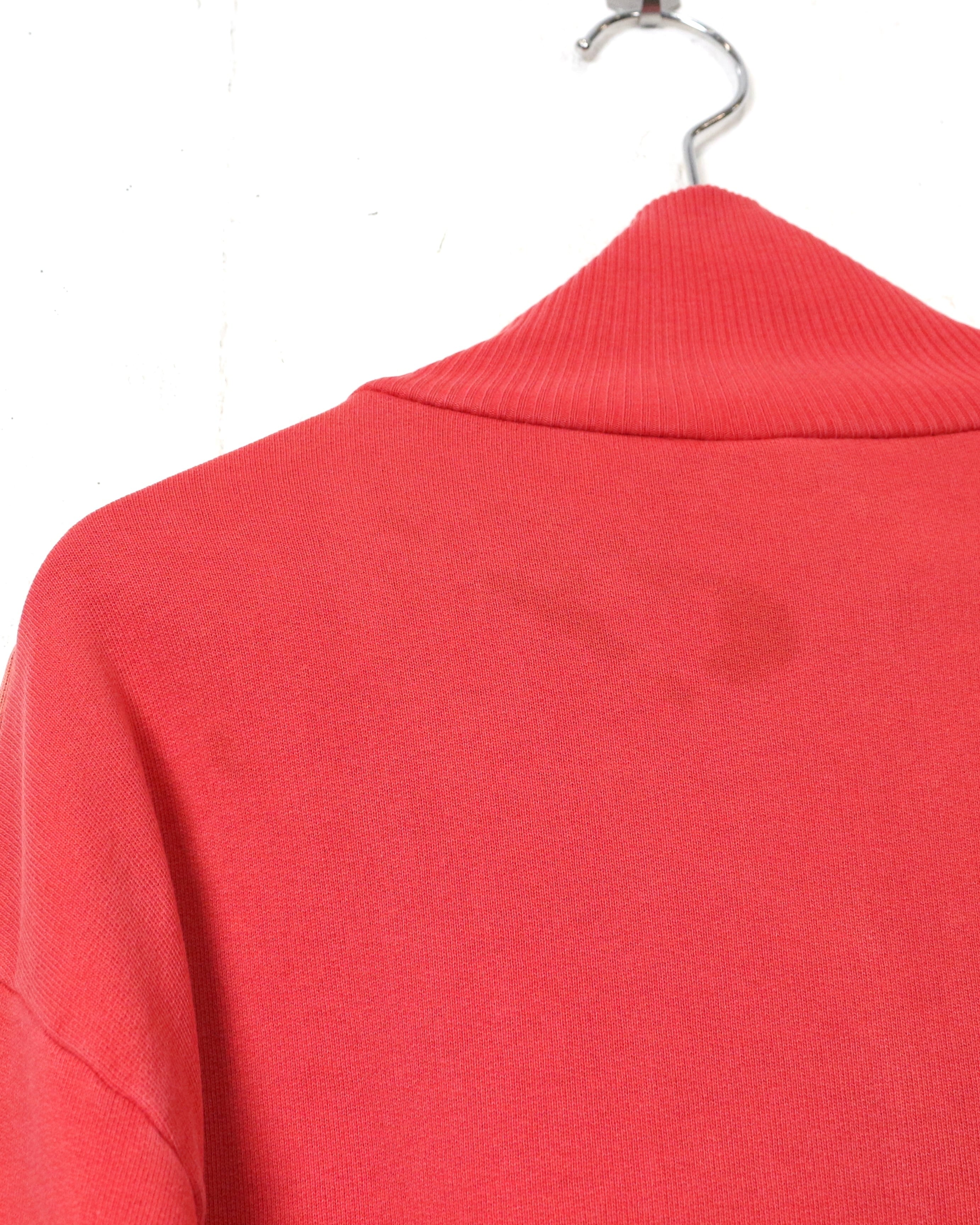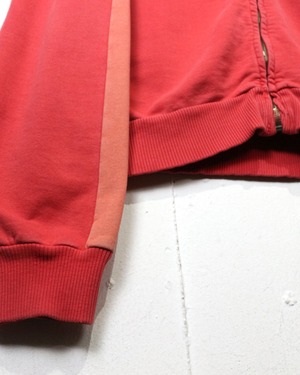 ネックは高めに設定されたスタンドカラー仕様、フロントはジップアップで開閉可能なスウェットジャケットタイプ。程よく肉厚なコットンボディで着心地も良く、軽い羽織としても活躍してくれる実用性の高さも魅力です。