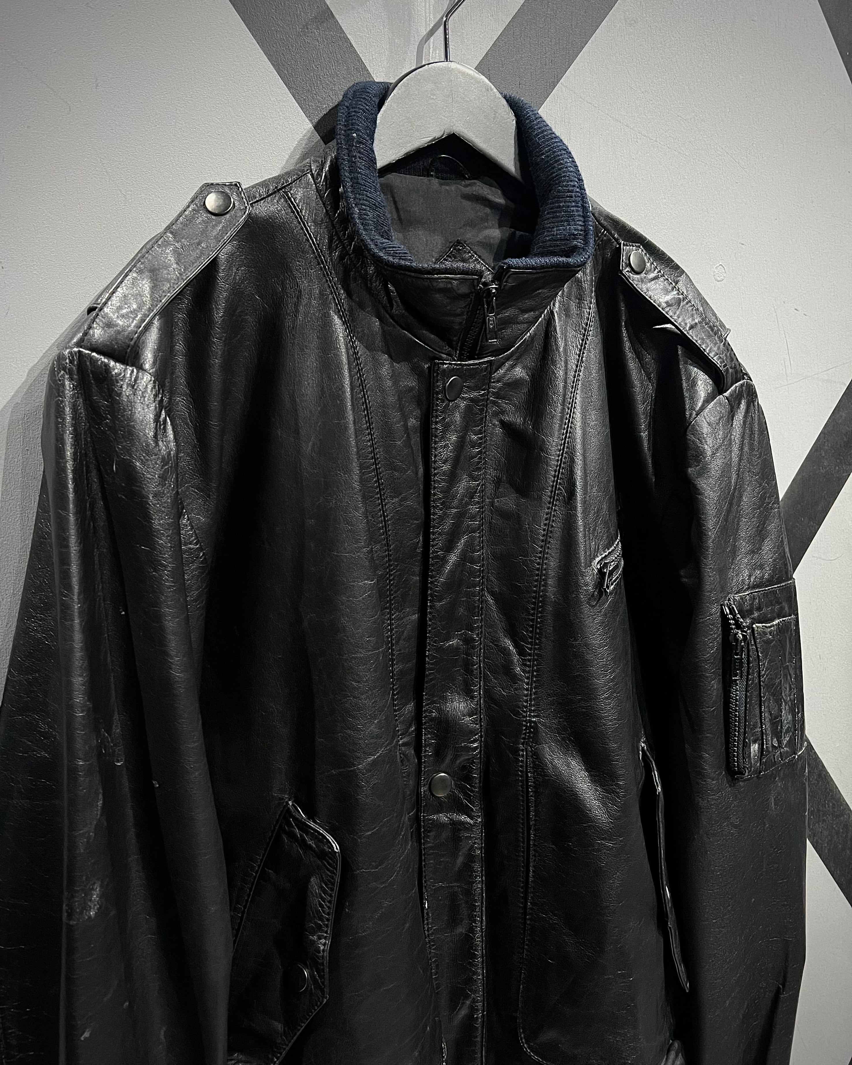 英国発のブランド HARDY AMIES より、ミリタリー由来のディテールを落とし込んだレザージャケット。
