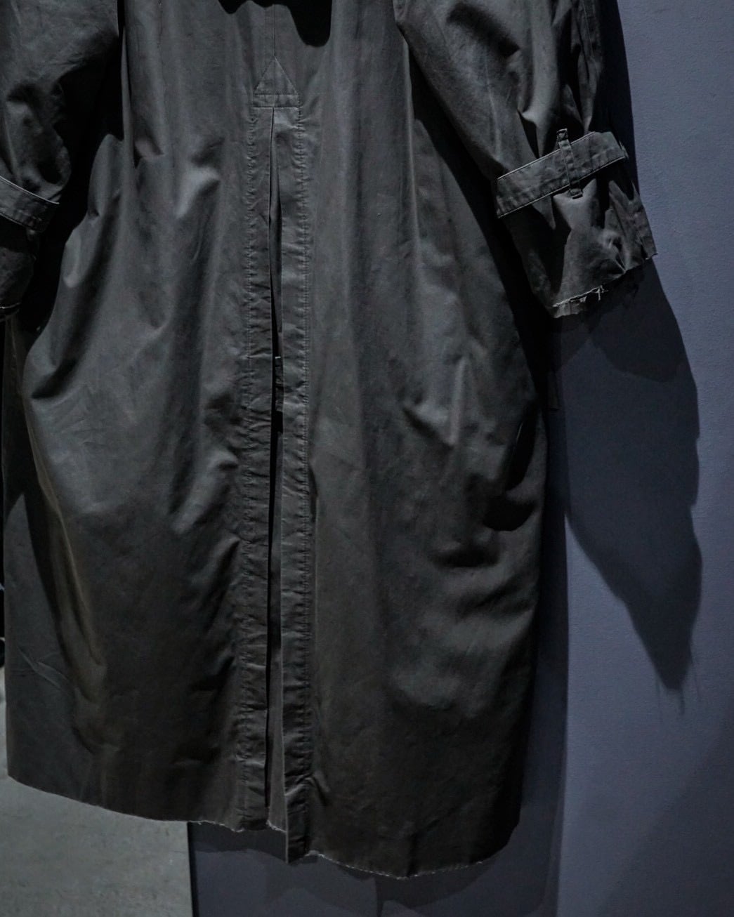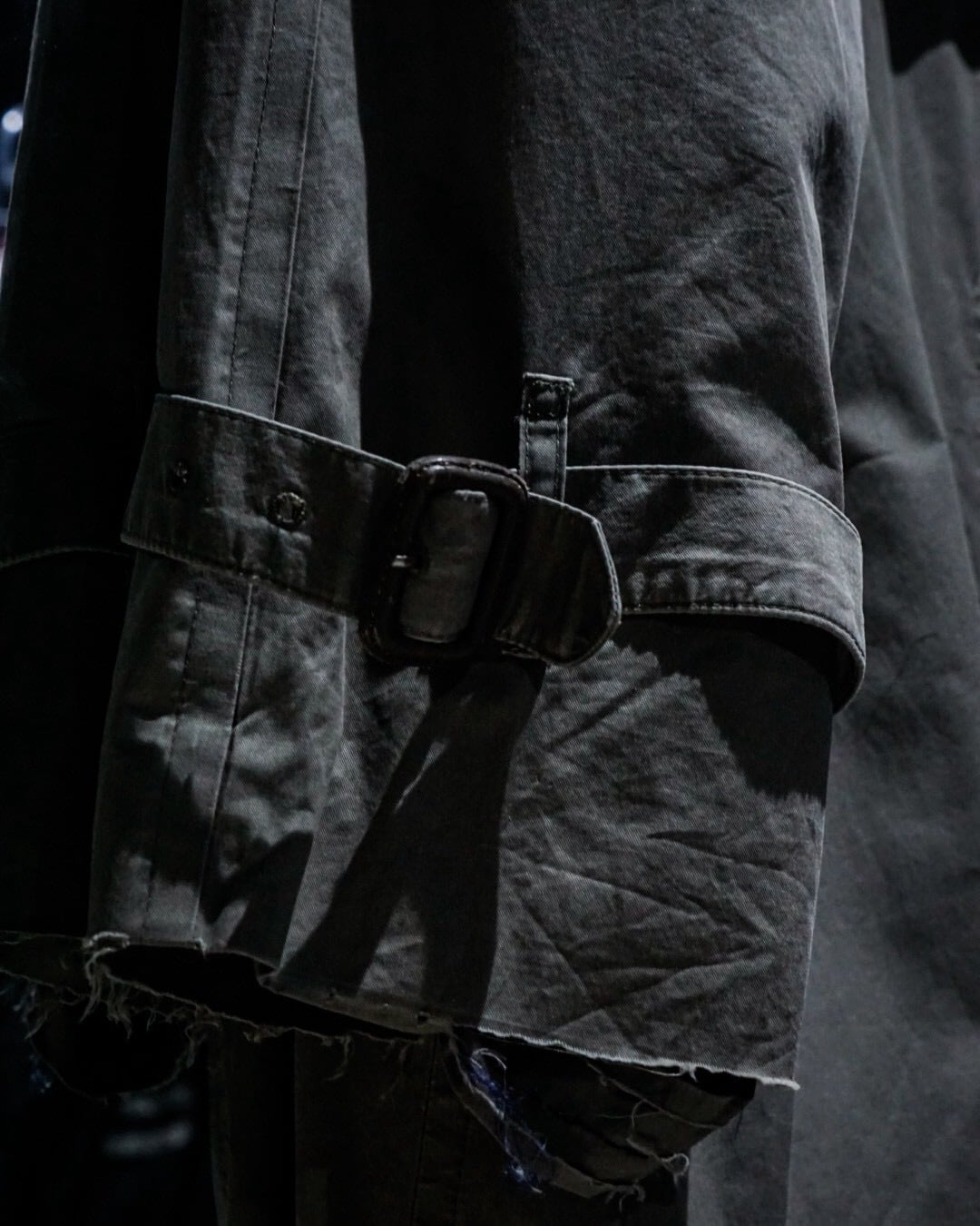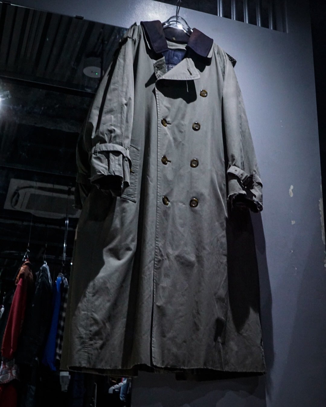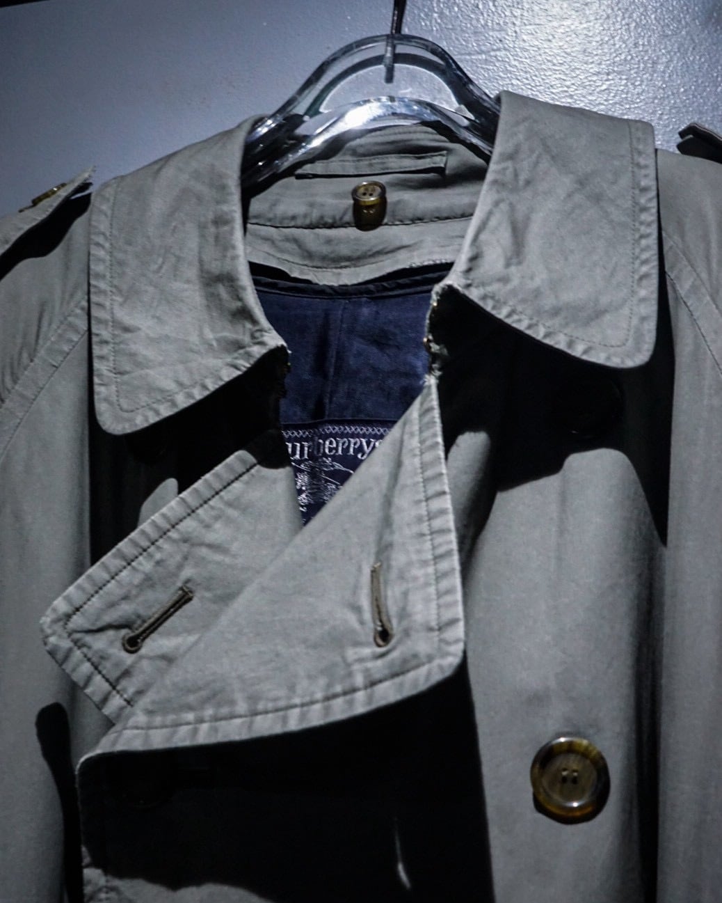 エポレットやヨーク、スリーブストラップに加えダブルブレスト仕様、トレンチコートの代表的なディテールが風格を最大限に漂わせ、そこに曲線を描く襟や全体のシルエットが相まって高級感を体現した1着。