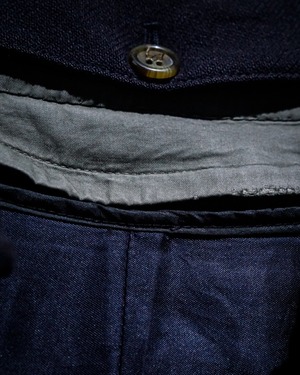 注目すべきは“ボロ”の表情。着脱可能な襟部分は"あえて"サンフェードを残したままご用意。随所に見られる経年変化が、気品溢れる中に程よい抜け感を演出すると共に、由来であるミリタリー的なニュアンスを取り入れたミックス感のある仕上がりに。