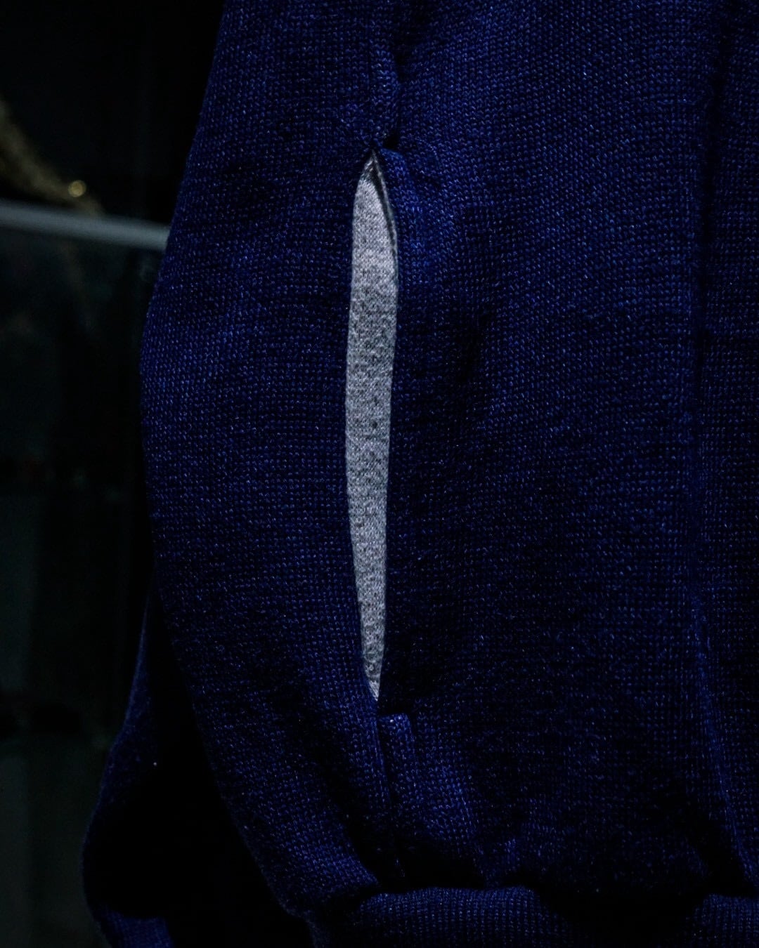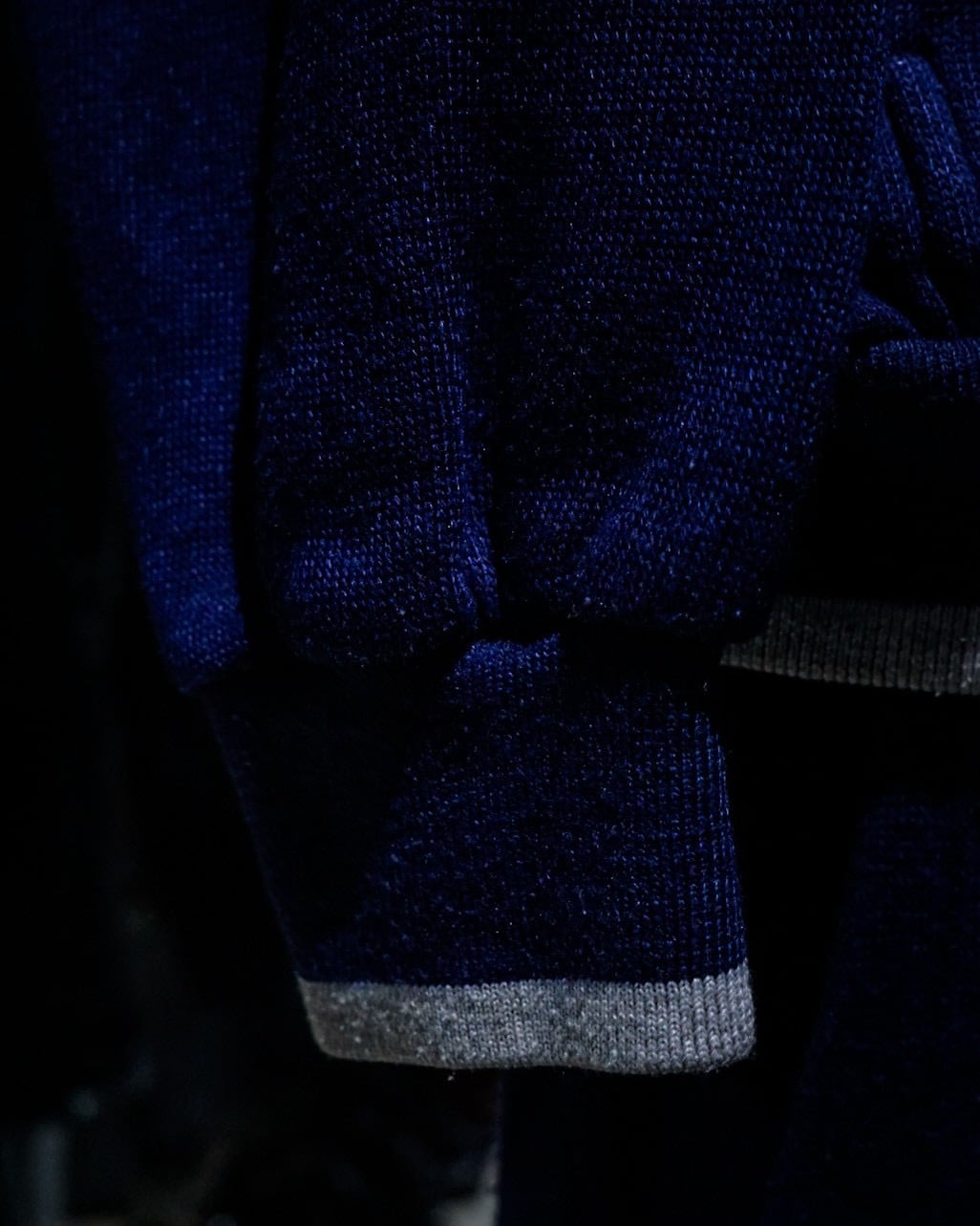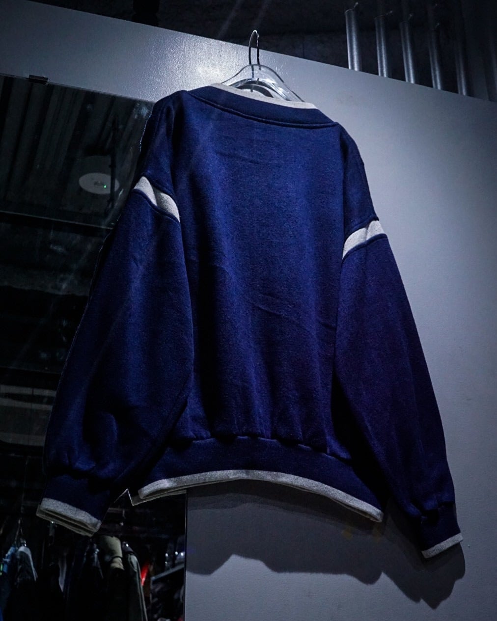 深みのあるネイビーカラーのボディに、Vネック仕様のトップスを採用。ネックや袖に走るライトグレーのラインや左胸のロゴ刺繍が程よいアクセントとなり、スポーティーな要素を取り入れながらもDiorらしい洗練された雰囲気を演出しています。