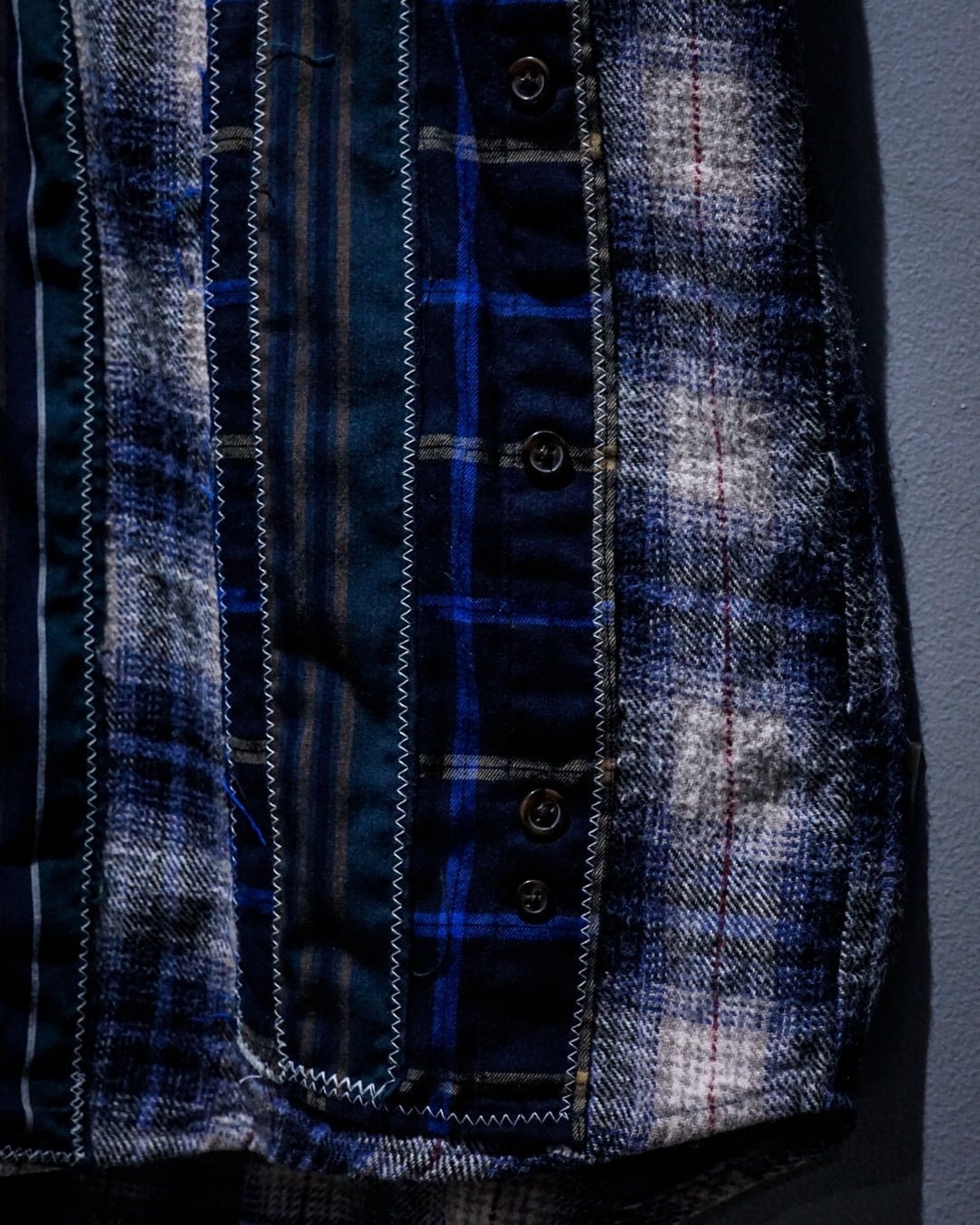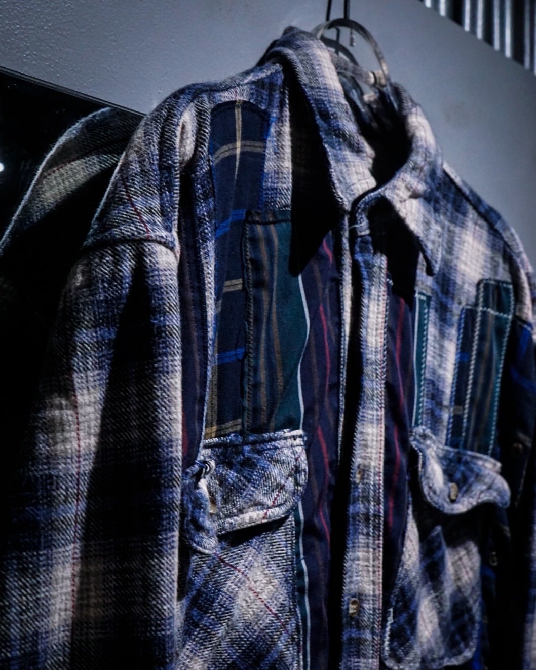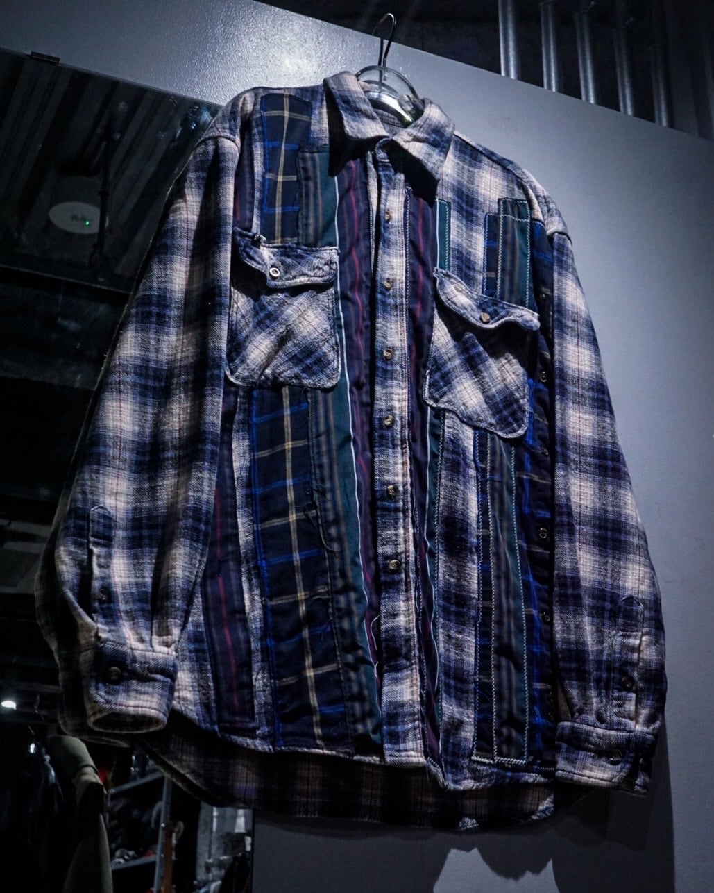 ヴィンテージネルらしい柔らかな起毛感と、ブルー〜グレーを基調とした落ち着きのあるオンブレチェックと、パッチワークによる唯一無二のデザインの掛け合わせが◎既存のネルシャツとは一線を画すデザインへと昇華されています。