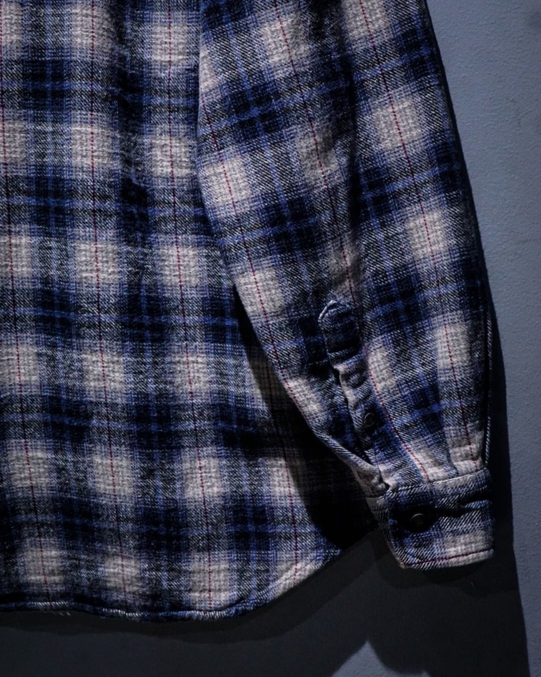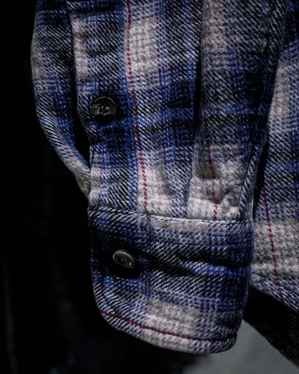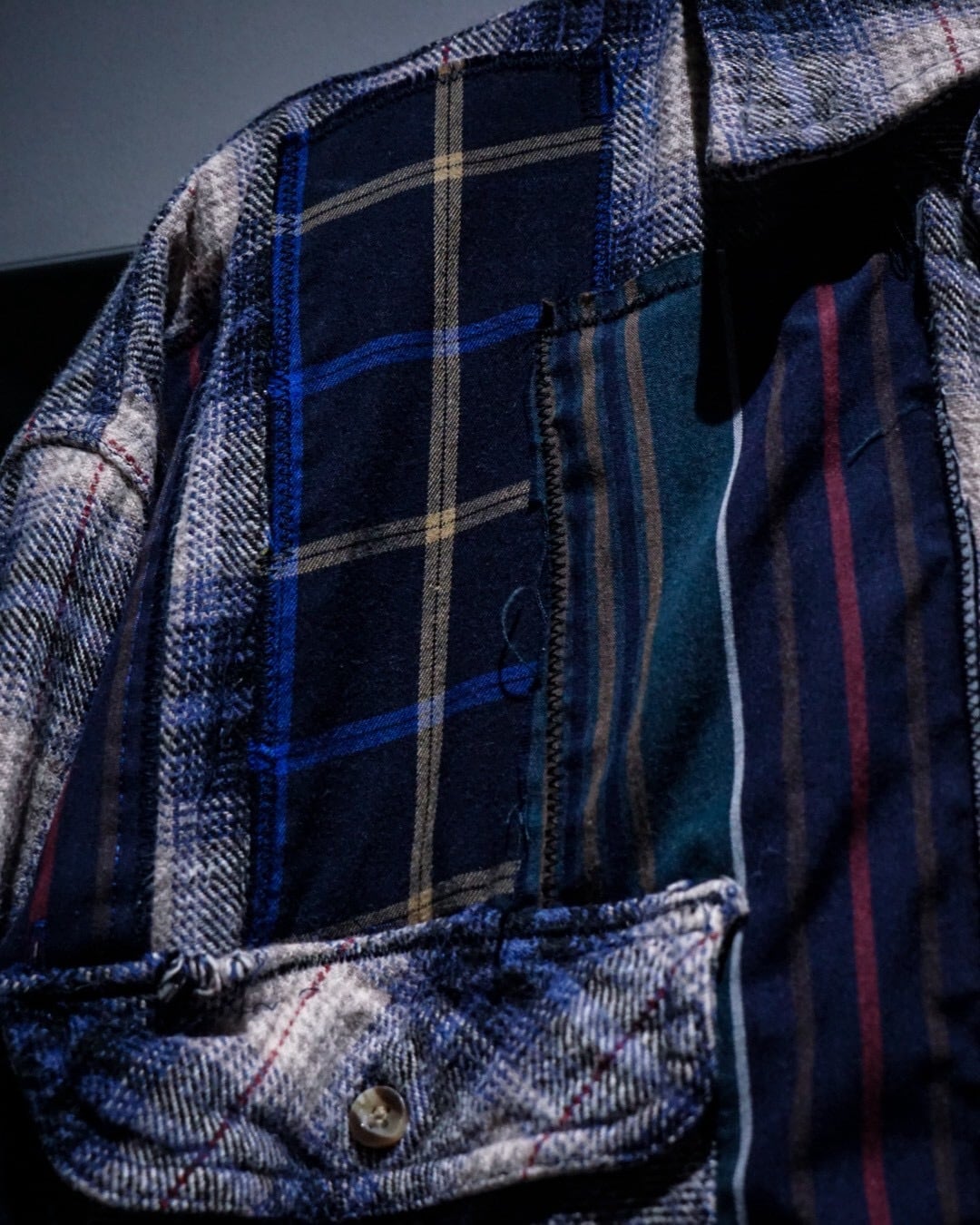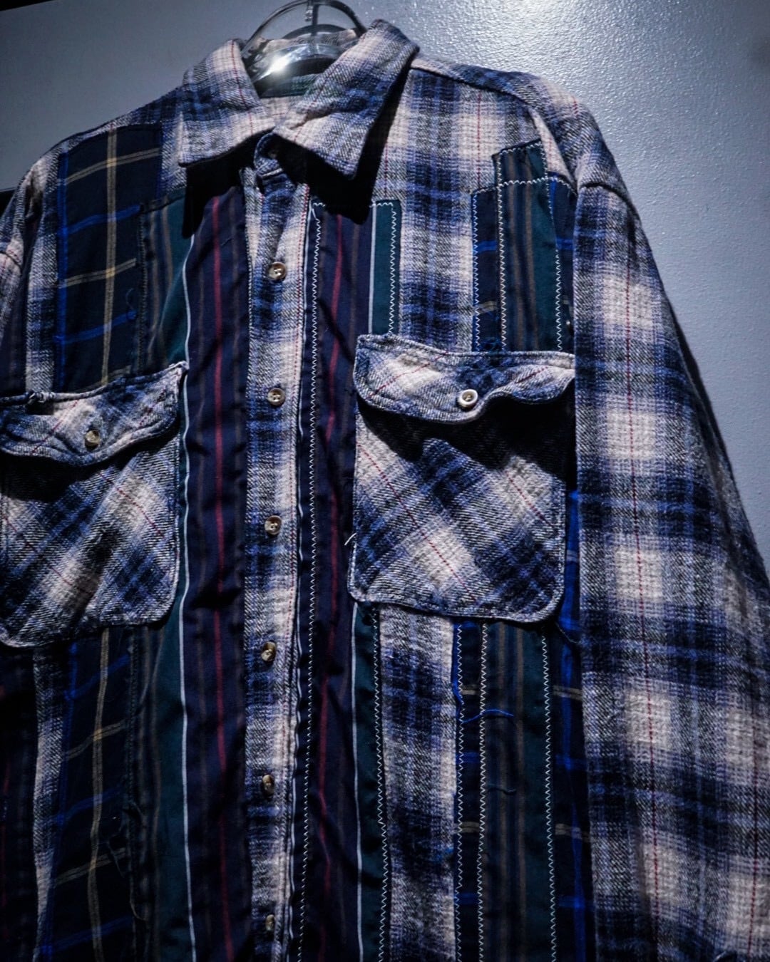 ヴィンテージネルらしい柔らかな起毛感と、ブルー〜グレーを基調とした落ち着きのあるオンブレチェックと、パッチワークによる唯一無二のデザインの掛け合わせが◎既存のネルシャツとは一線を画すデザインへと昇華されています。