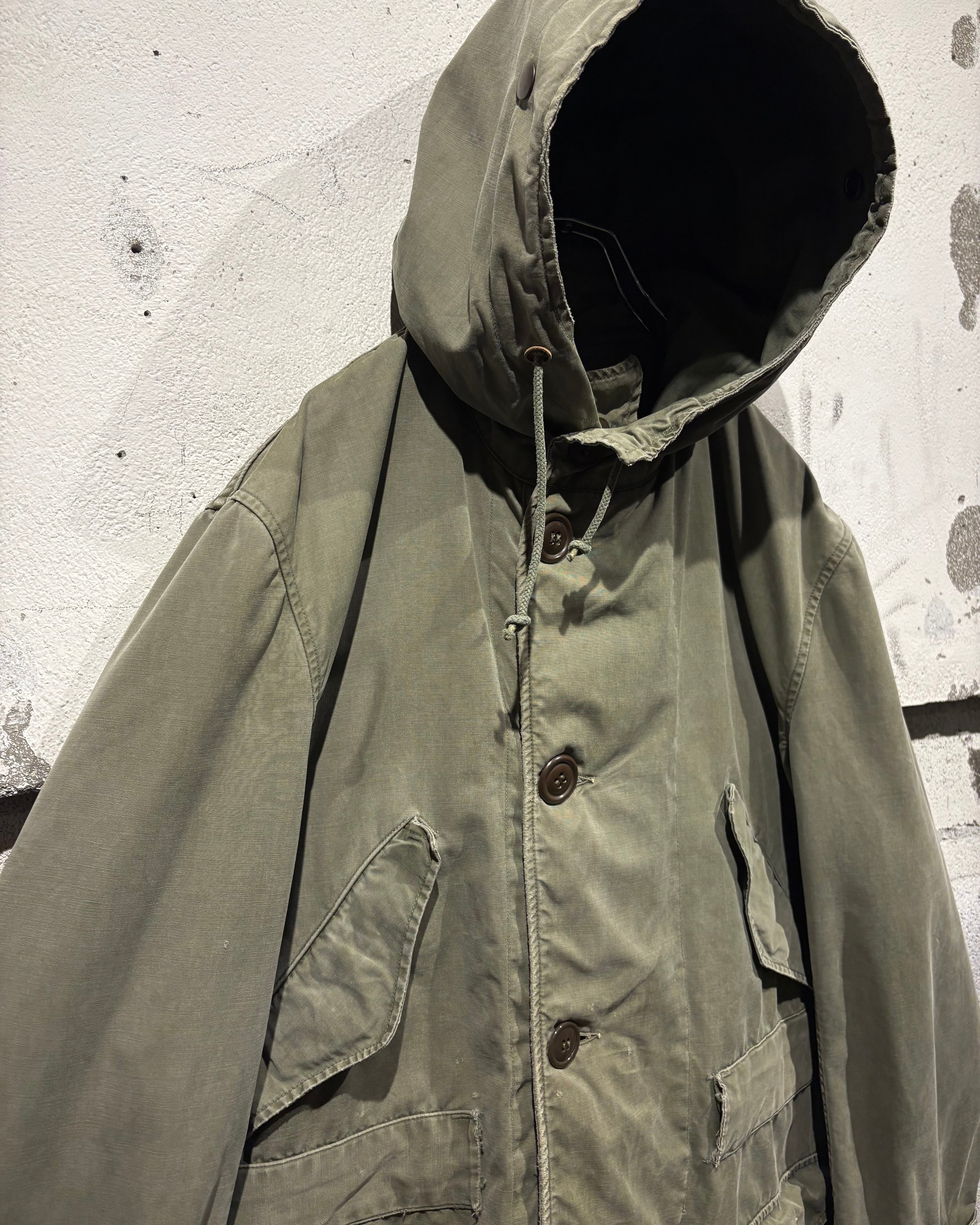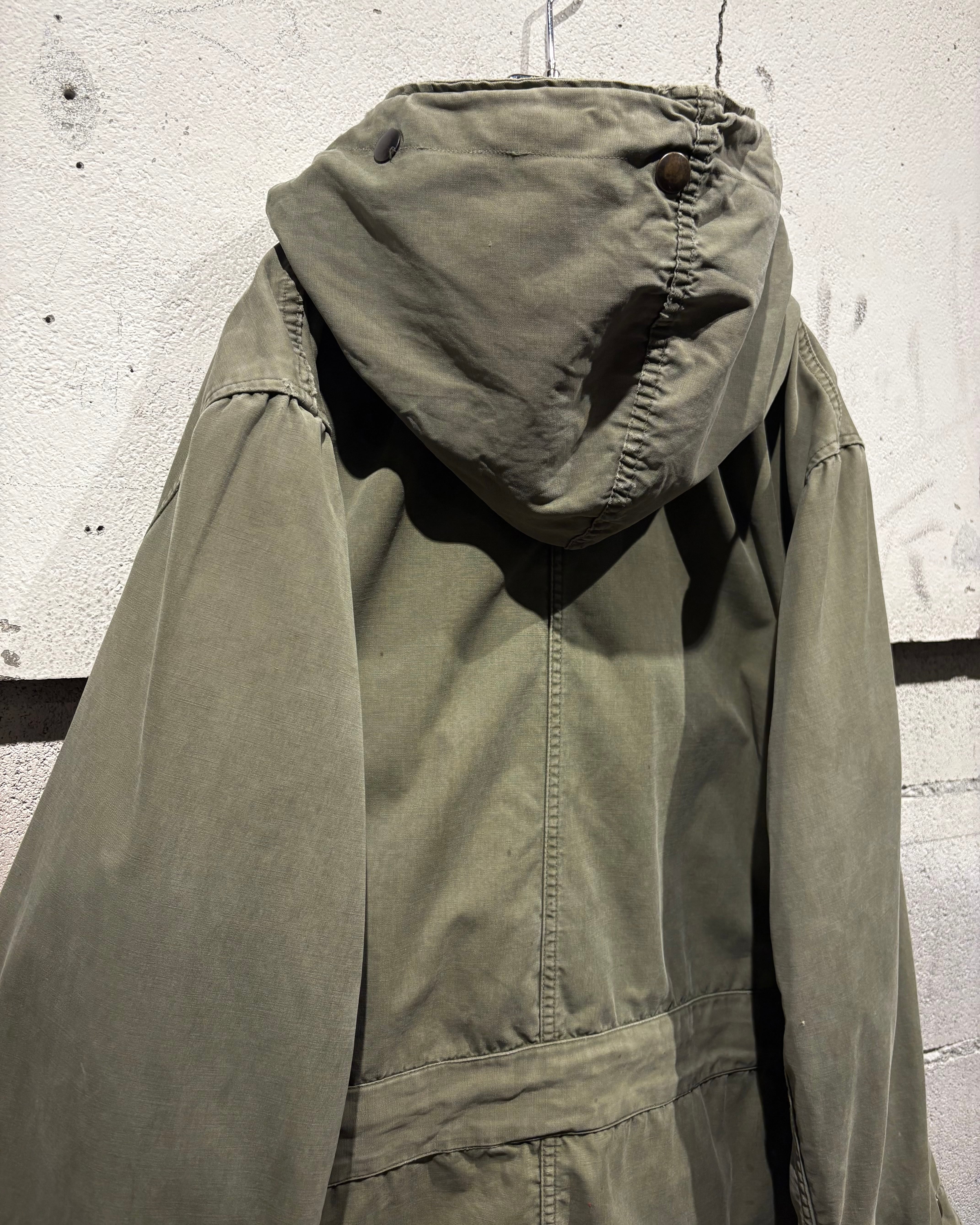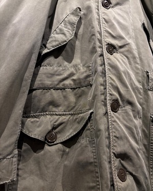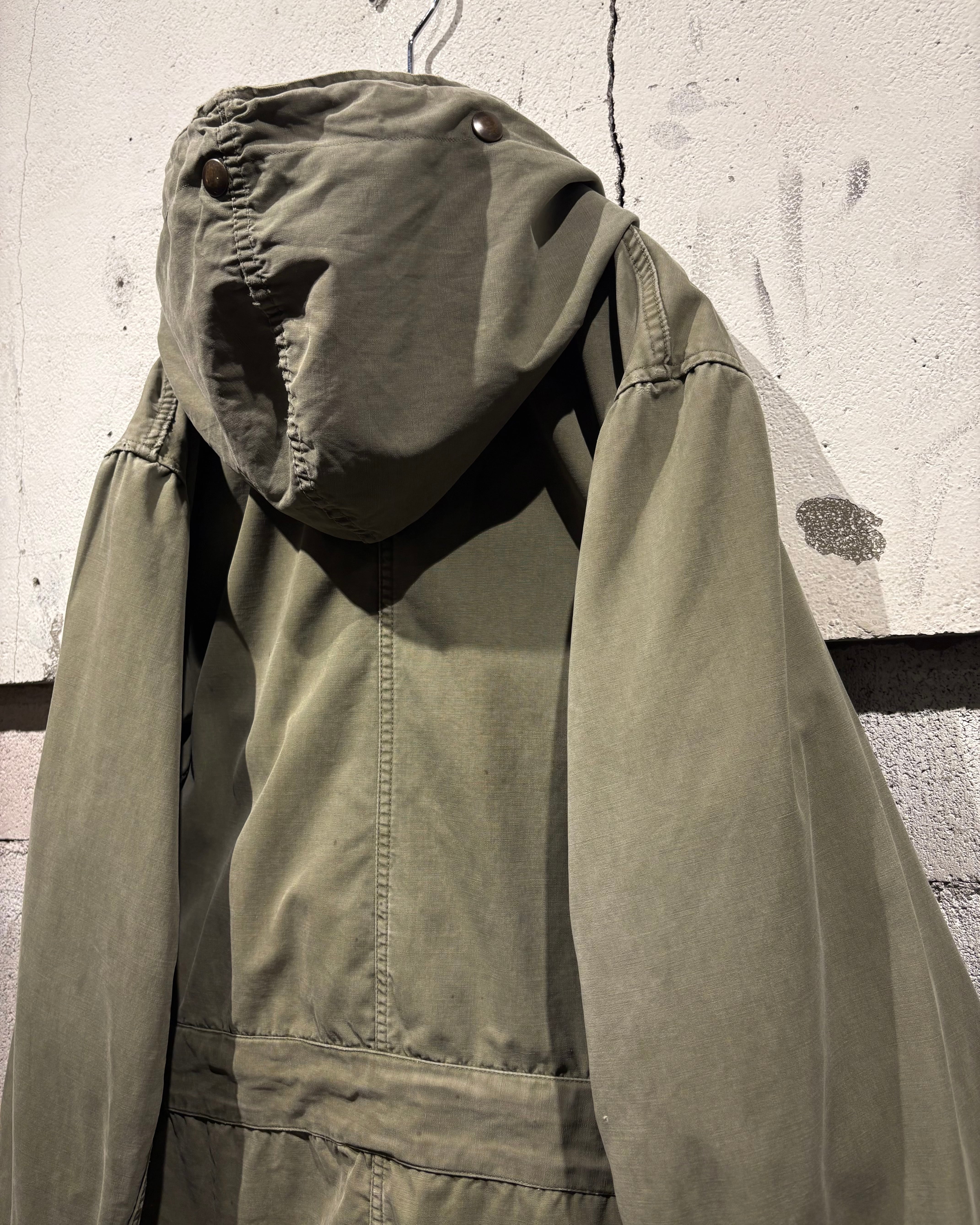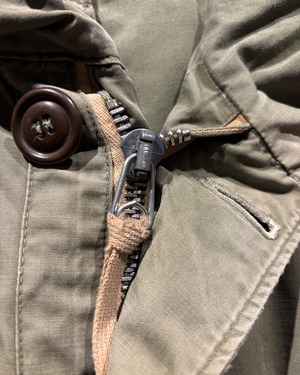 そして、長年の着用によるフェードやアタリが現れたオリーブカラーのコットンシェル。古くて良い服がボロく退廃していくムードはやはりヴィンテージならではですね。