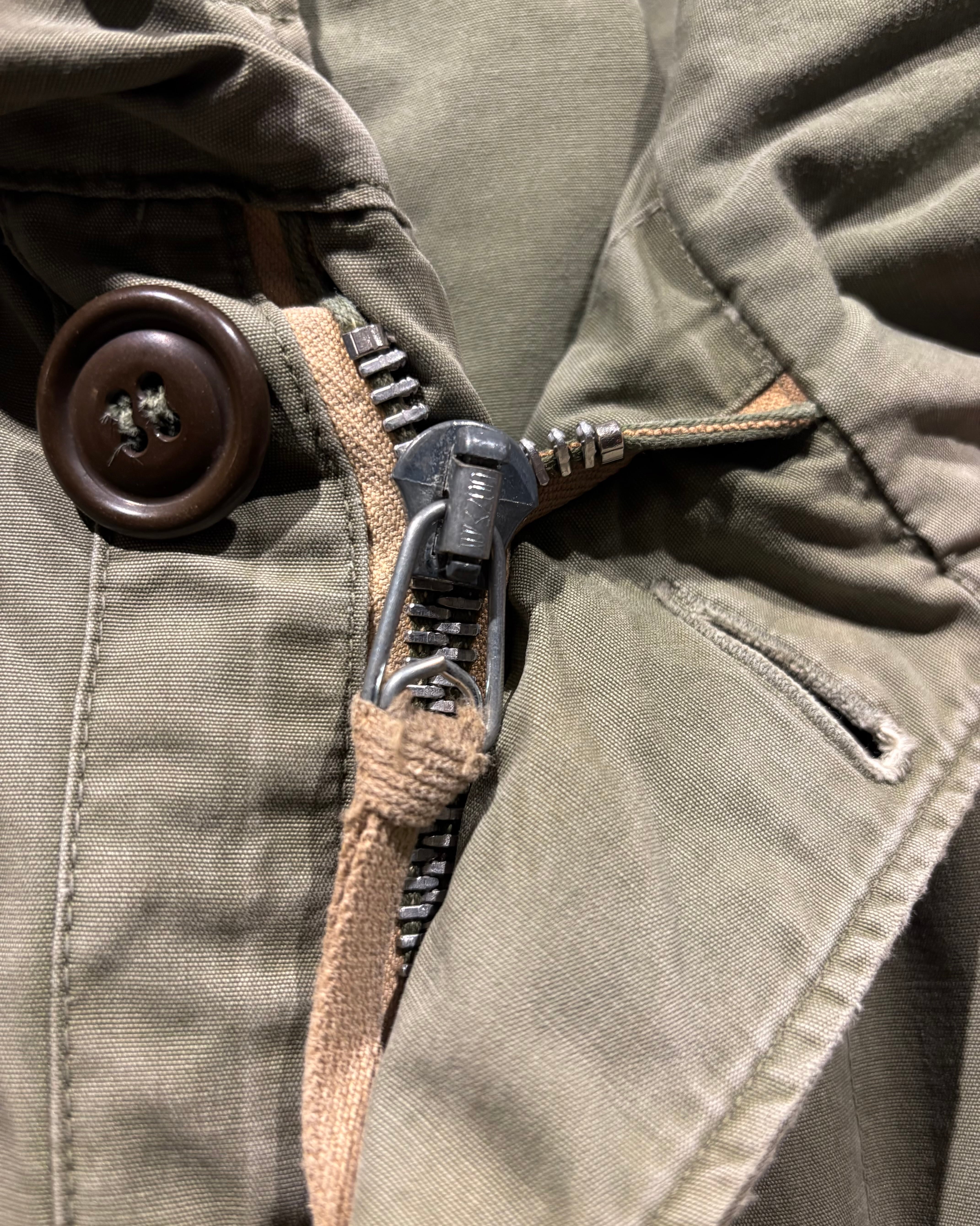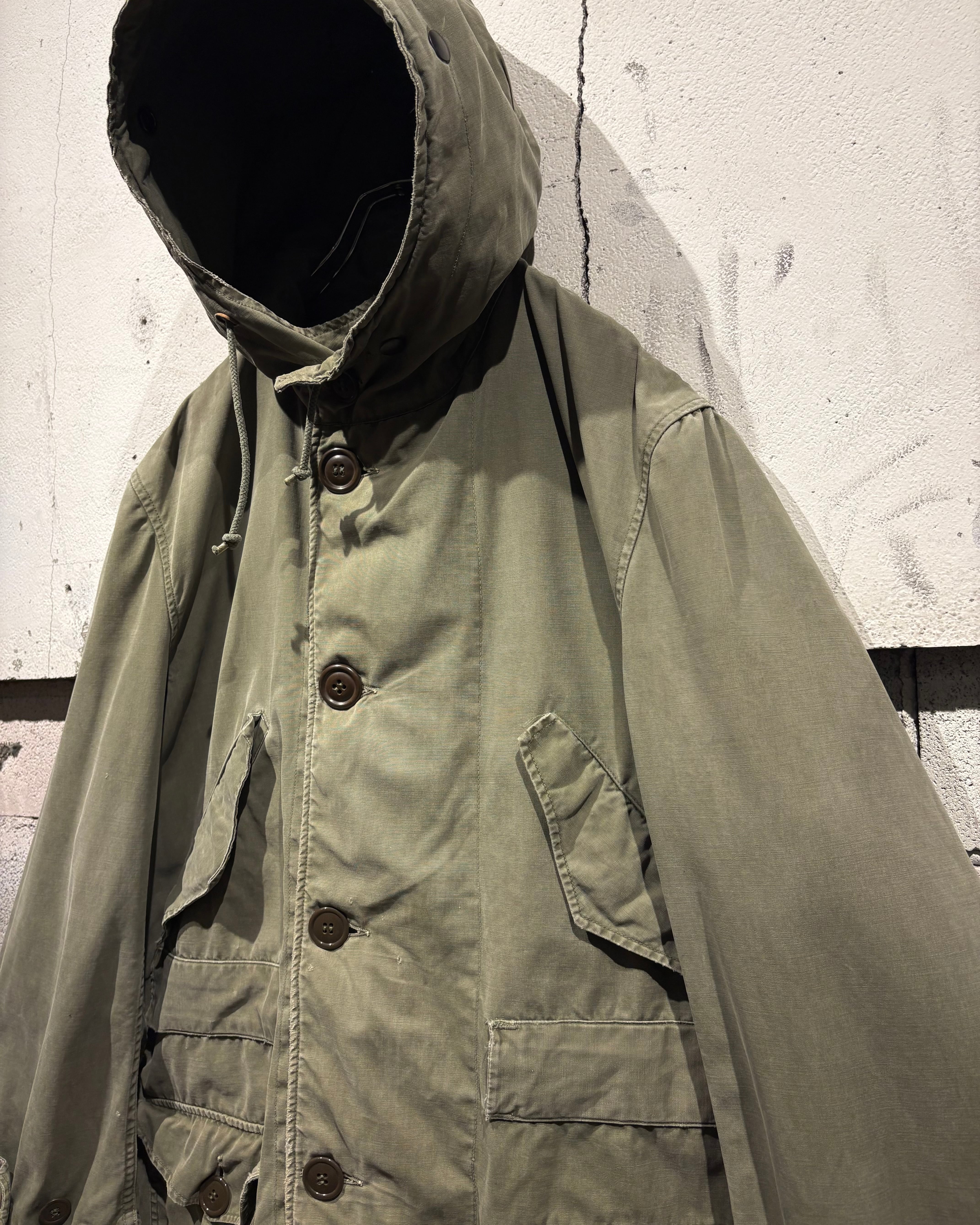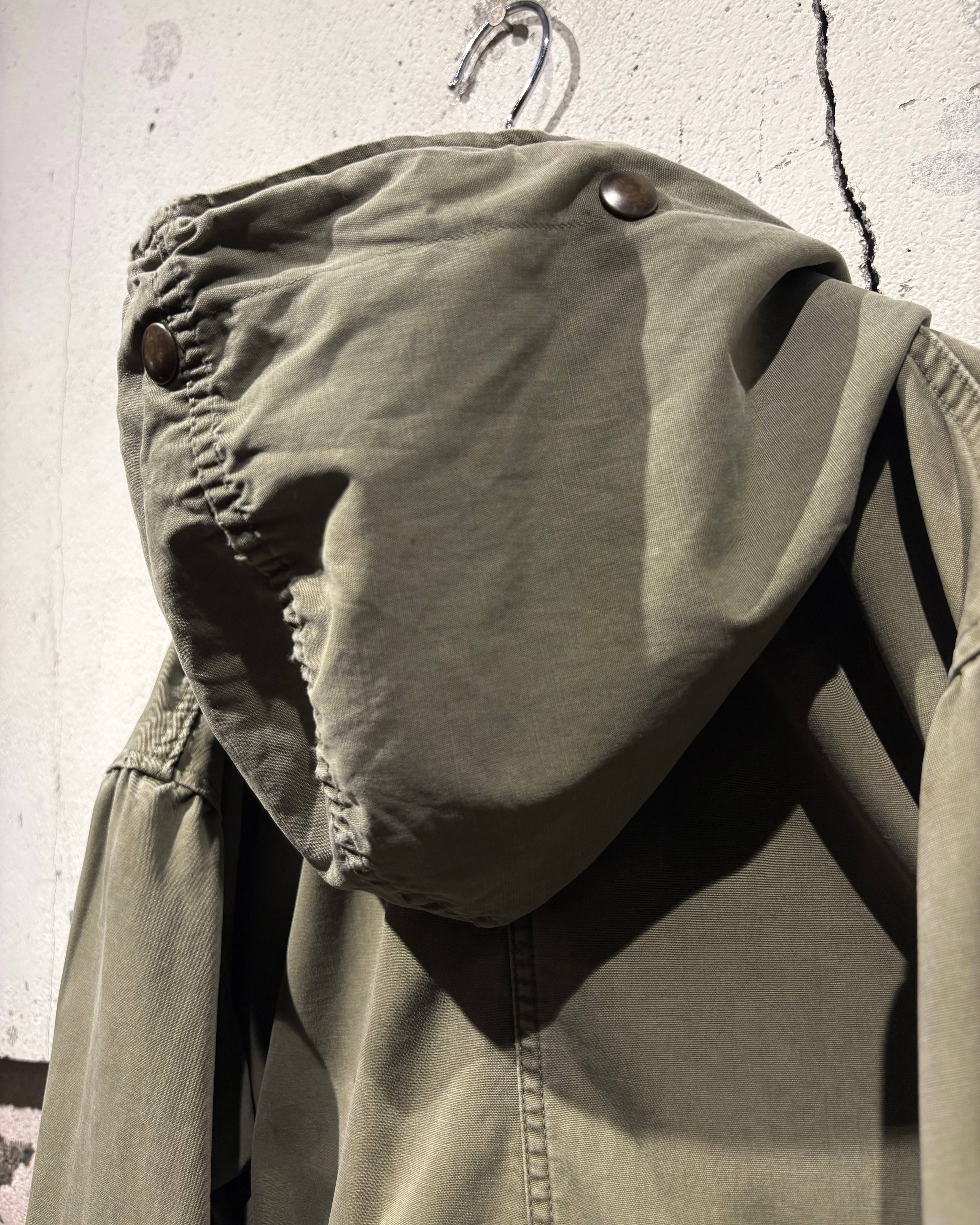 そして、長年の着用によるフェードやアタリが現れたオリーブカラーのコットンシェル。古くて良い服がボロく退廃していくムードはやはりヴィンテージならではですね。