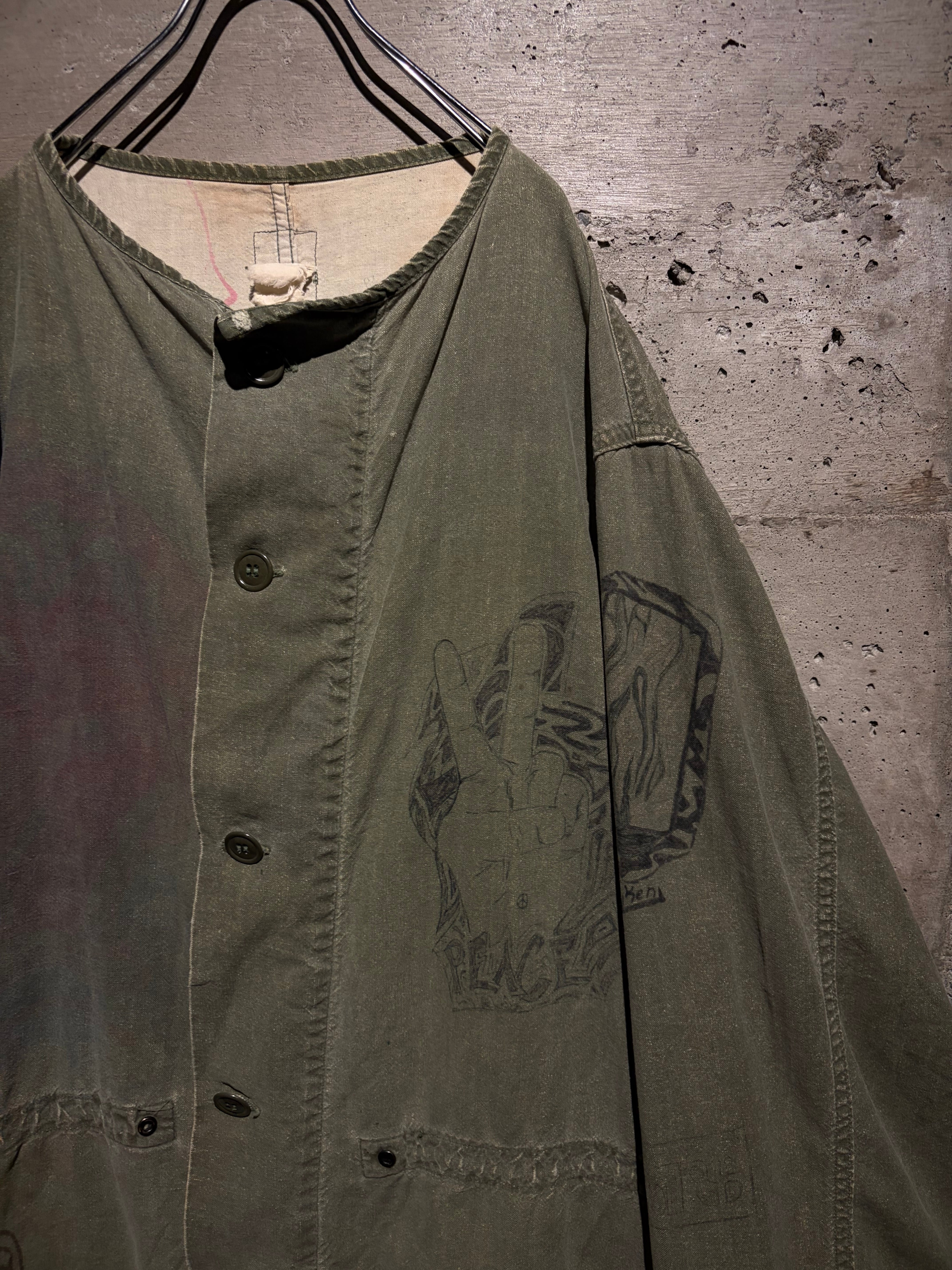 2000年代初頭にもこの手のカスタムが流行りましたが、こちらの1着はボディの経年変化に、ハンドドローイングのセンスが秀逸。