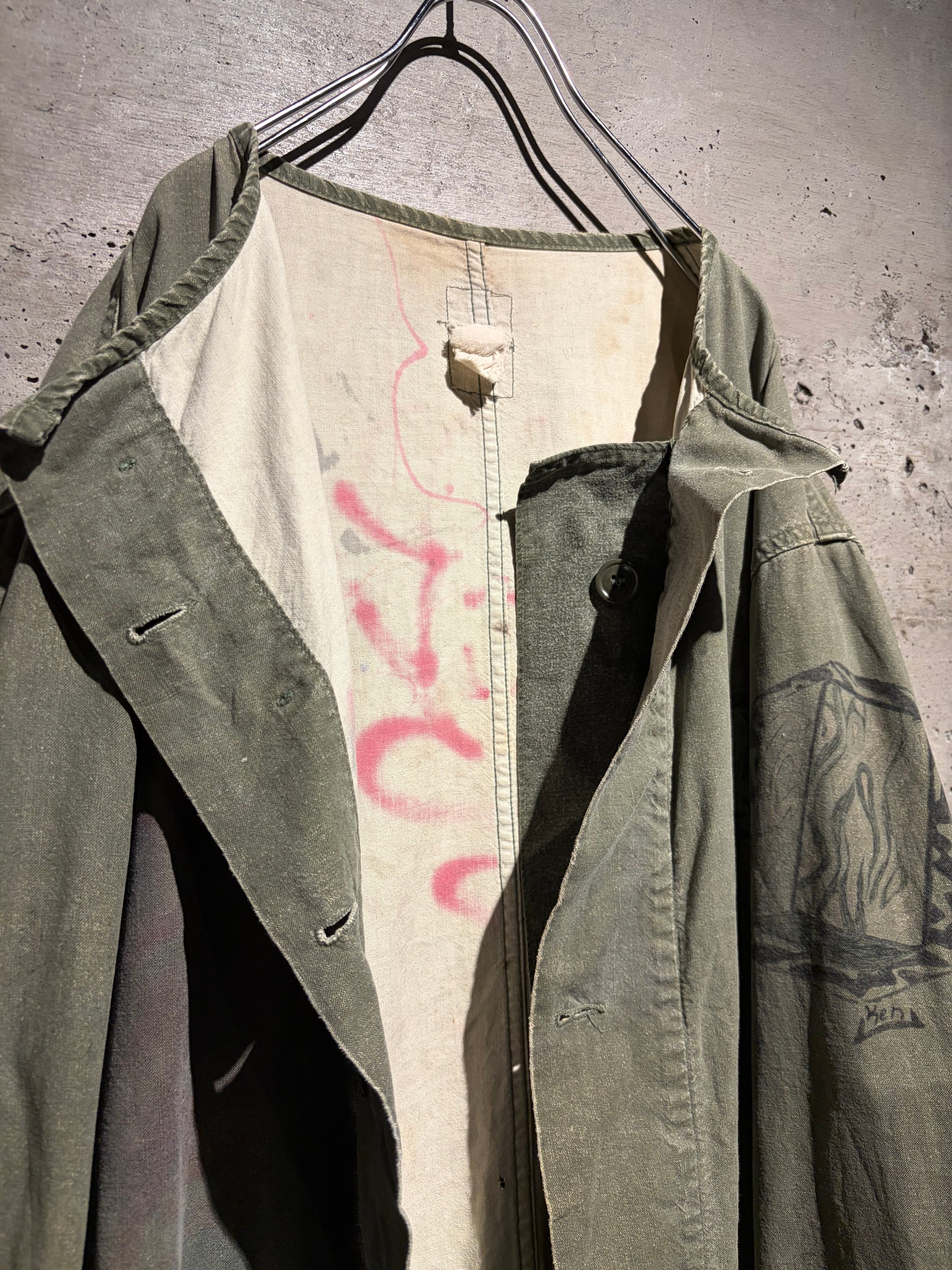 ヴィンテージミリタリーの背景、経年変化による風合い、そして一点物のハンドカスタムが融合したスペシャルピース。古着でしか出会えない、唯一無二のガスプロテクティブコートです。