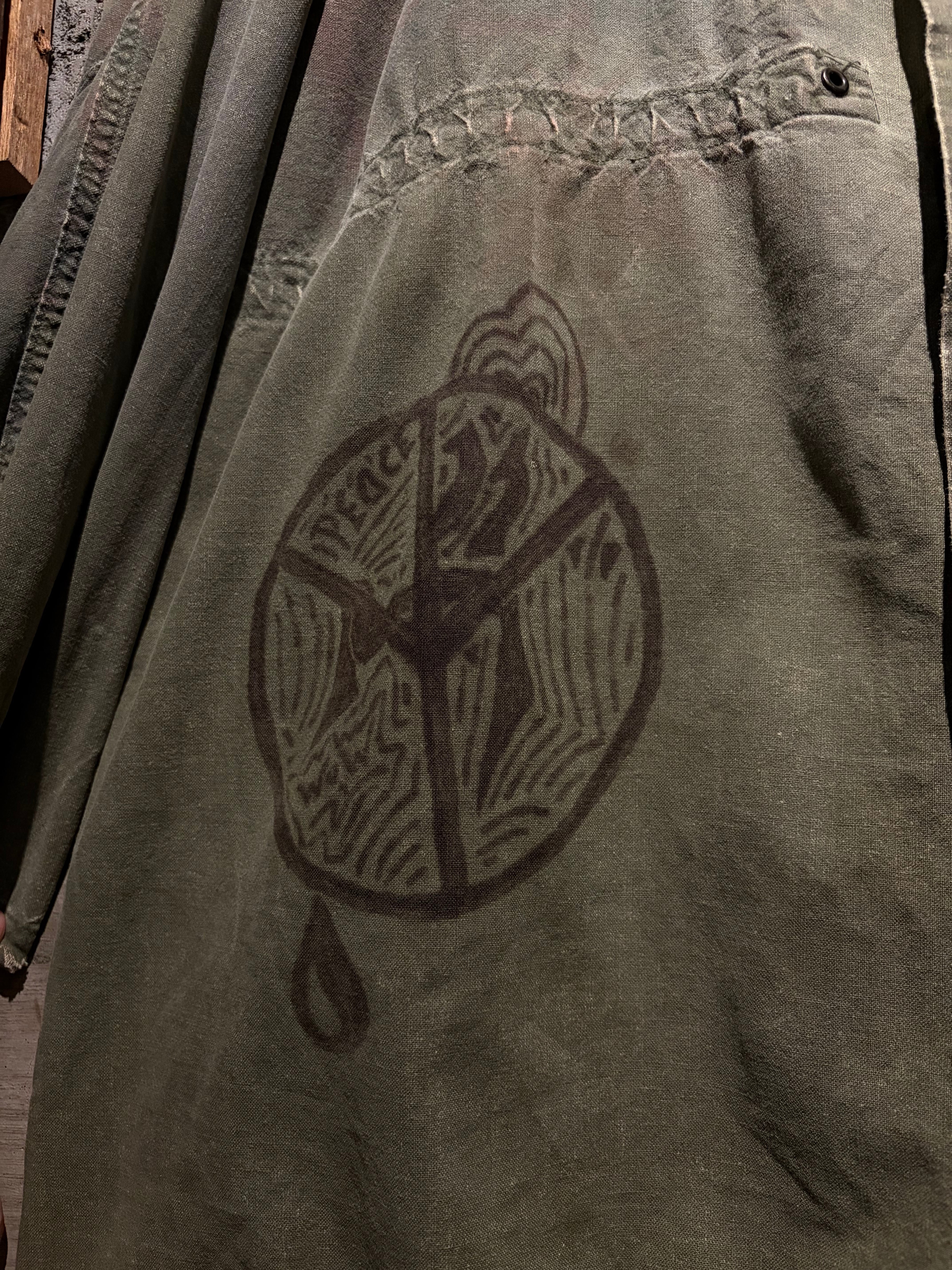 化学兵器から身を守る目的で採用されたミリタリーウェア“ガスプロテクティブコート”のボディに、カスタムが施されたスペシャルなアートピース。