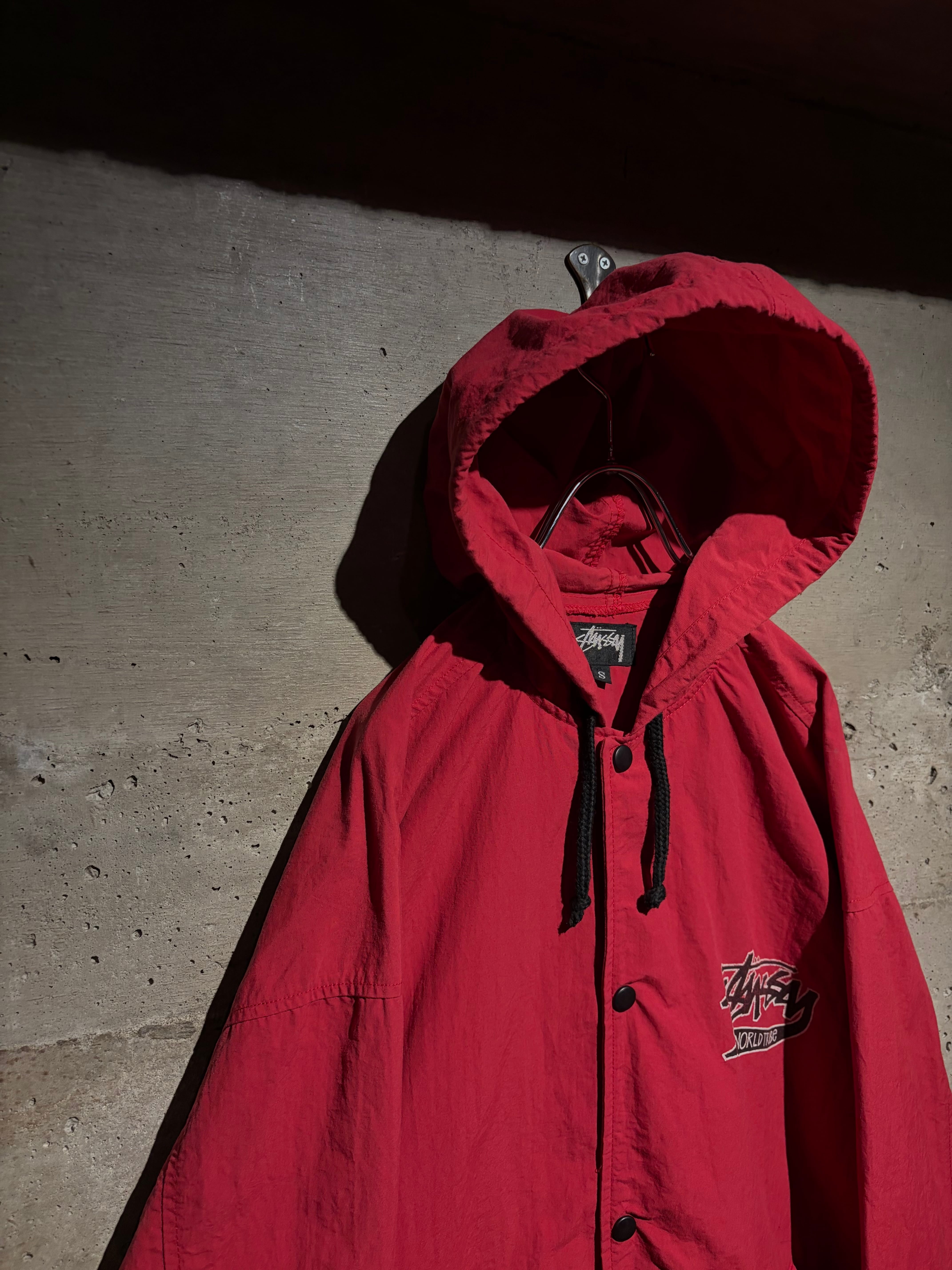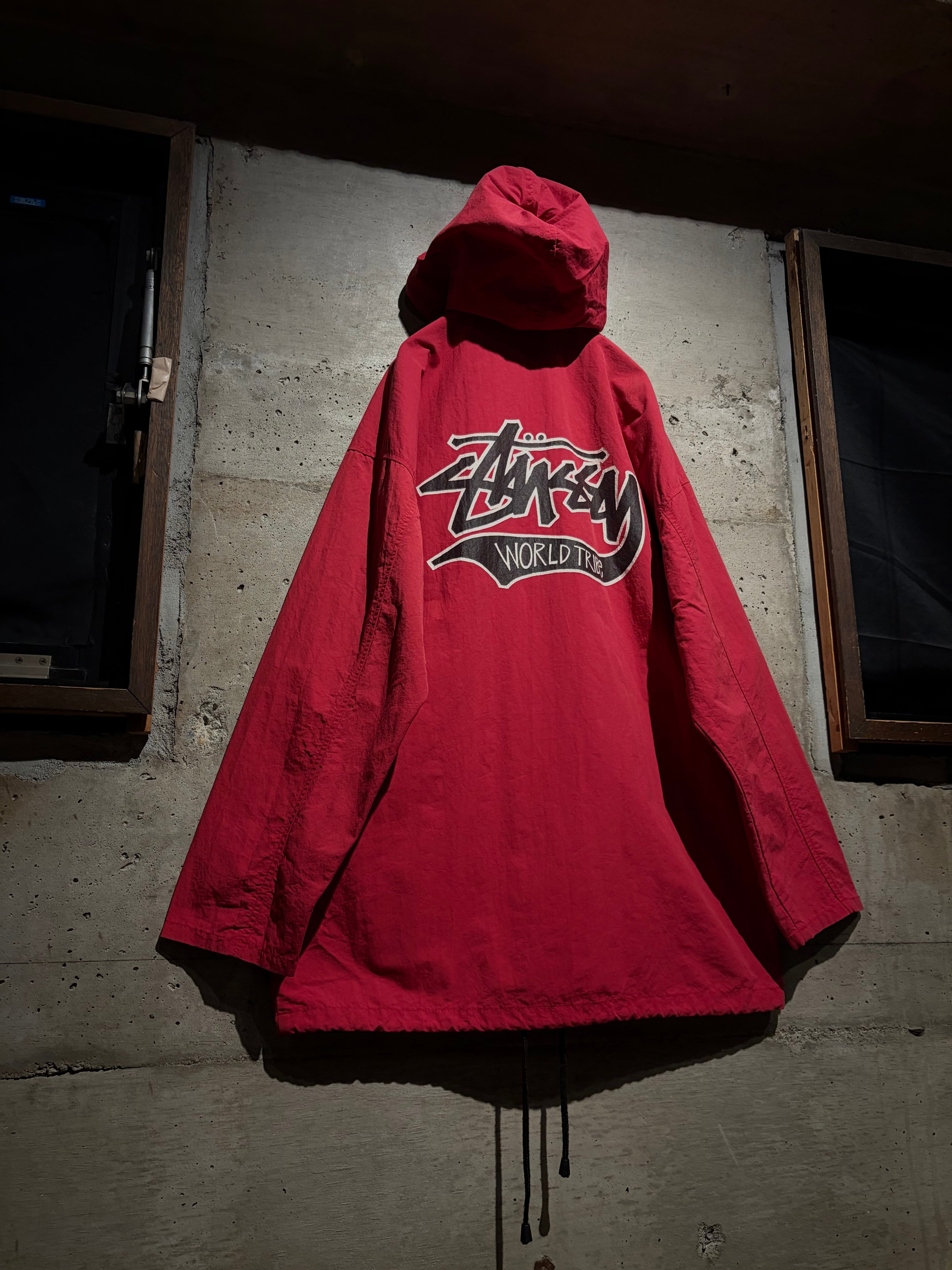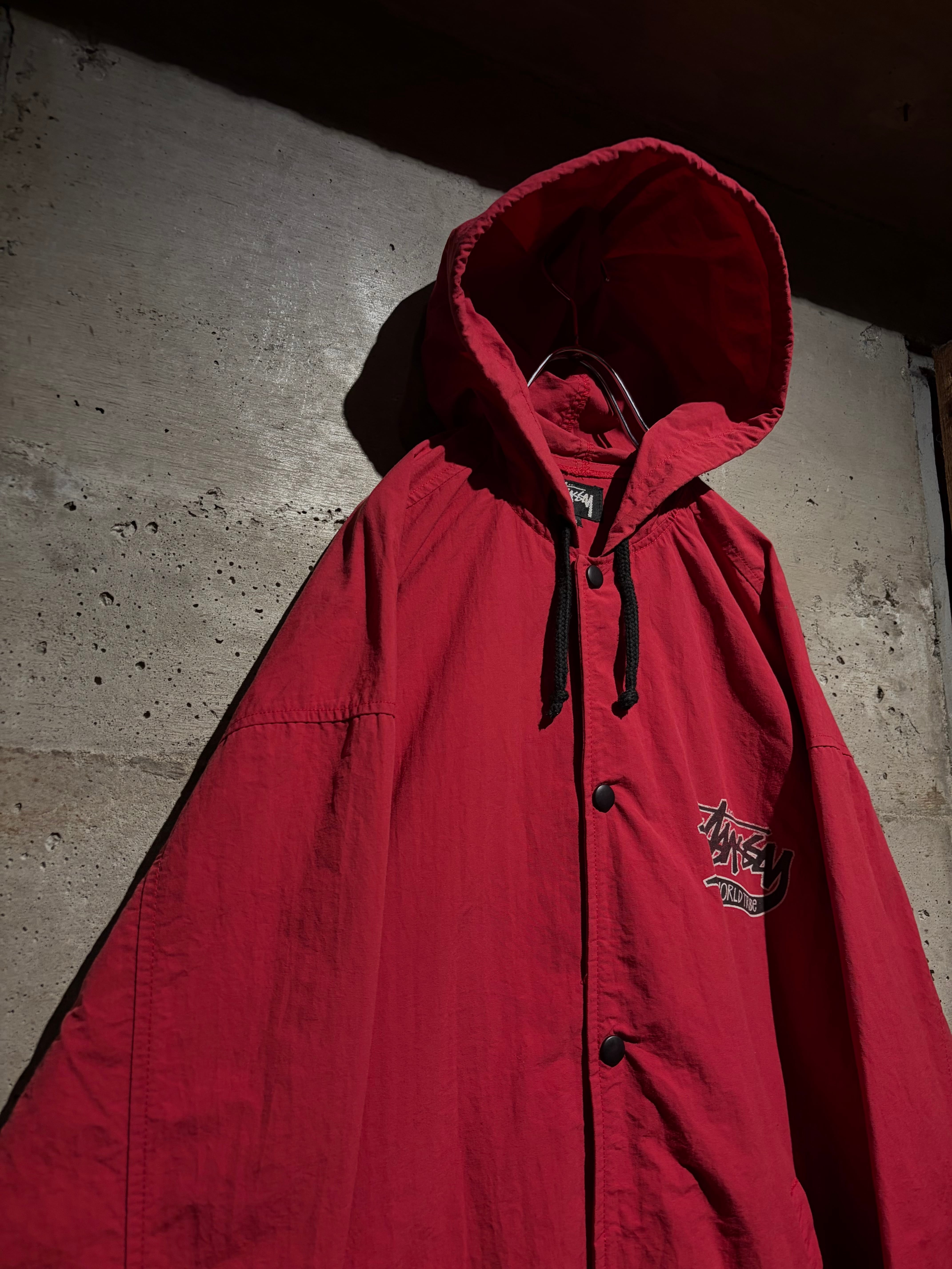 軽やかなナイロンを使用した、フーデッドタイプのナイロンジャケット。市場でも人気の上昇とともに高騰化が著しいOLD Stüssyの個体でも、コーチジャケットと並び、国内でも見かけることがすくなくなりましたね。